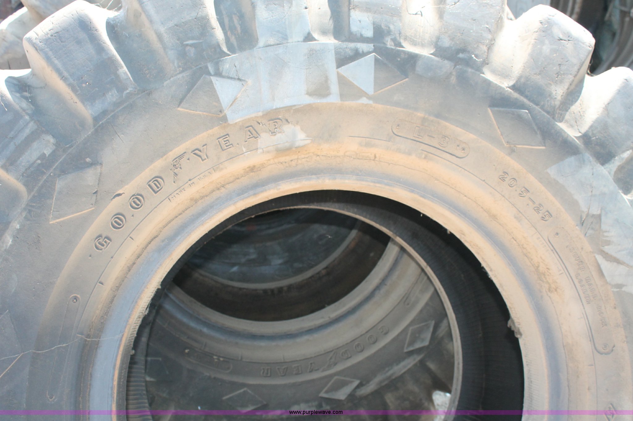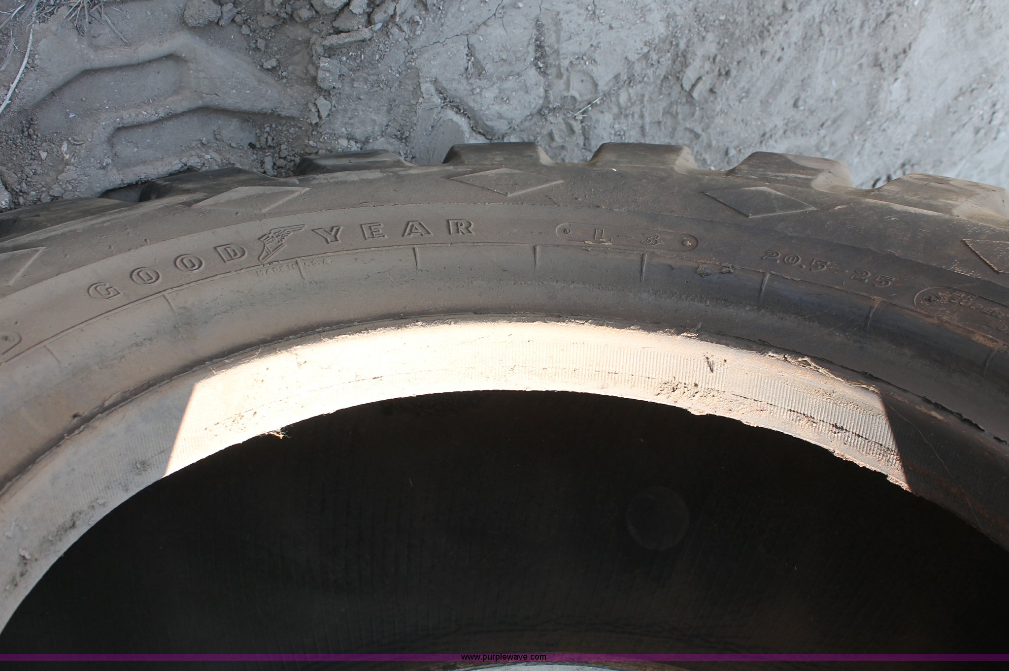 Purple Wave is selling a used Industrial Tires or Tracks in Kansas. This item is a (4) Goodyear 20.5-25 tires with the following: (4) Goodyear 20.5-25 tires. Shipping quotes available. Kearny County. Lakin, KS 67860
