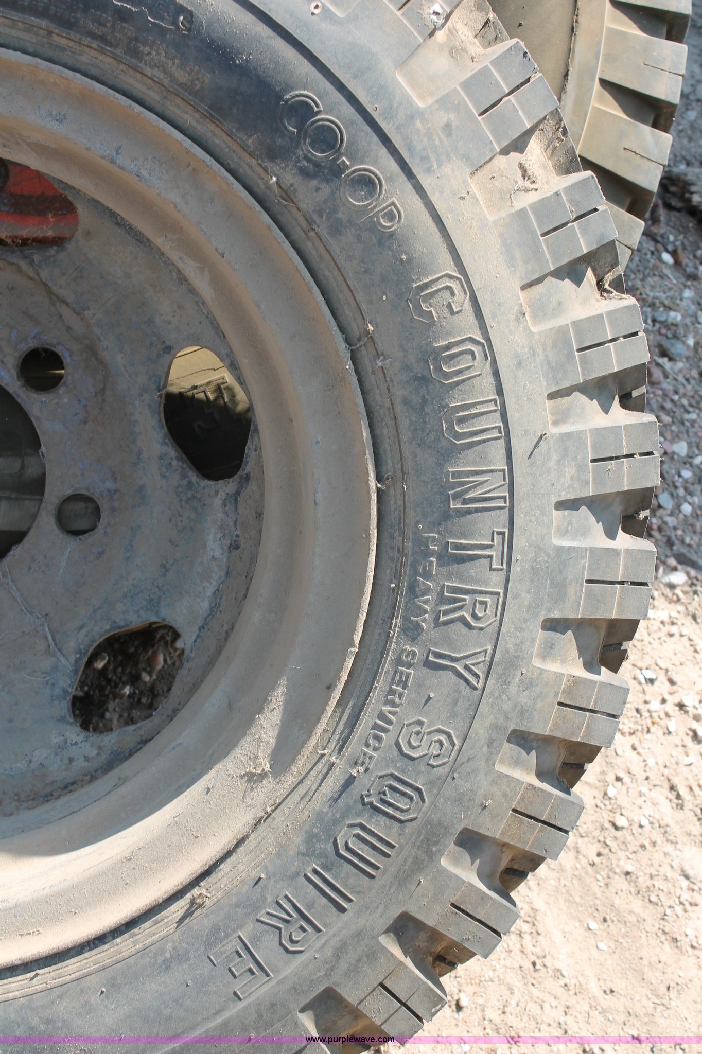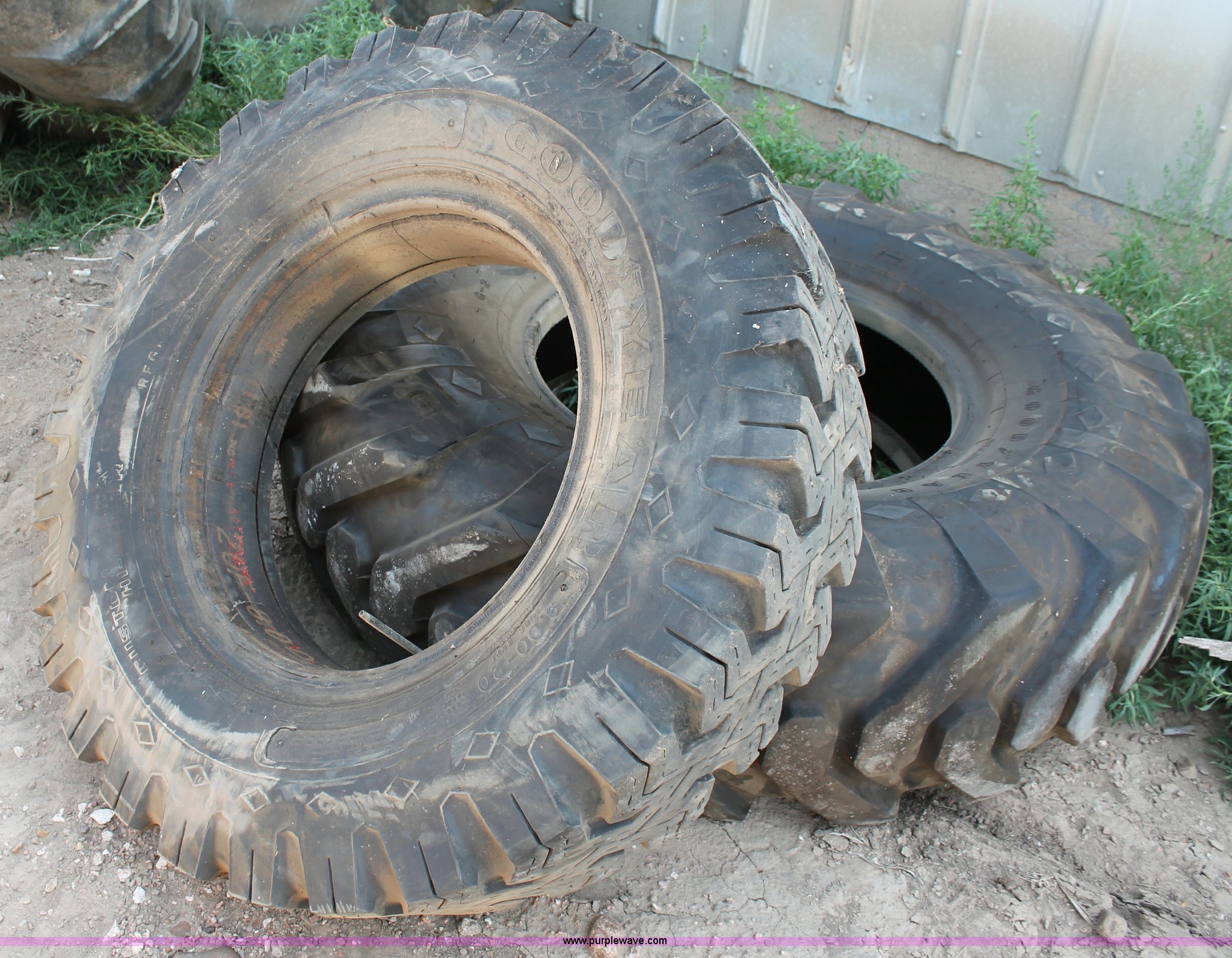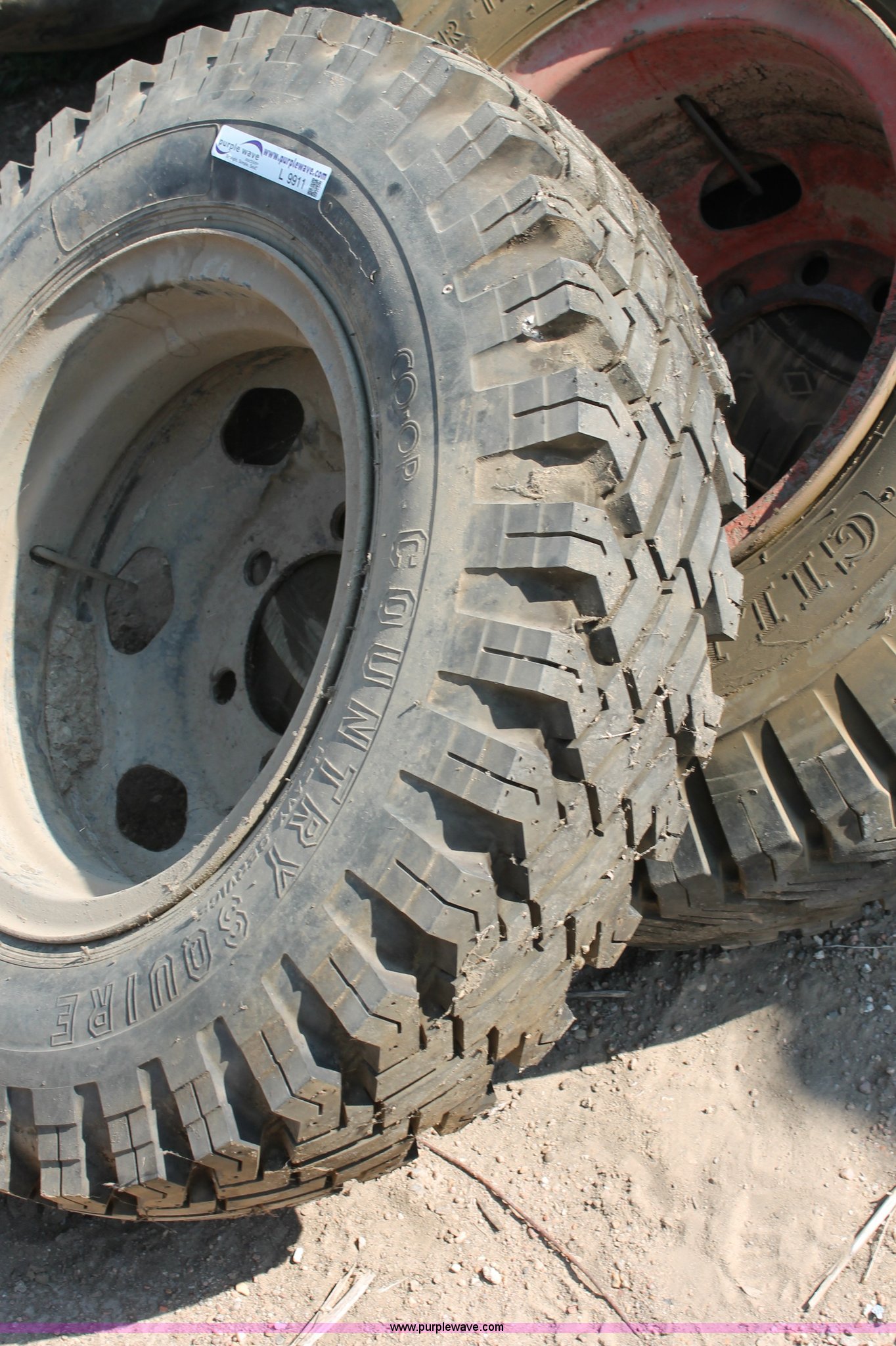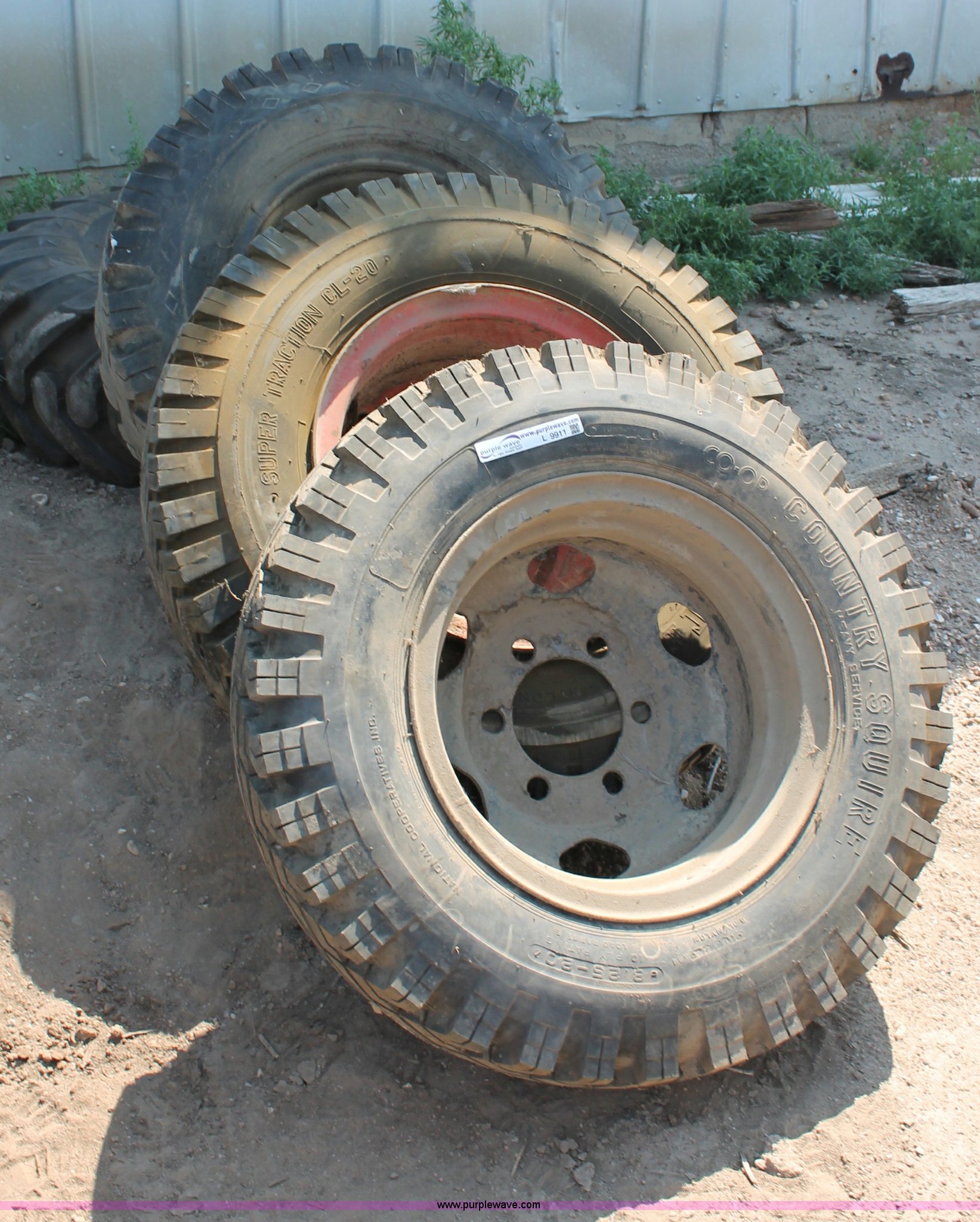 Purple Wave is selling a used Automotive Parts or Acces. in Kansas. This item is a (4) assorted tires with the following: Co-op Country Squire 8.25-20, Gillette 10.00-20, Goodyear 9.00-20, Goodyear 14.00-24