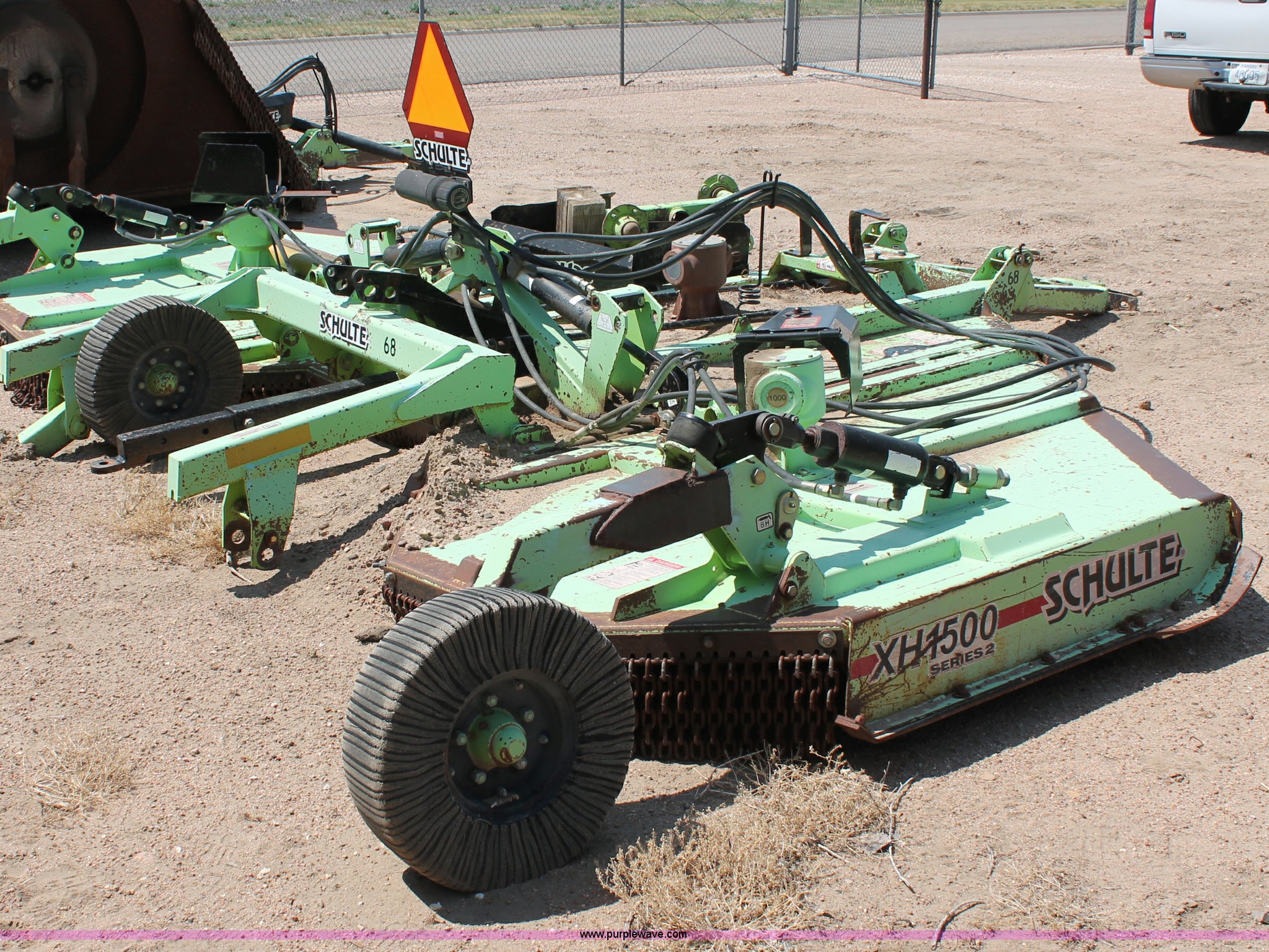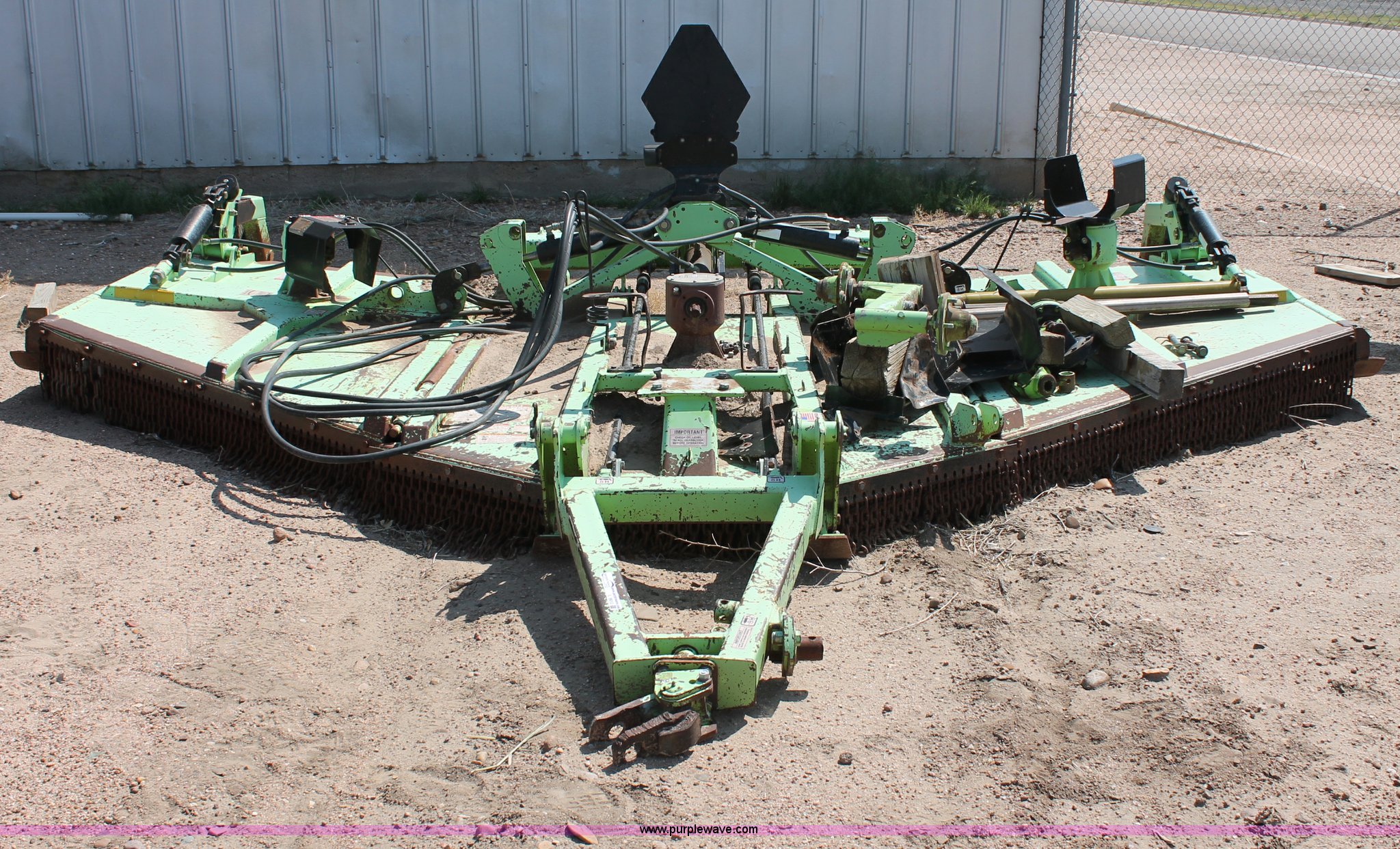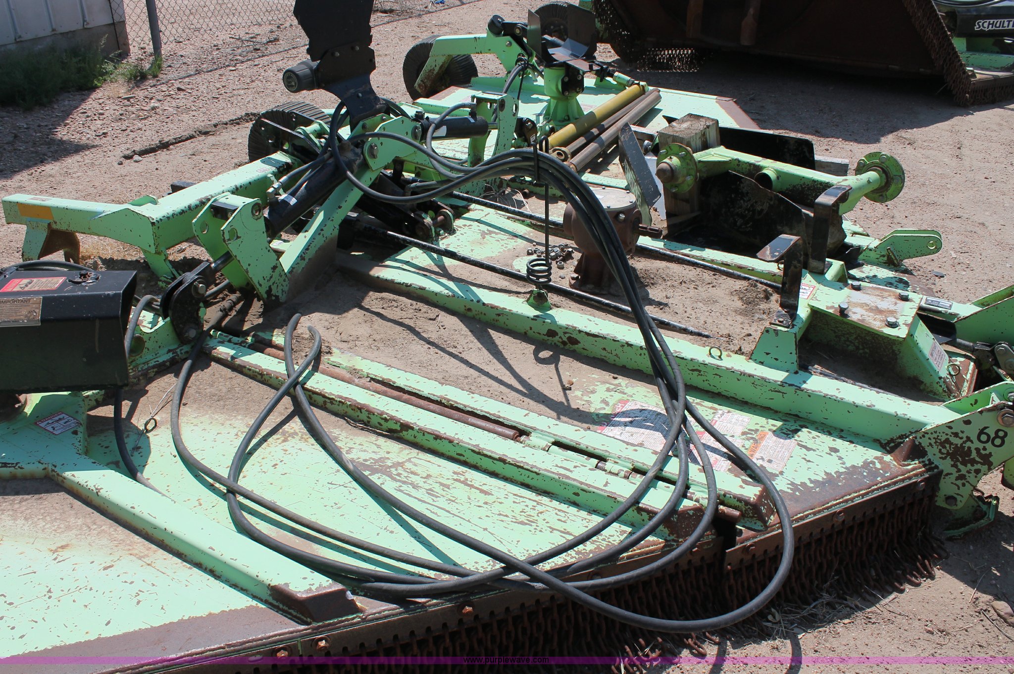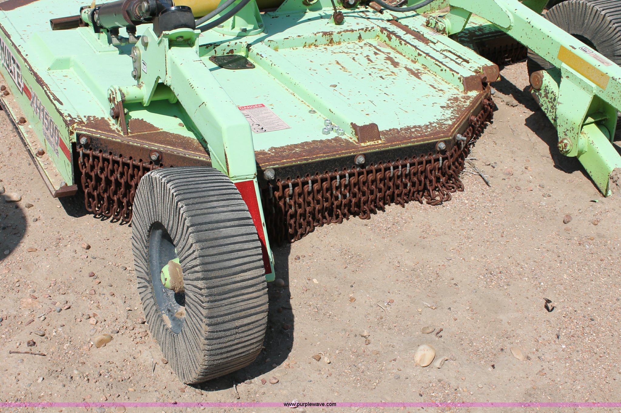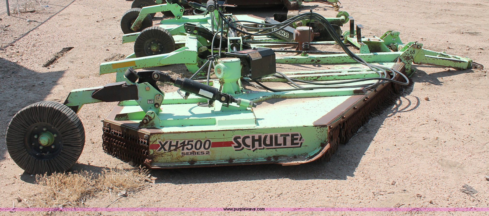 Purple Wave is selling a used Mower, Cutter, Shredder in Kansas. This item is a Schulte XH1500 rotary mower with the following: 15' cutting surface, Hydraulic folding wings, Hydraulic deck lift, 540 PTO, Pin hitch, Safety chains, Parts only, Serial C30102911407