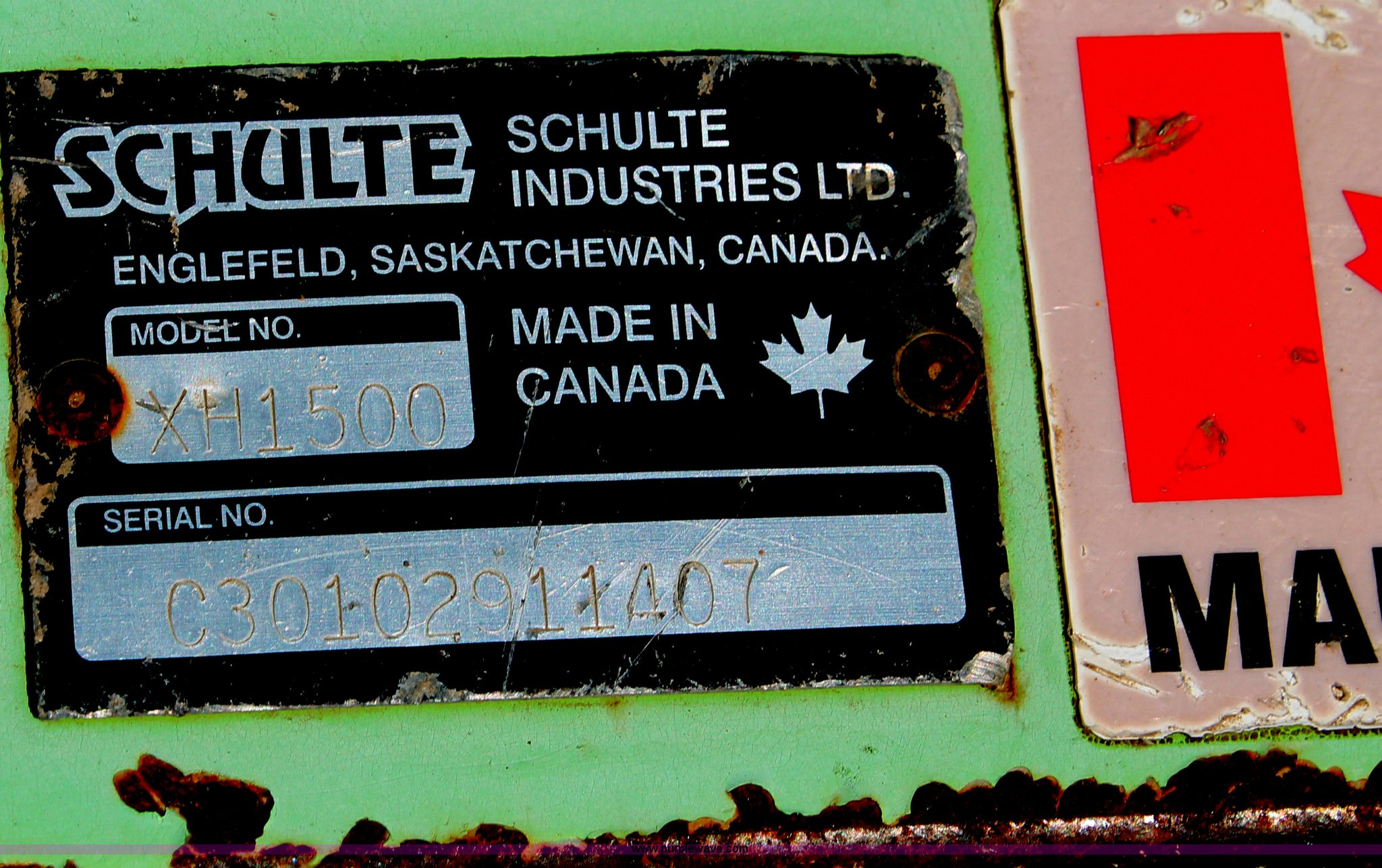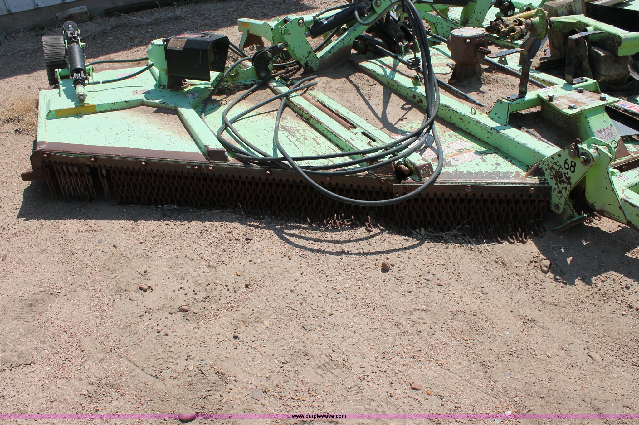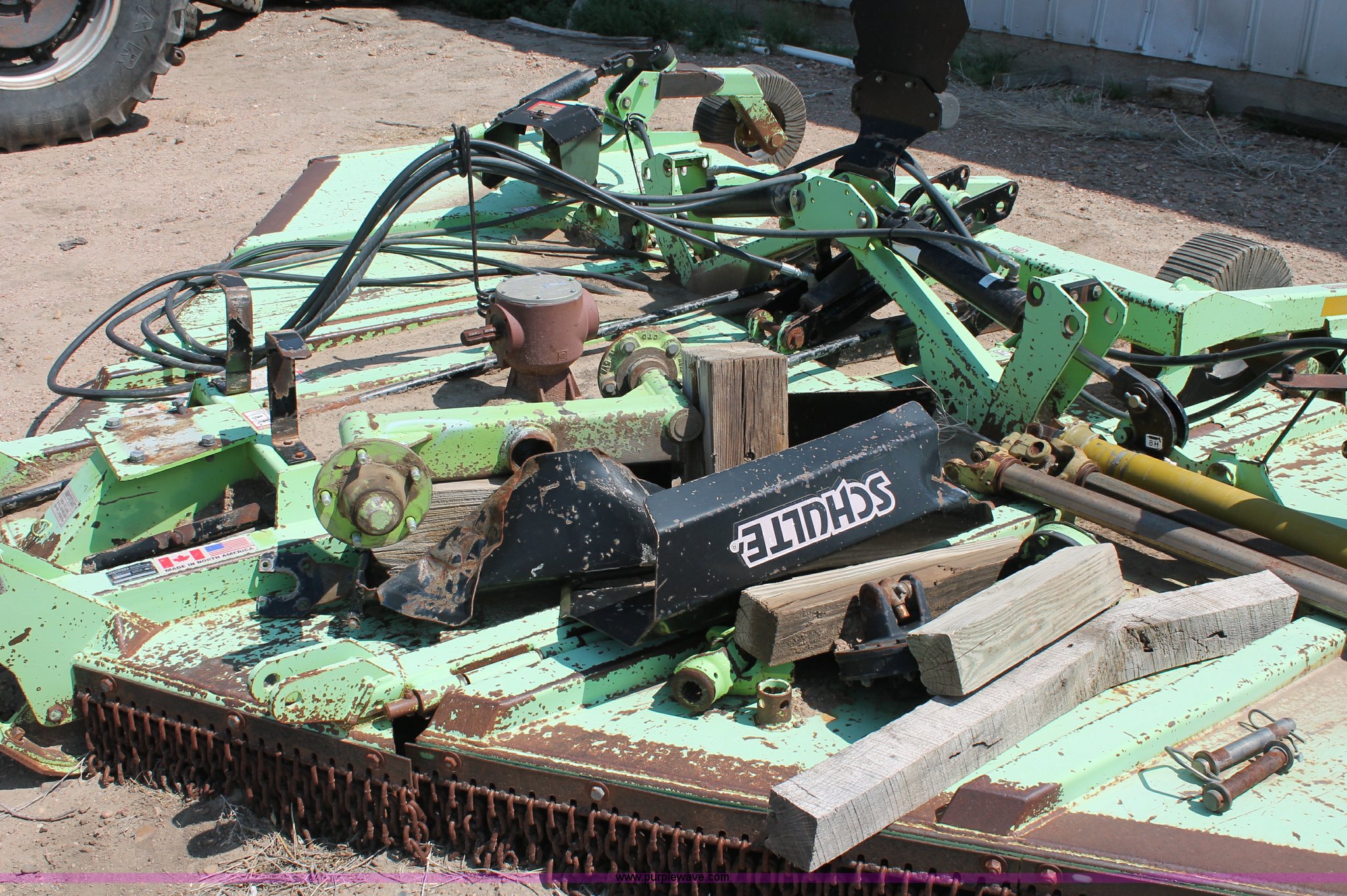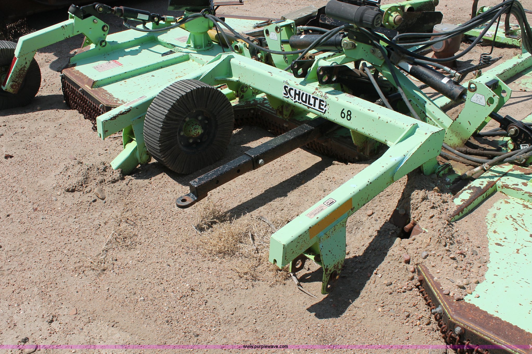 Purple Wave is selling a used Mower, Cutter, Shredder in Kansas. This item is a Schulte XH1500 rotary mower with the following: 15' cutting surface, Hydraulic folding wings, Hydraulic deck lift, 540 PTO, Pin hitch, Safety chains, Parts only, Serial C30102911407