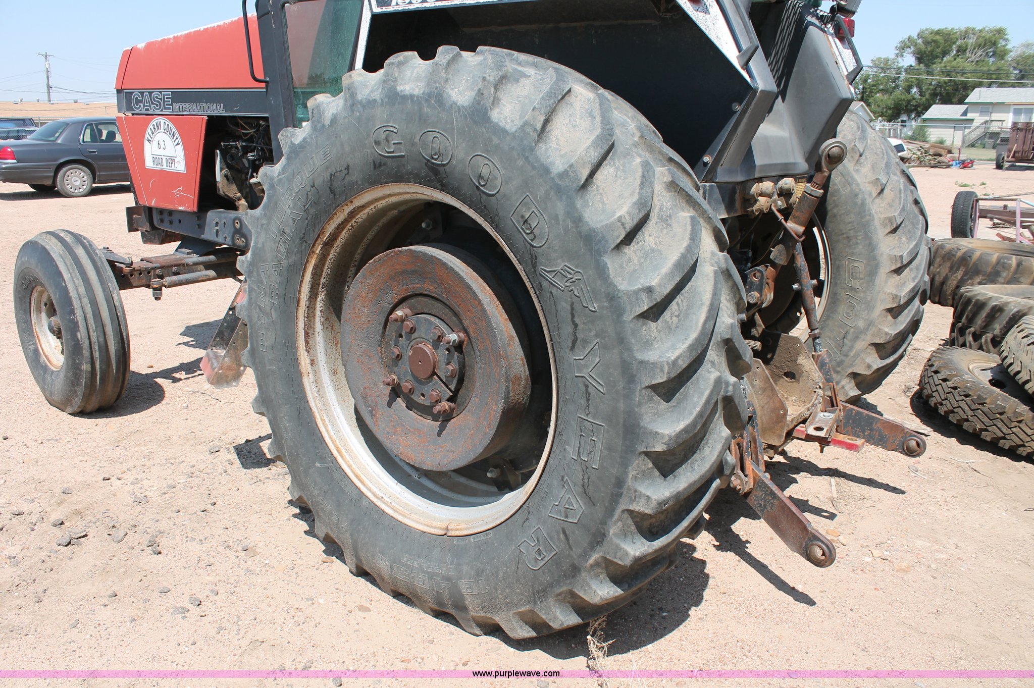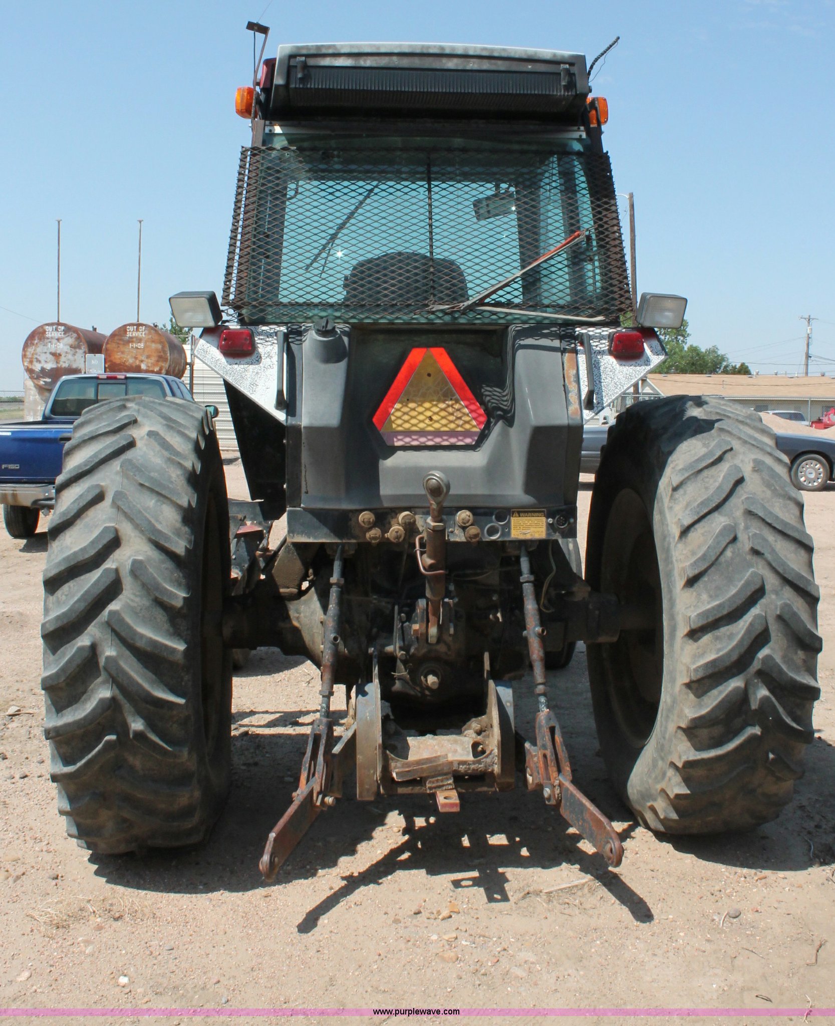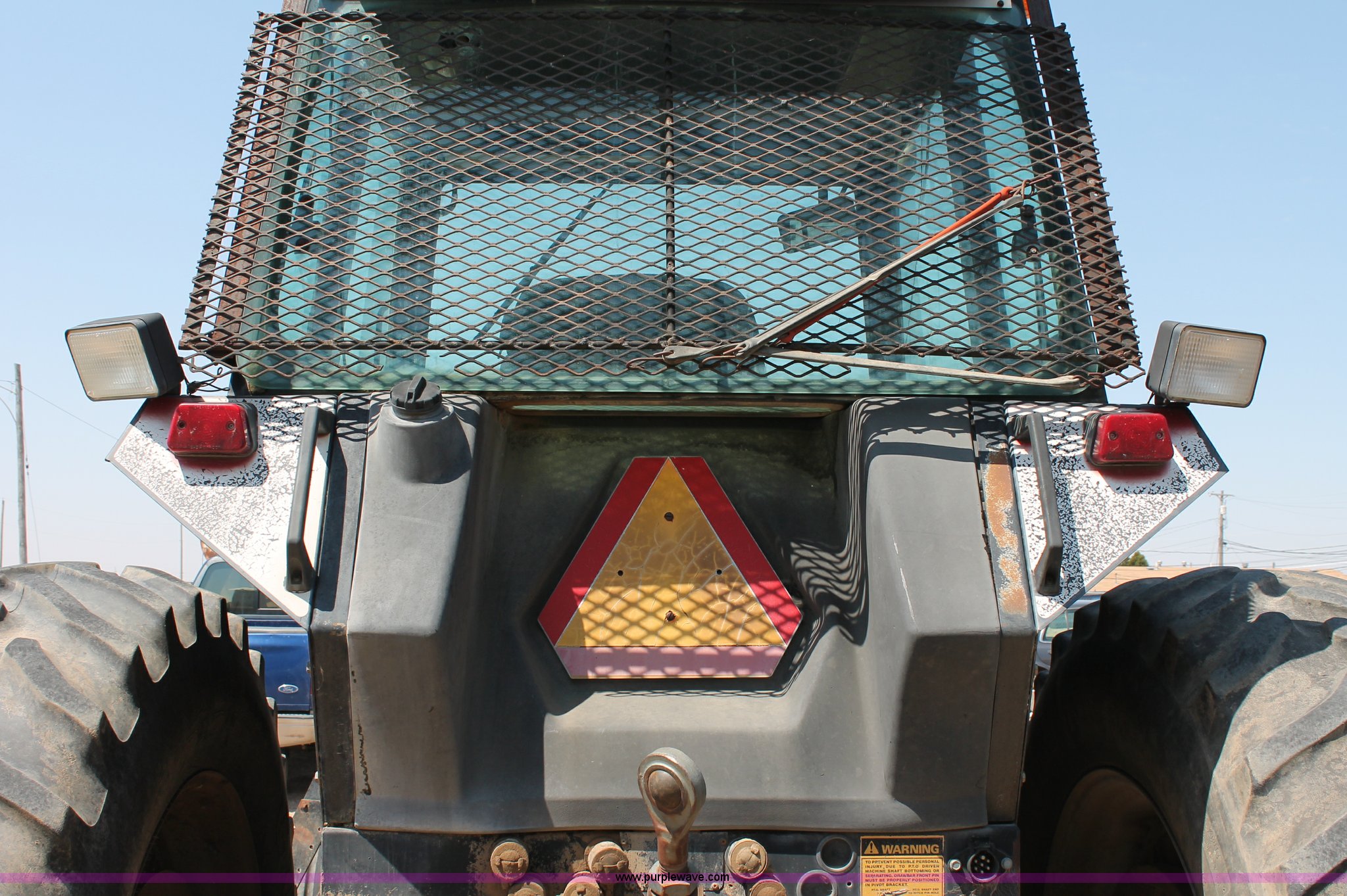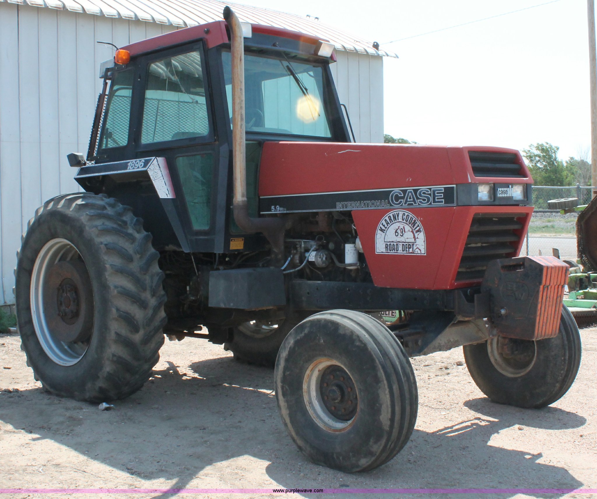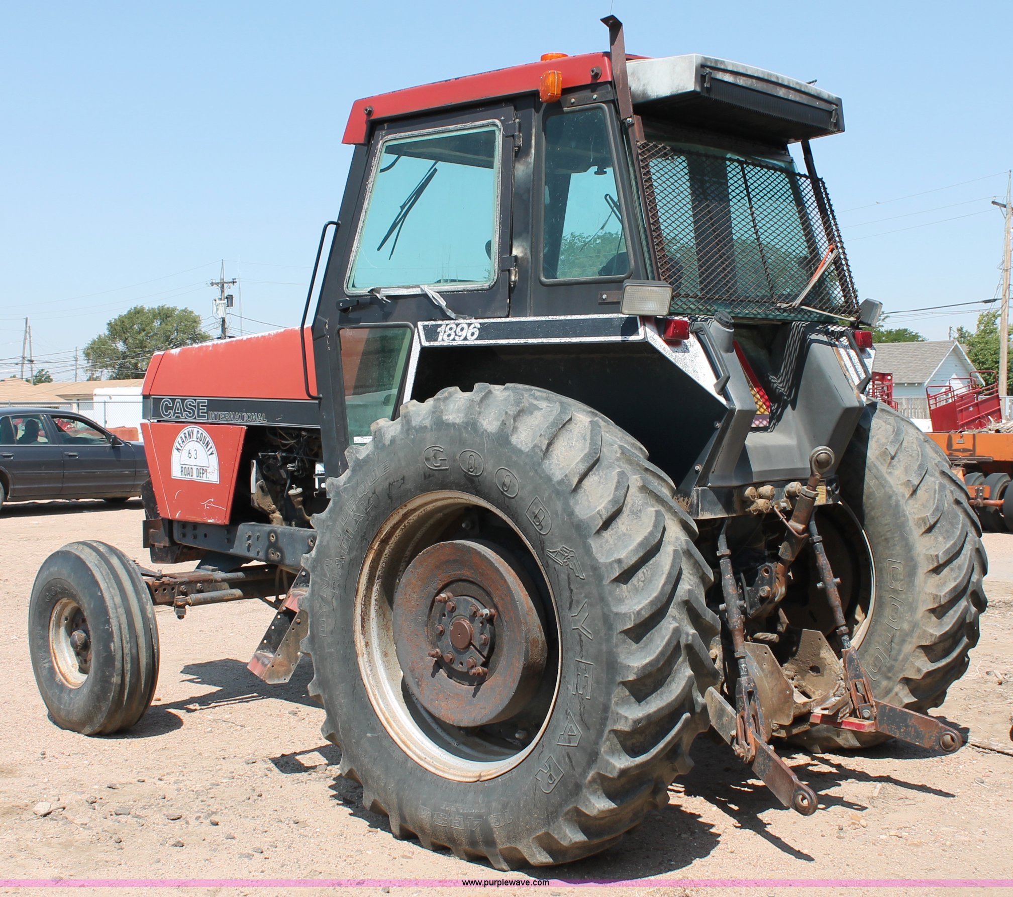 Purple Wave is selling a used Tractor in Kansas. This item is a 1987 Case IH Harvester 1896 tractor with the following: 7,366 hours on meter, Case 6T-590 5.9L six cylinder turbo diesel engine, Serial 21018385, Partial powershift transmission, 12F-3R gears, Unknown transmission issues, Differential lock, ROPS, Serial 17987501, AC and heat, AC blows warm, AM/FM/Cassette, Spring seat, Three point, Draw bar, 540/1000 PTO, Front and rear hydraulic remotes, (7) suitcase weights, Rear wheel weights, 108" wheelbase, Goodyear 11.00-16 front tires, Goodyear 18.4R38 rear tires, 13,495 lbs. base operating weight, Cracked glass, Unknown transmission issues, Serial 17895260