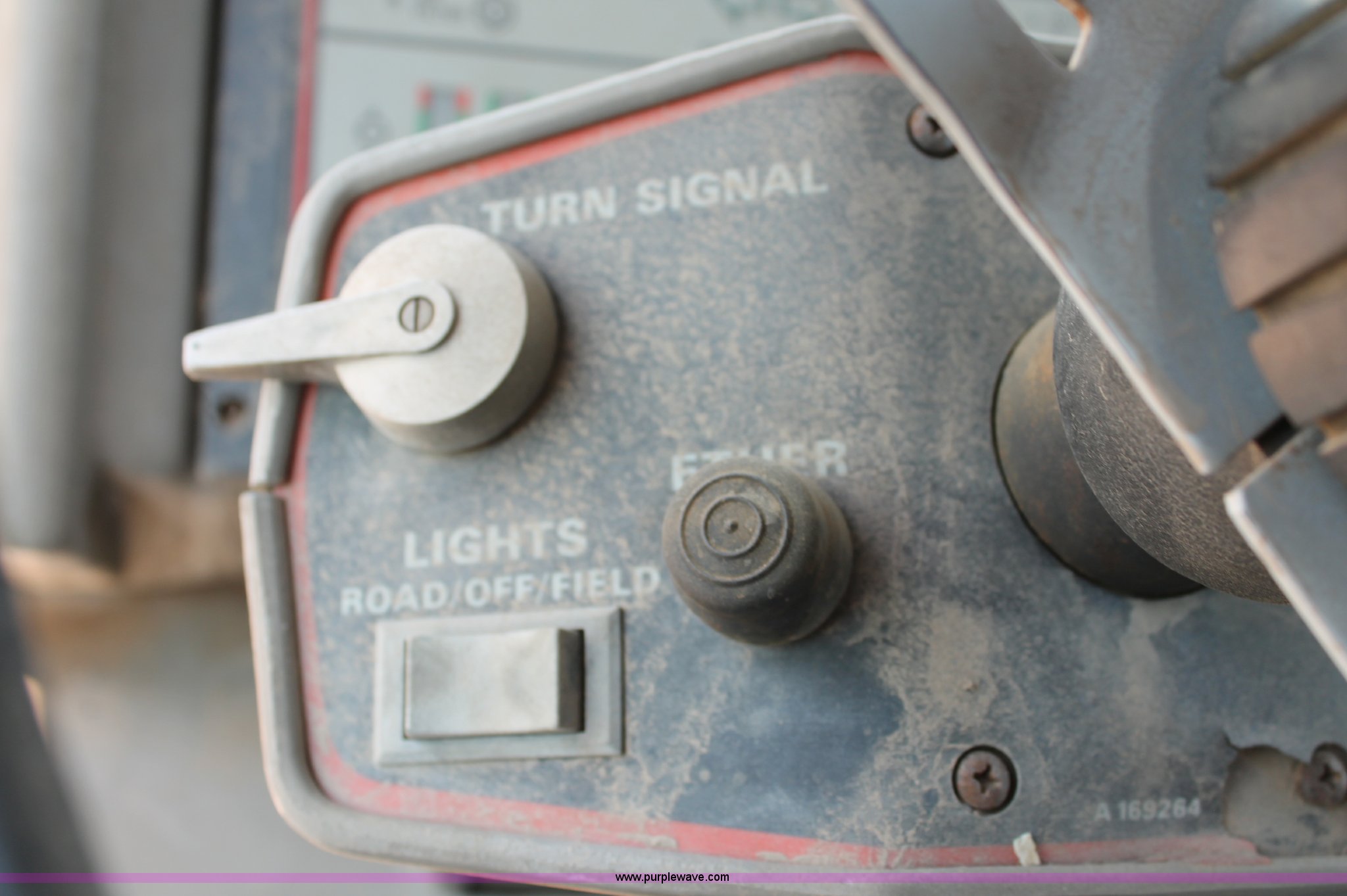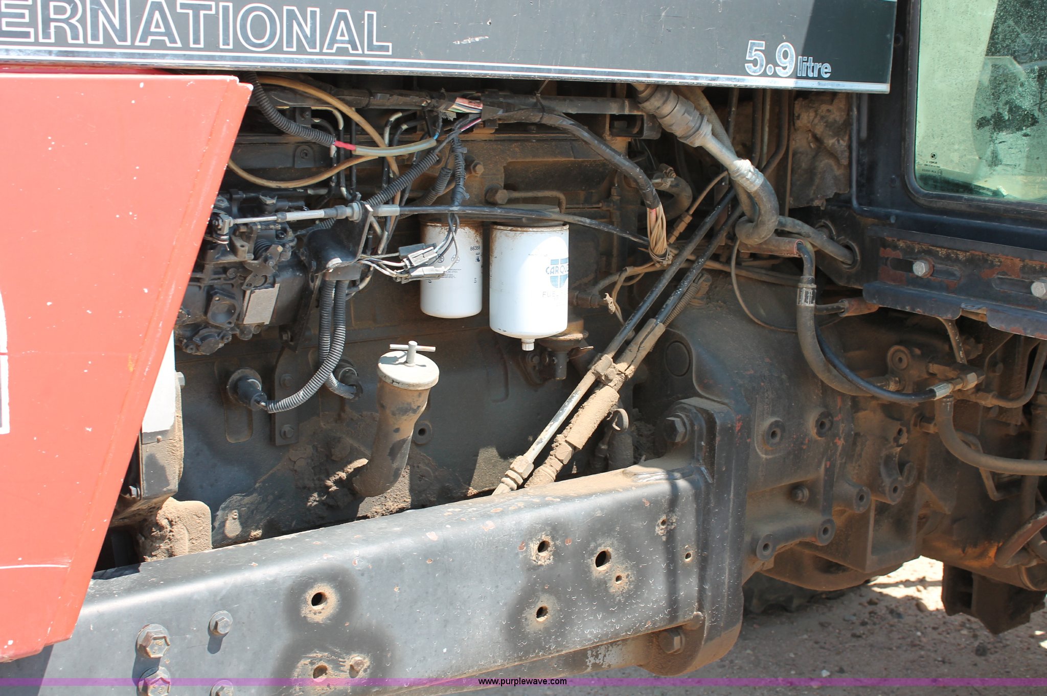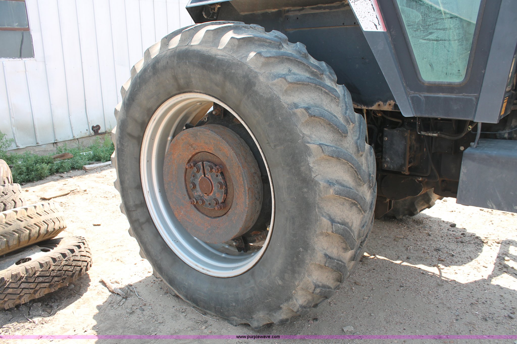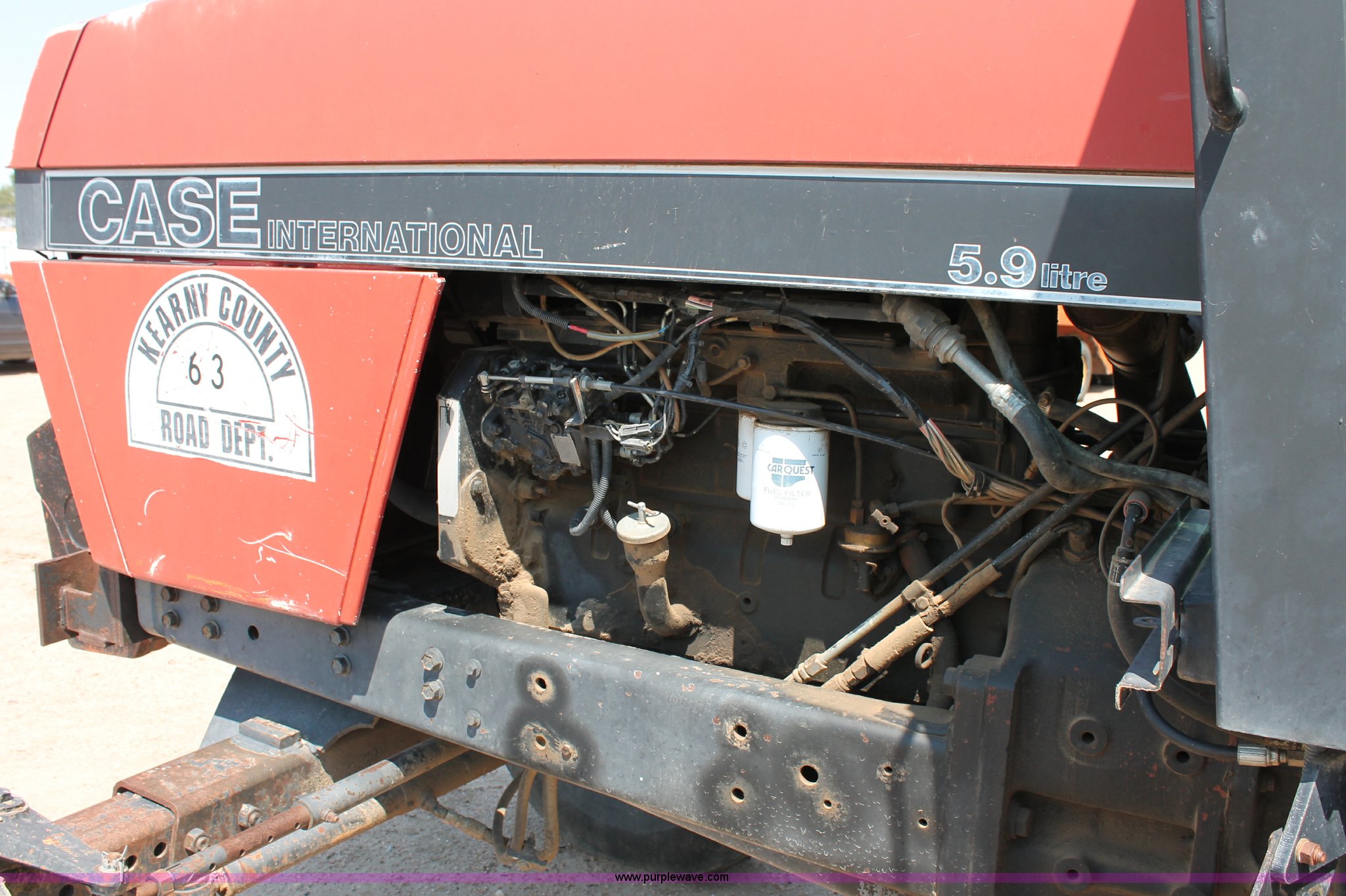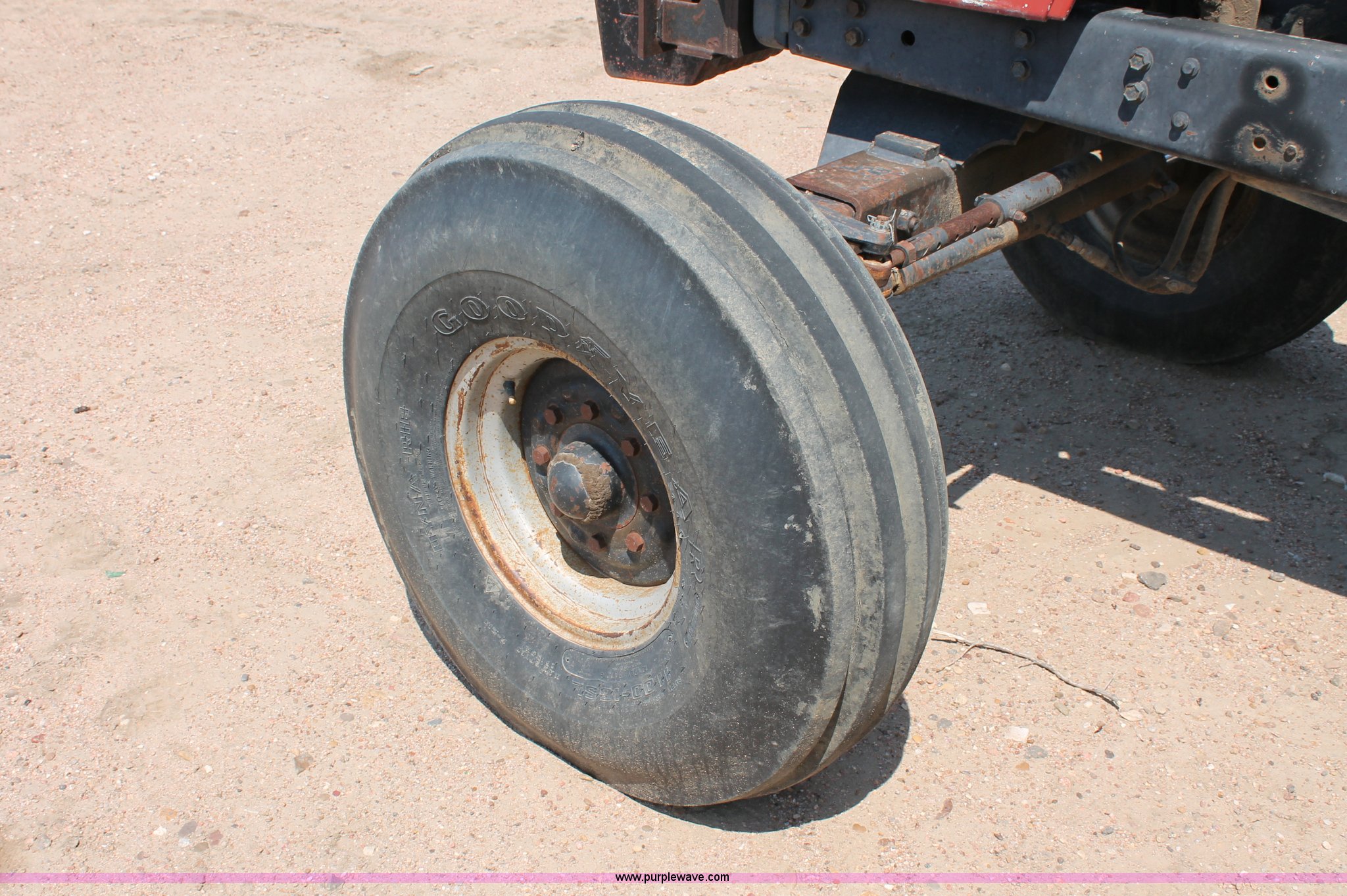 Purple Wave is selling a used Tractor in Kansas. This item is a 1987 Case IH Harvester 1896 tractor with the following: 7,366 hours on meter, Case 6T-590 5.9L six cylinder turbo diesel engine, Serial 21018385, Partial powershift transmission, 12F-3R gears, Unknown transmission issues, Differential lock, ROPS, Serial 17987501, AC and heat, AC blows warm, AM/FM/Cassette, Spring seat, Three point, Draw bar, 540/1000 PTO, Front and rear hydraulic remotes, (7) suitcase weights, Rear wheel weights, 108" wheelbase, Goodyear 11.00-16 front tires, Goodyear 18.4R38 rear tires, 13,495 lbs. base operating weight, Cracked glass, Unknown transmission issues, Serial 17895260