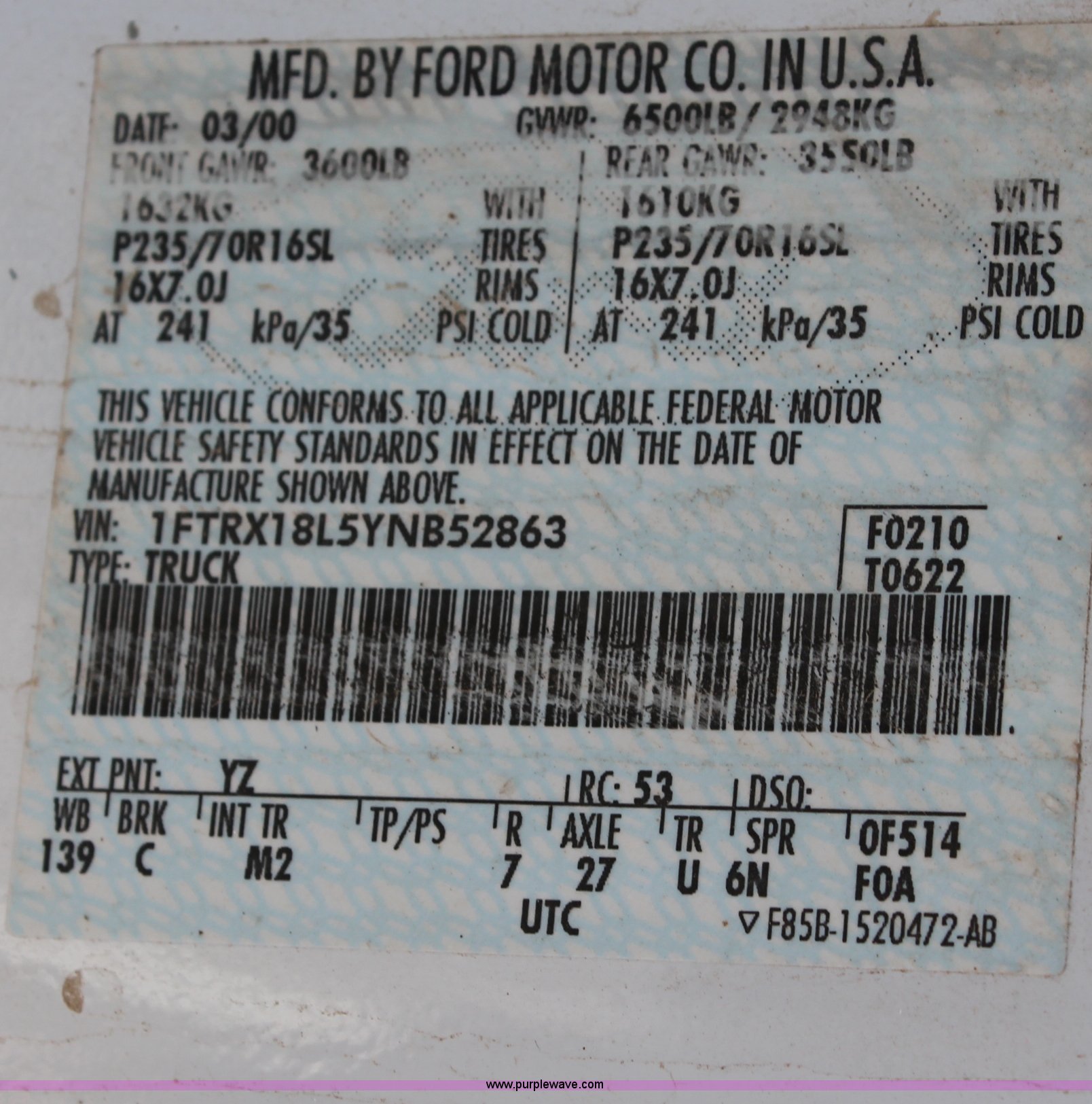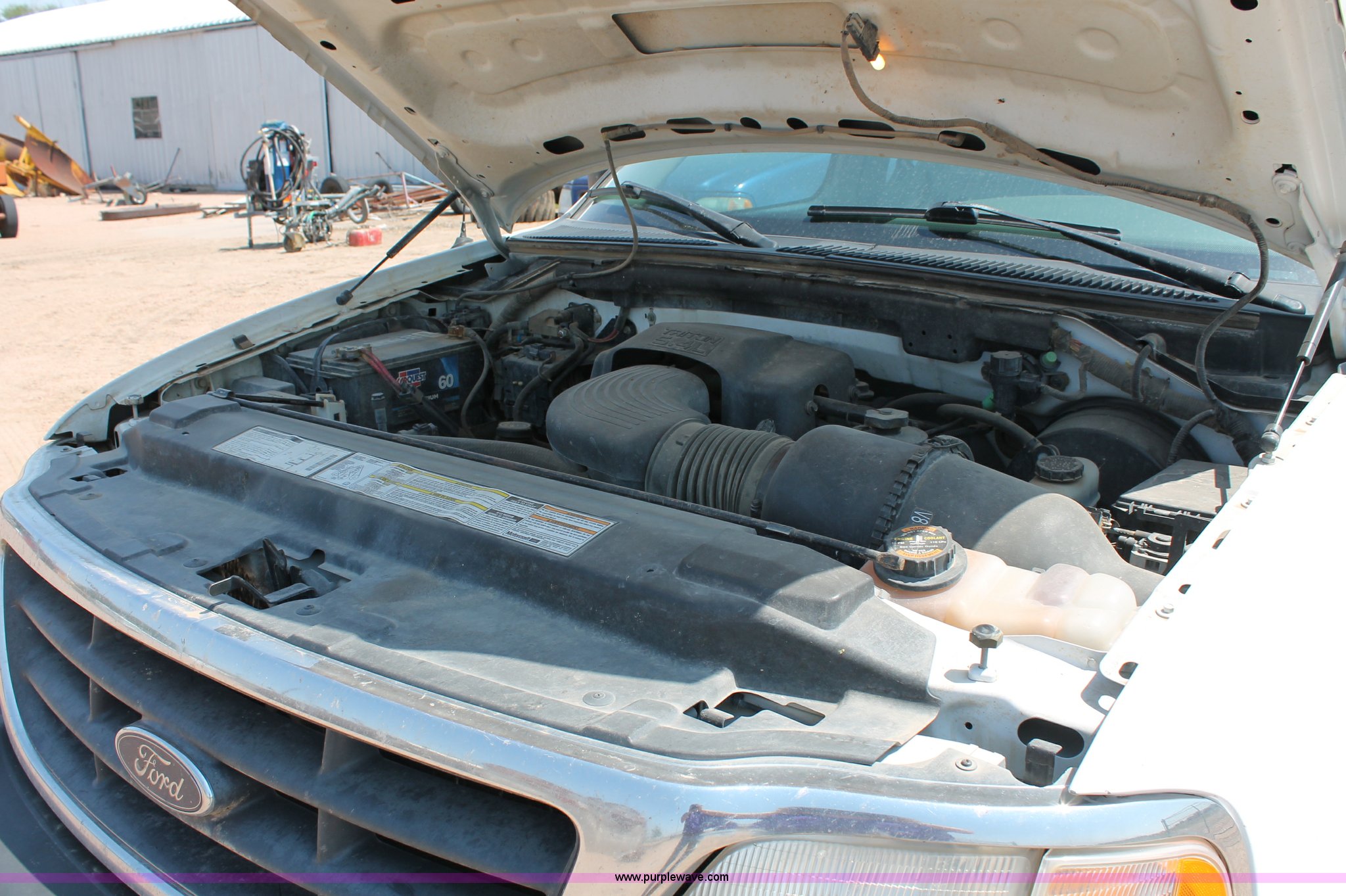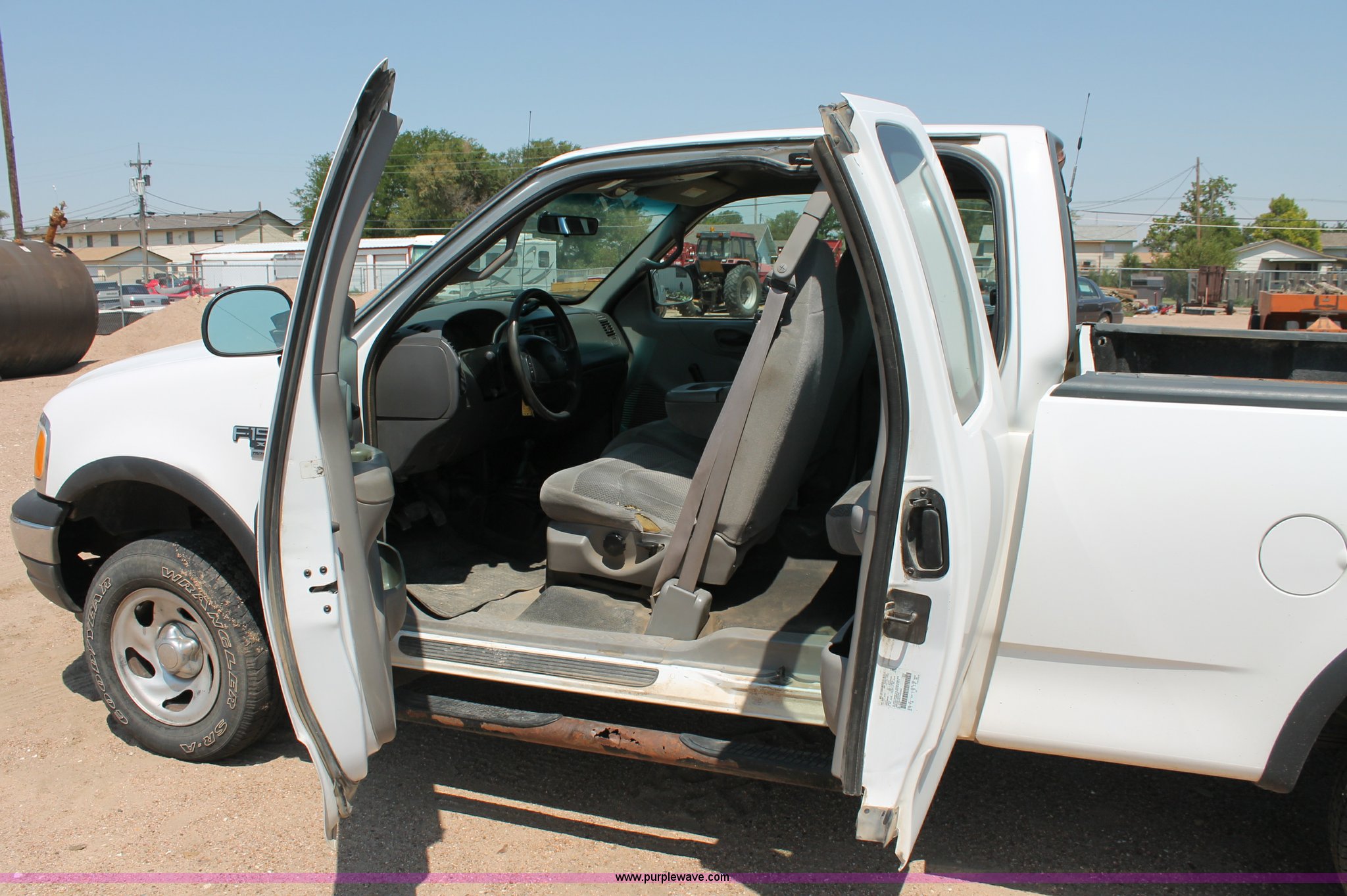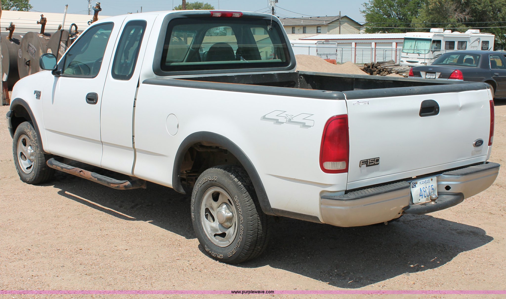 Purple Wave is selling a used Passenger Vehicle in Kansas. This item is a 2000 Ford F150 XL SuperCab pickup truck with the following: 274,521 miles on odometer, 5.4L V8 EFI gas engine, Automatic transmission, Four wheel drive, AC and heat, Tilt, Cruise, AM/FM, Manual windows and locks, Cloth interior, Nerf bars, Tow hooks, 2" ball, 235/70R16 tires, Service light is on