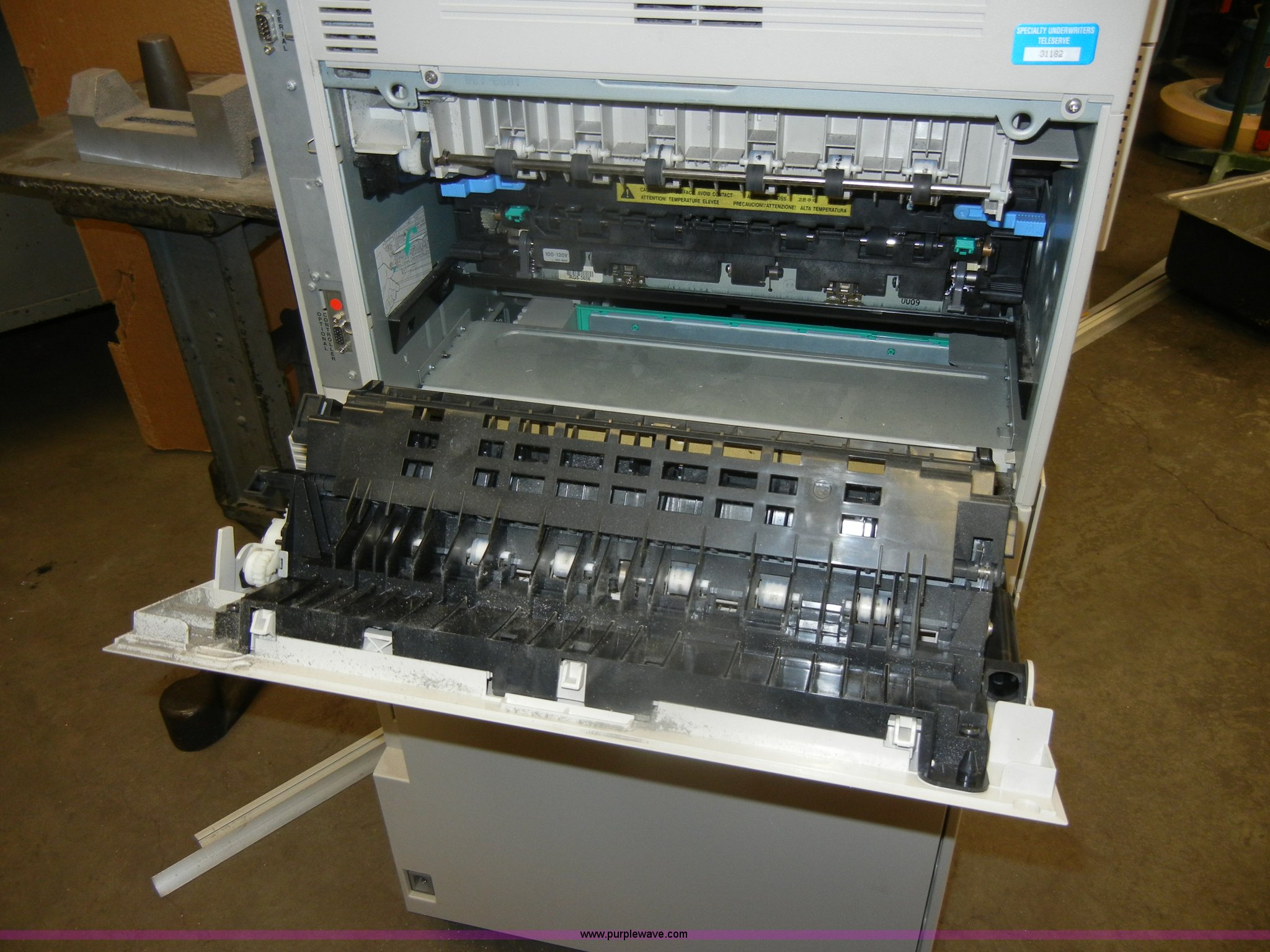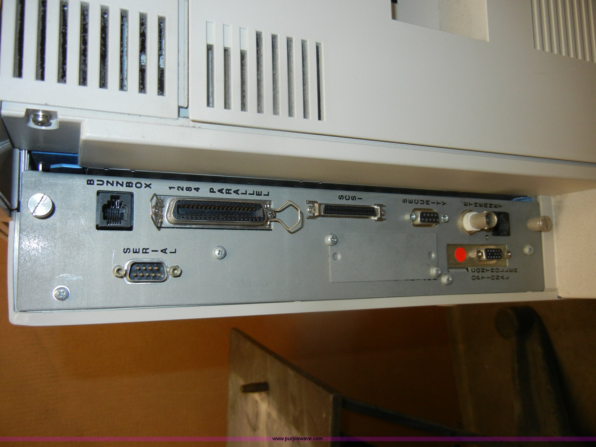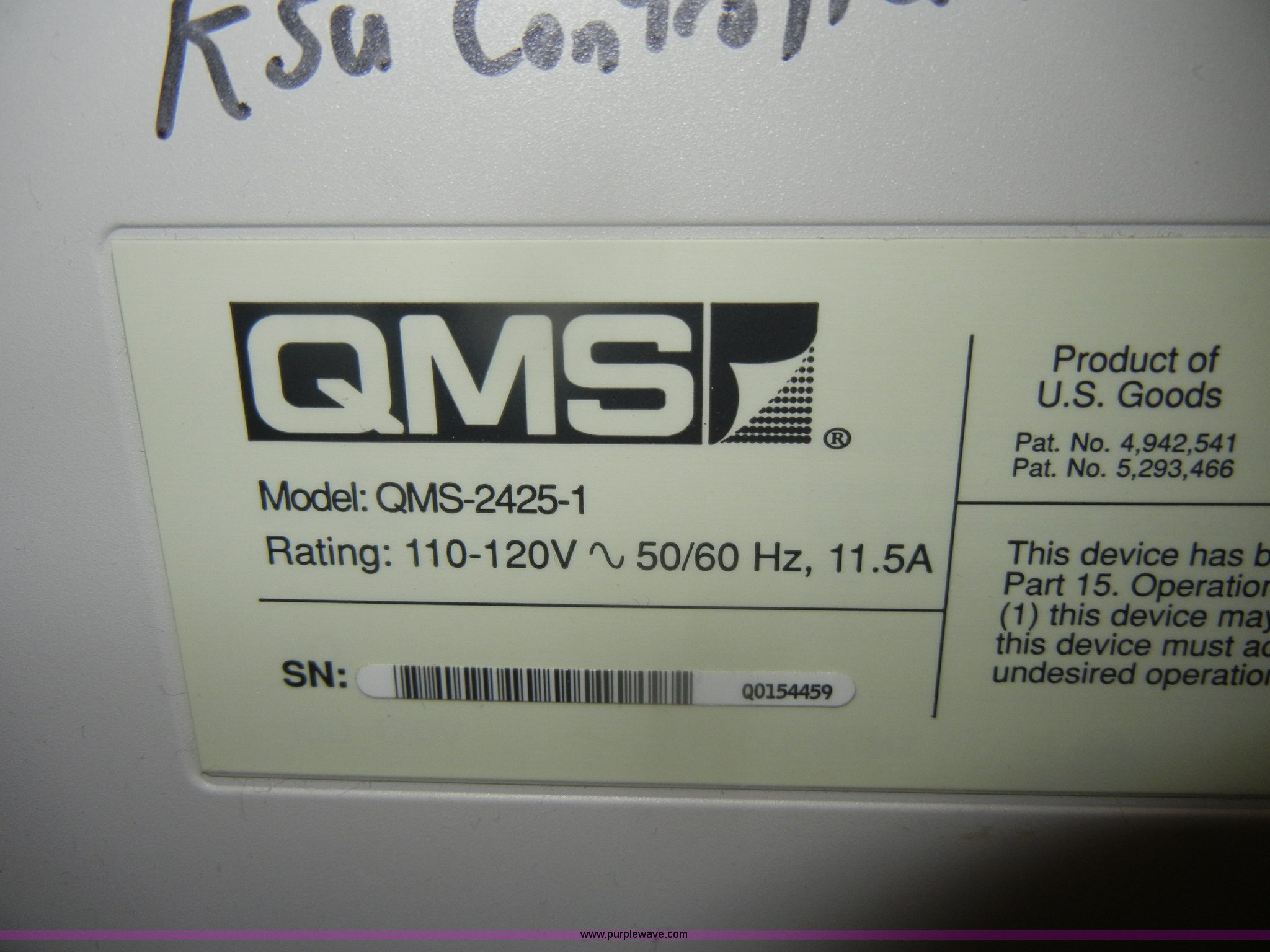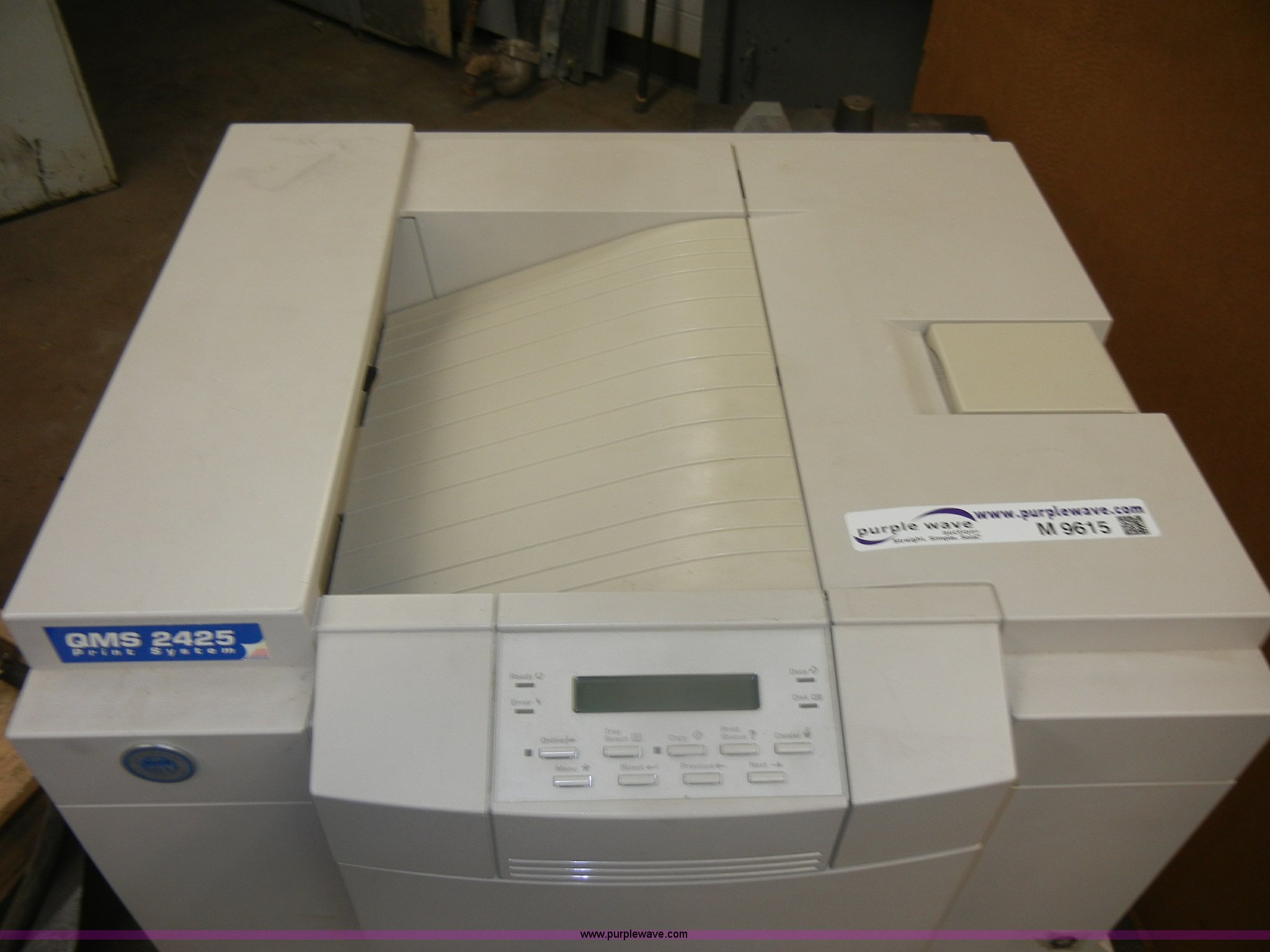 Purple Wave is selling a used Electronics in Kansas. This item is a 1996 QMS printer with the following: 22" x 22" x 40", (2) paper trays, No power cord, Model QMS-2425-1, Serial Q0154459