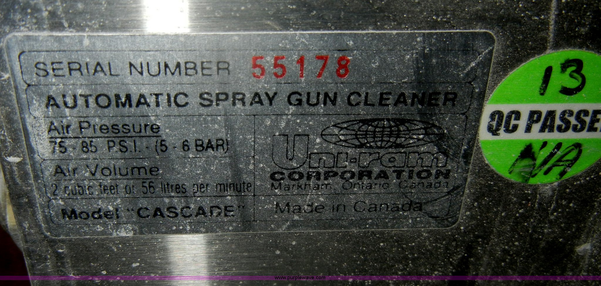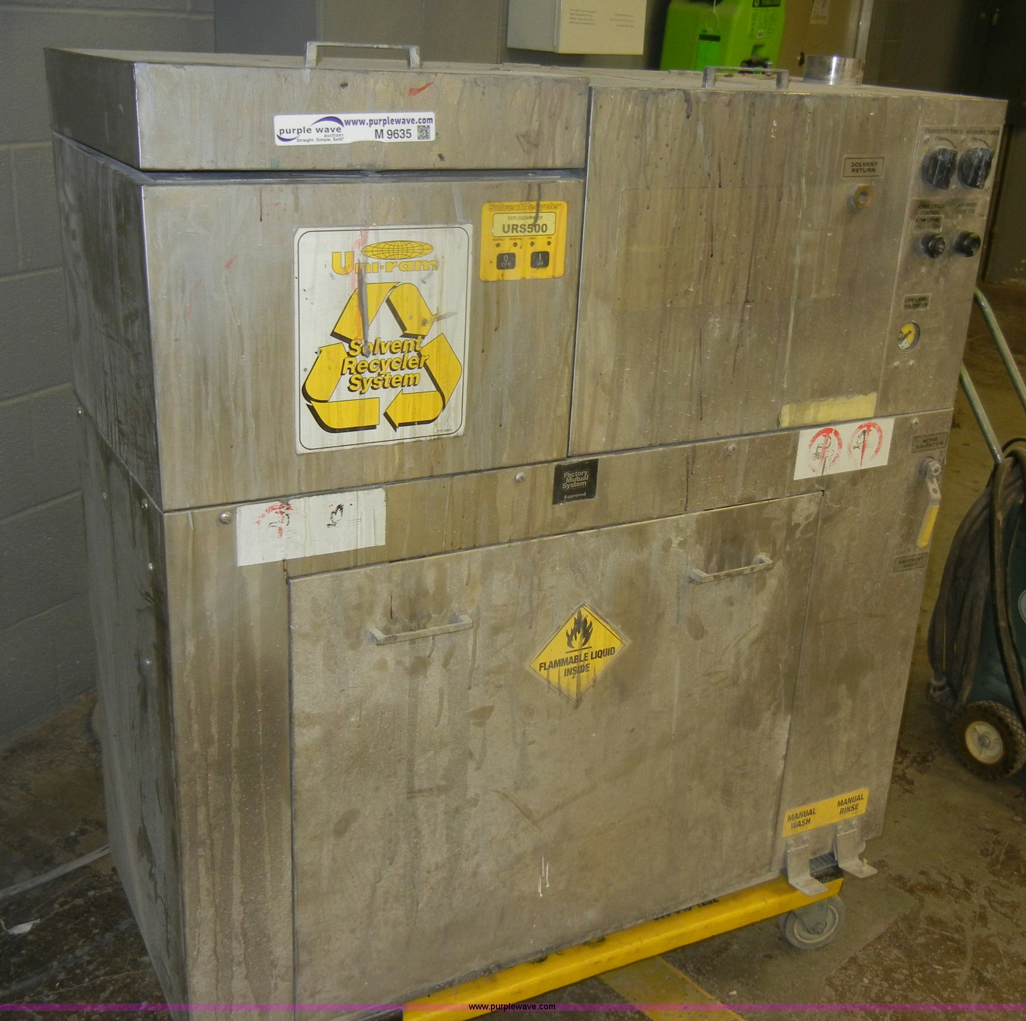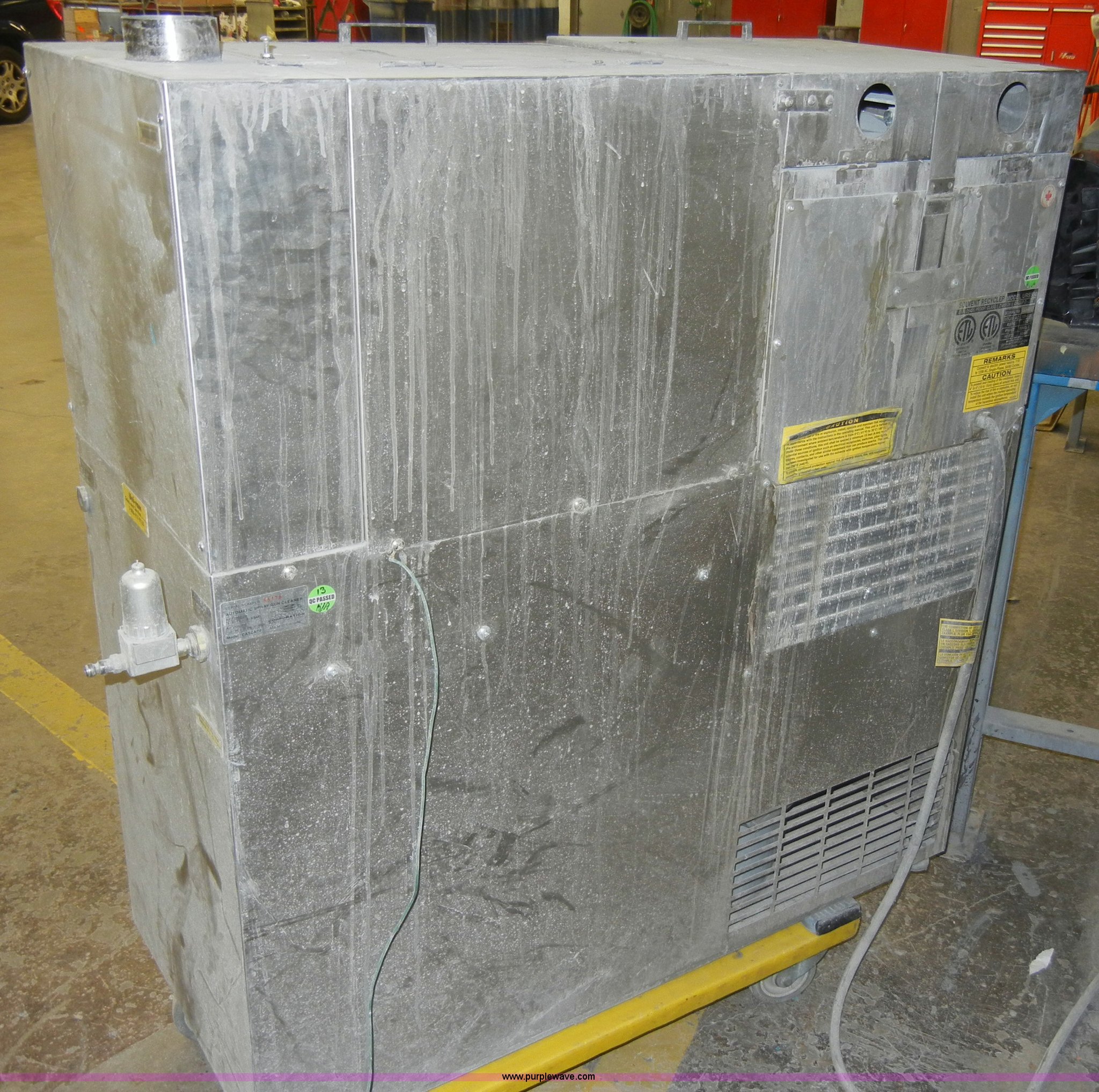 Purple Wave is selling a used Tools in Kansas. This item is a 2003 Uni-ram solvent recycler and gun washer with the following: 40" x 17" x 42", Recycler, 100-120 volts, 13 amps, Single phase, 50/60 Hz, Serial 653210, Gun Cleaner, 75-85 PSI air pressure, 2 cu. ft. per minute air volume, Model Cascade, Serial 55178, Unknown working condition, Cart not included