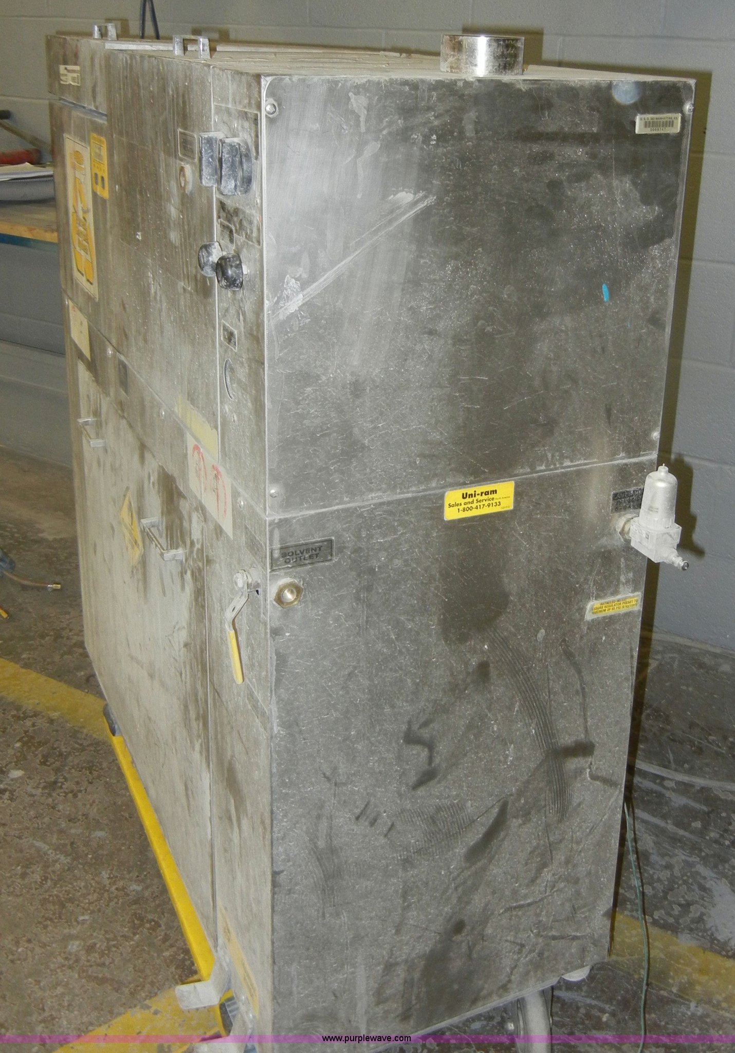 Take a look at this used 2003 Uni-ram solvent recycler and gun washer being sold on August 7th, 2012 in the SOLD! Tuesday August 7 Government Auction made by Uni-ram. Take a look at all of the item information below or take a look at similar auctions for Shop Tools.