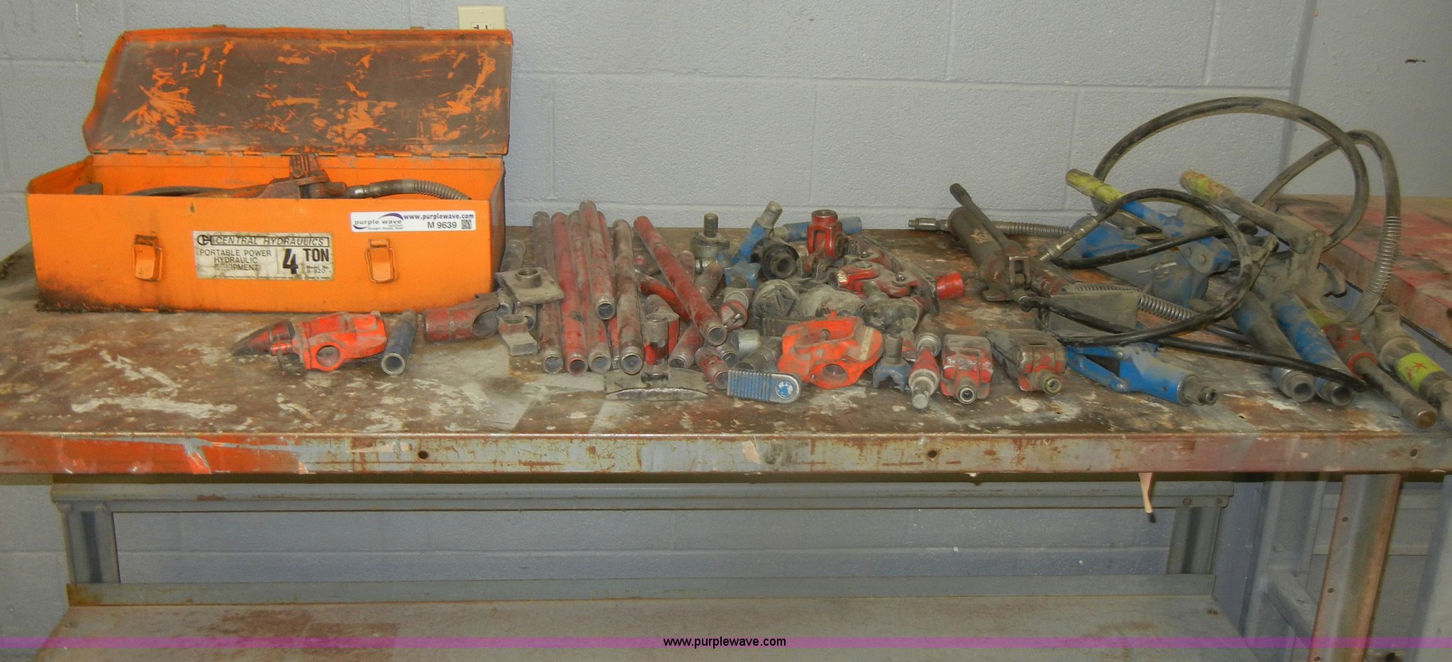 Purple Wave is selling a used Tools in Kansas. This item is a (4) 4 ton portable hydraulic rams with the following: Incomplete units, Parts and pieces