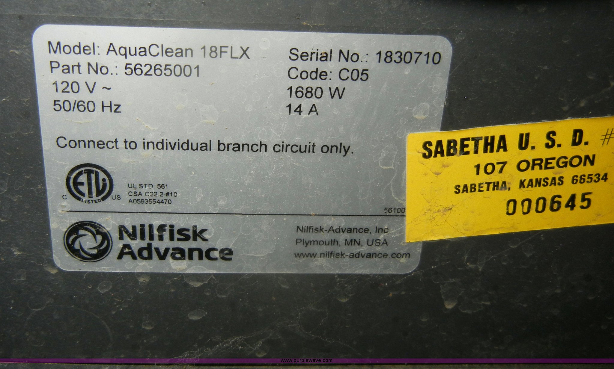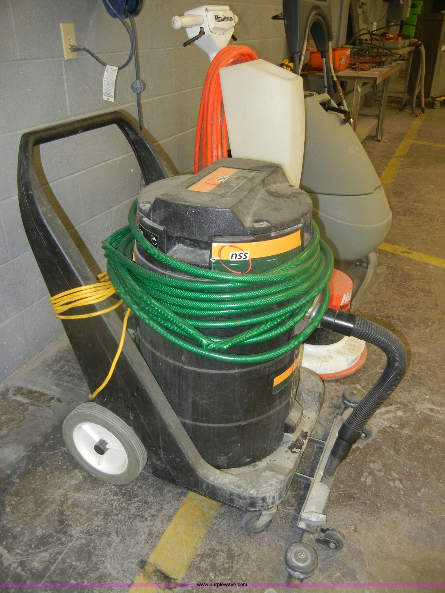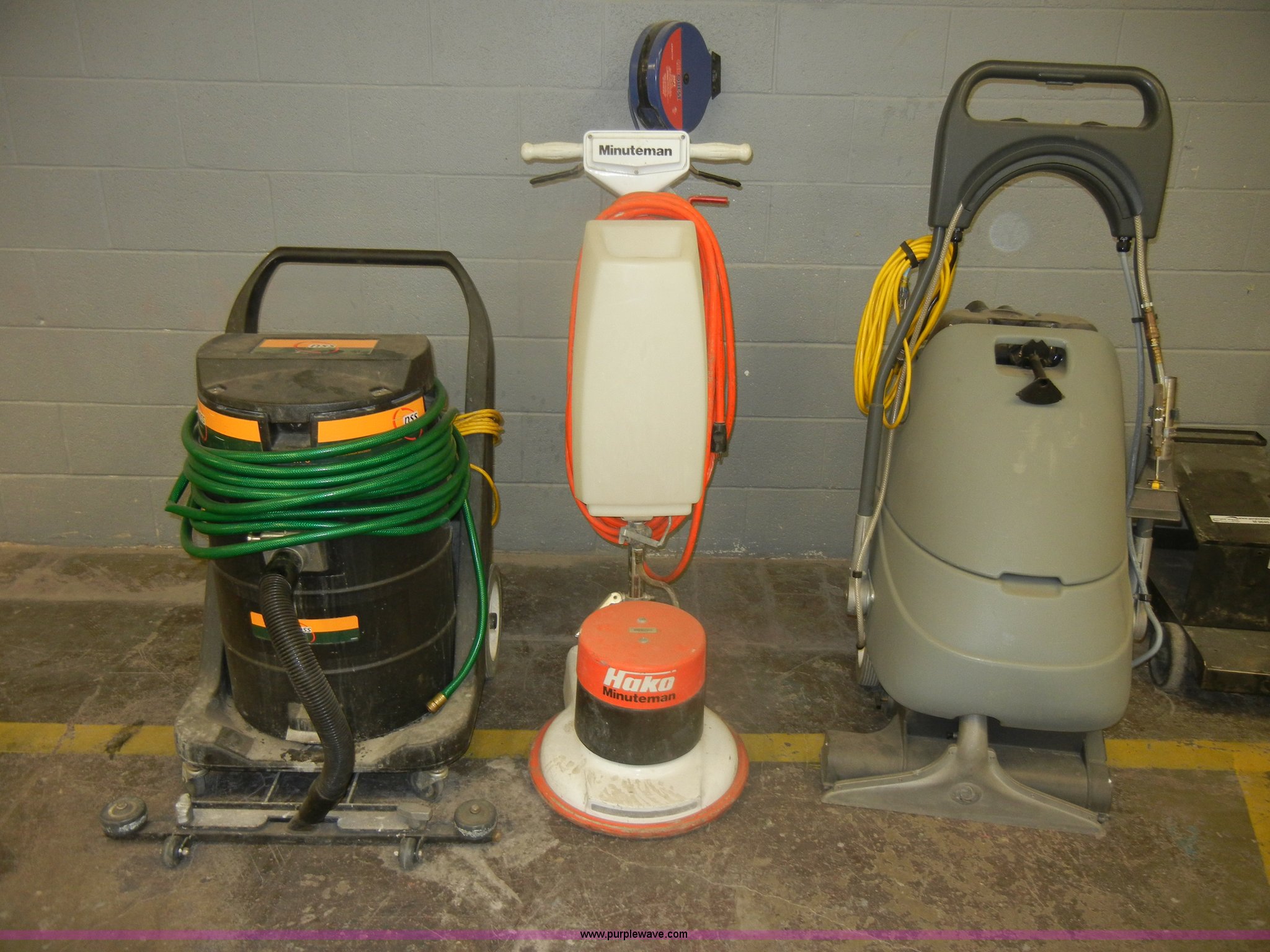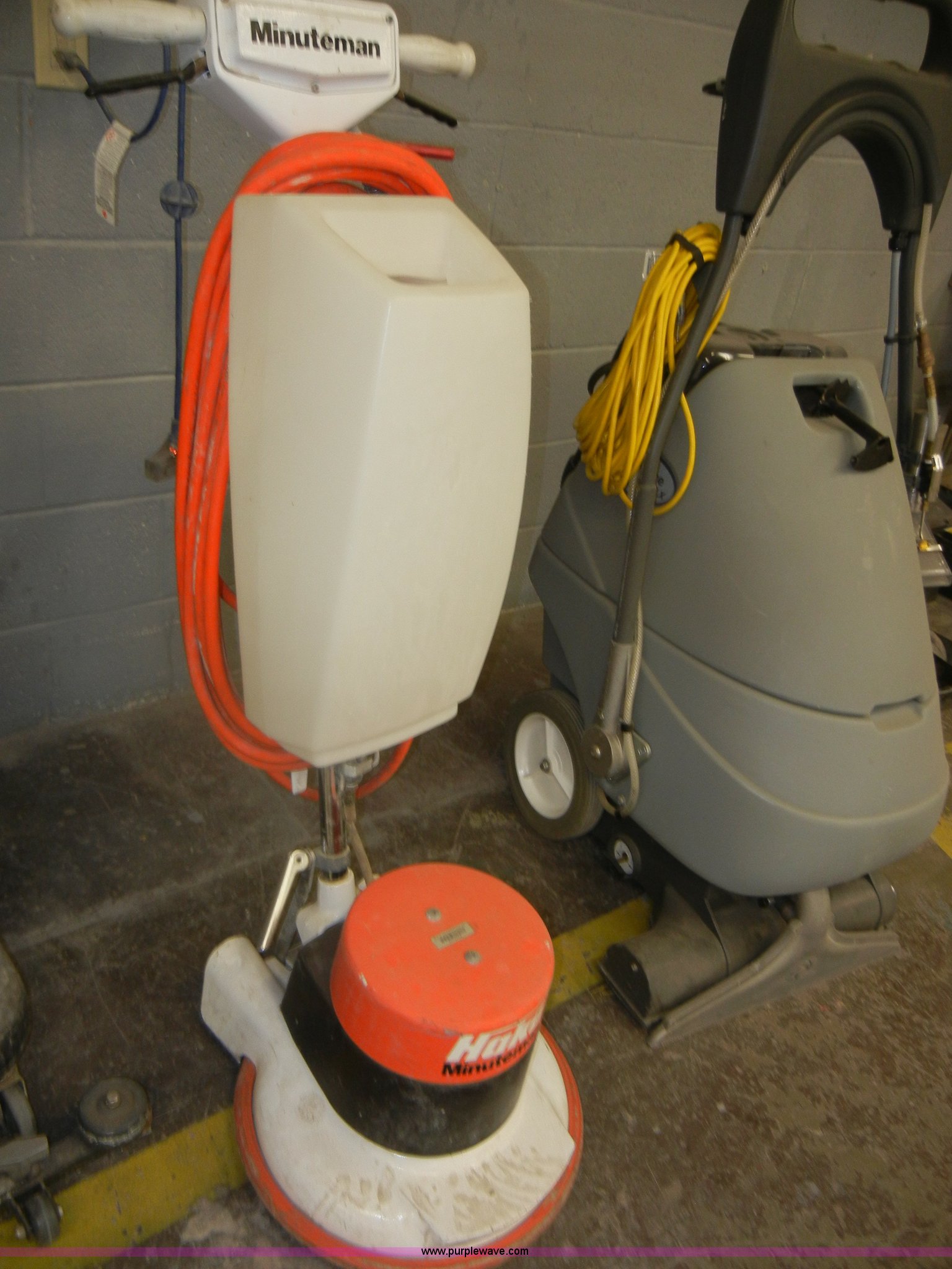 Purple Wave is selling a used All Other Household Items in Kansas. This item is a (3) assorted floor cleaning units with the following: NSS COLT commercial vacuum cleaner, 115V, 6.2 amps, 60 Hz, 1987 Minuteman buffer, 120V, 11 amps, 60 Hz, 16" pad not included, Model MC830519, Serial 24700007, Advance AquaClean FLX floor cleaner, 50/60 Hz, 14 amp, 21" sweep, Handheld unit included, Serial 1830710