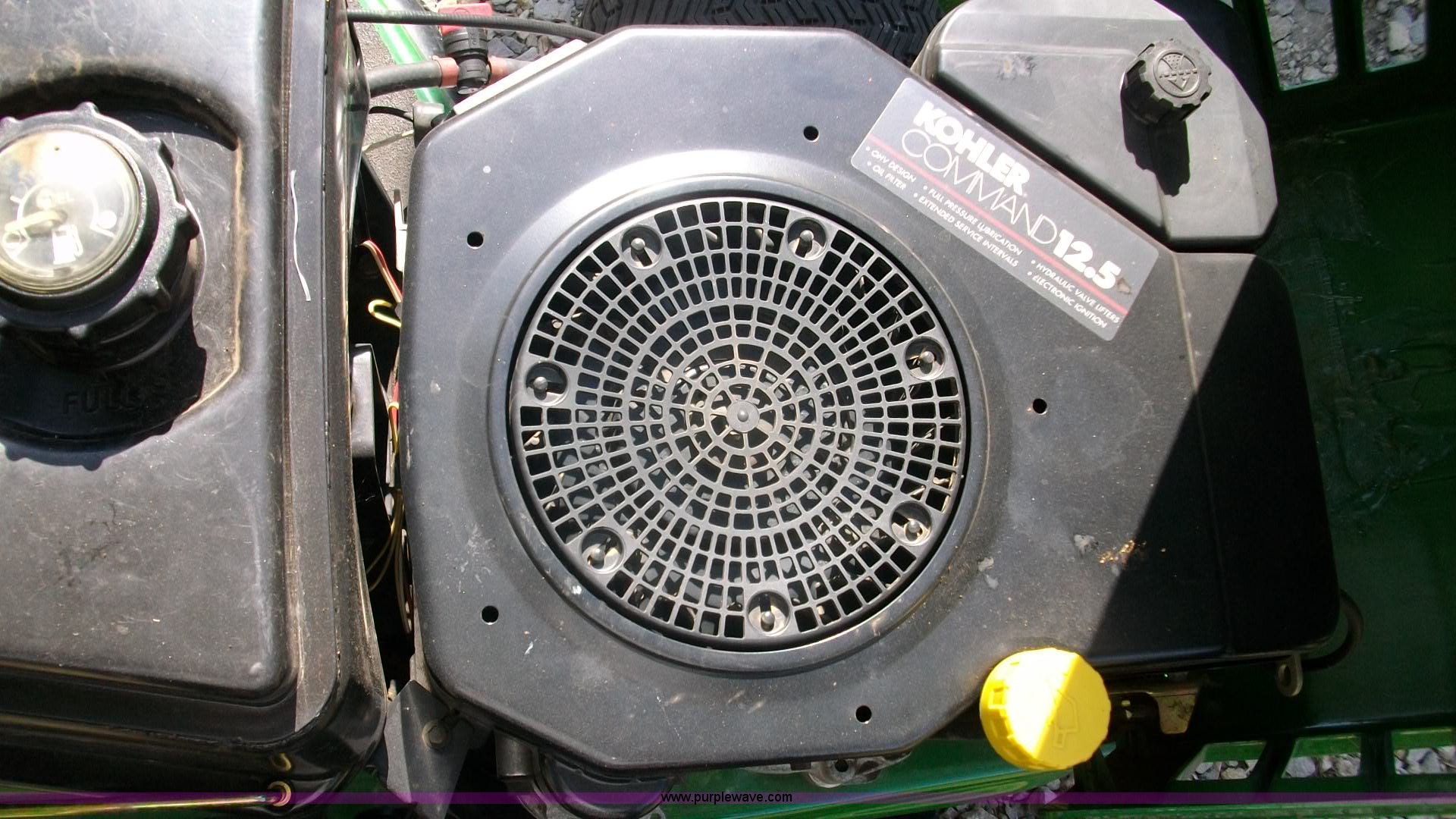 Purple Wave is selling a used Lawn and Garden in Kansas. This item is a John Deere STX38 lawn mower with the following: Kohler Command 12.5 HP engine, Five speed gear drive, Recently service, Recently replaced battery, Hood repaired with fiberglass due to cracking