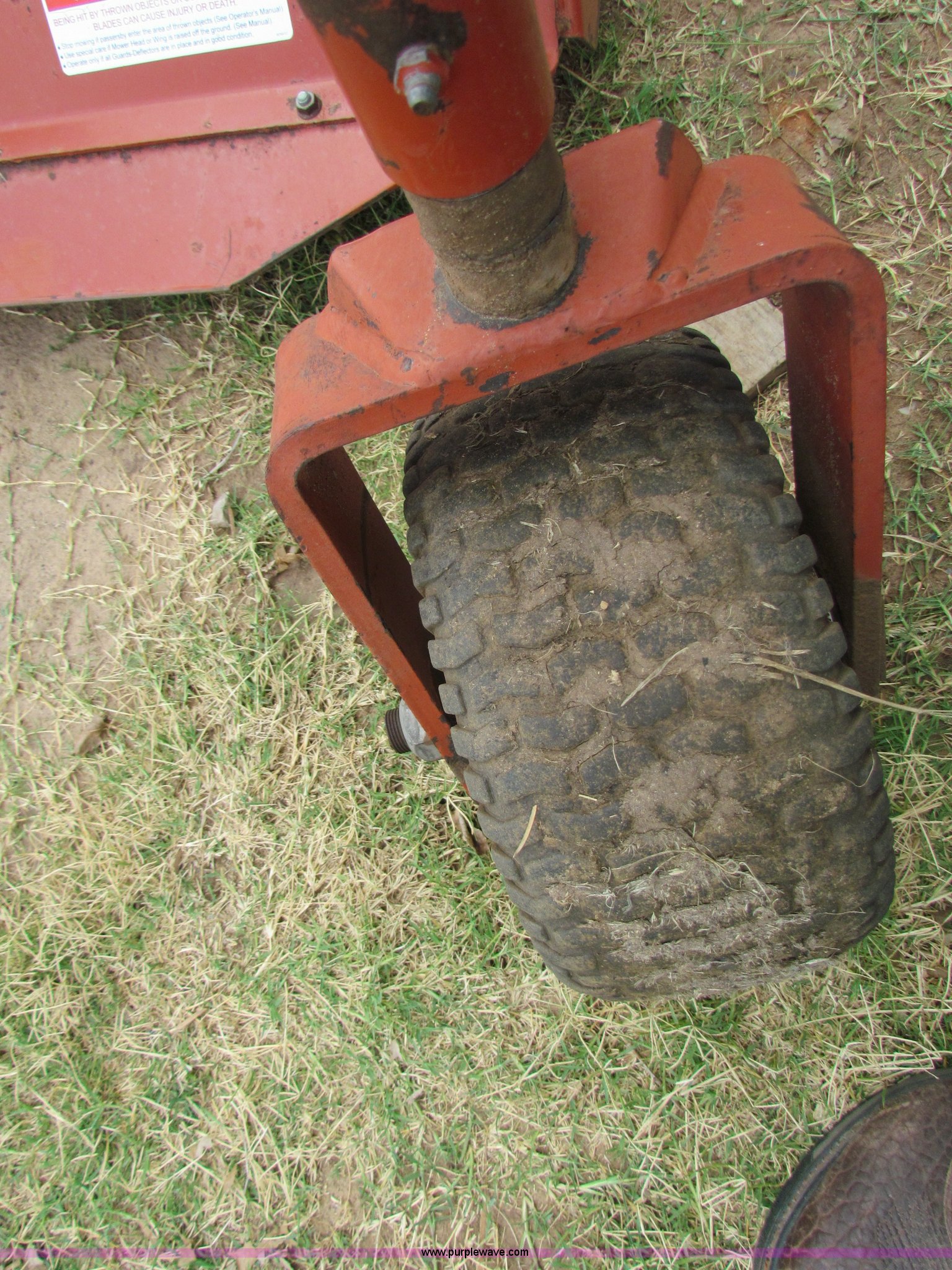 Purple Wave is selling a used Mower, Cutter, Shredder in Oklahoma. This item is a Rhino 14' folding finish mower with the following: 540 PTO, 26x12.00-12 tires, 13x6.50-6 foam filled deck wheels, Rear deck rebuilt 30 acres ago, Serial 10409