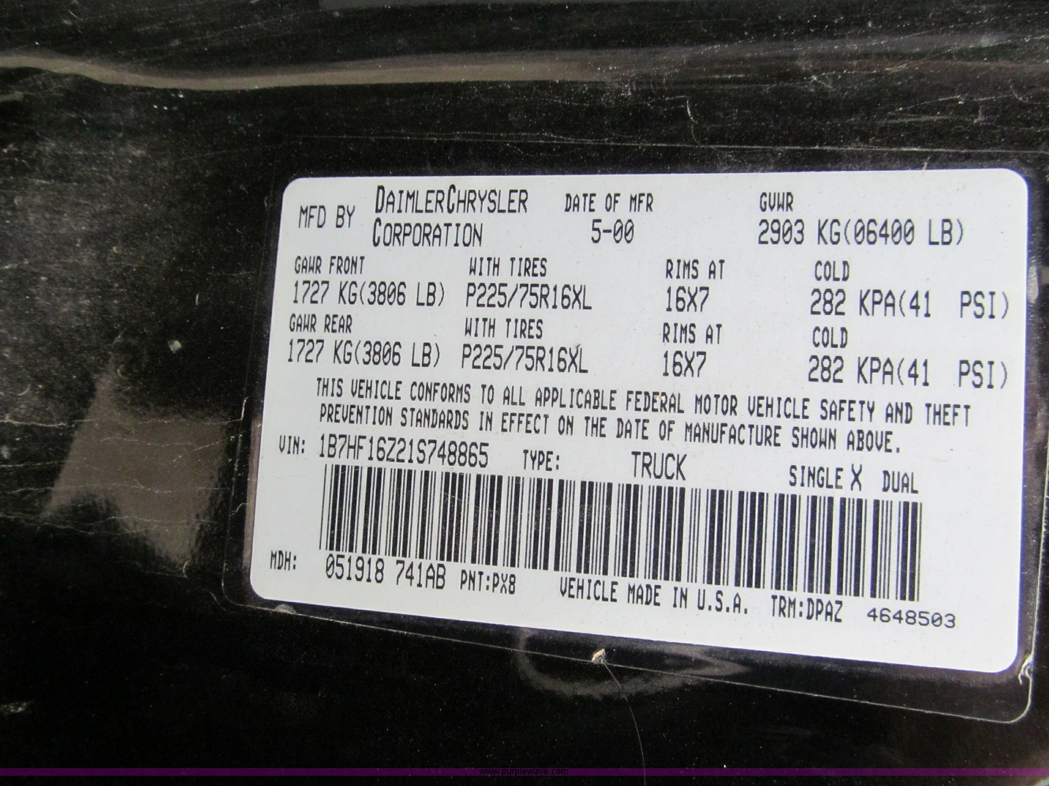 Purple Wave is selling a used Passenger Vehicle in Missouri. This item is a 2001 Dodge Ram 1500 Sport pickup truck with the following: 130,525 miles on odometer, Magnum 5.9L V8 MPI gas engine, Automatic transmission, Weak, Four wheel drive, AC and heat, Tilt, Cruise, AM/FM/CD/Cassette, Power windows, locks, mirrors, and seats, Leather seats, Cloth floor, Sliding rear glass, Receiver hitch, Trailer wiring, Aluminum wheels, 275/70R17 tires, One bad, Contents will be removed, Transmission is weak