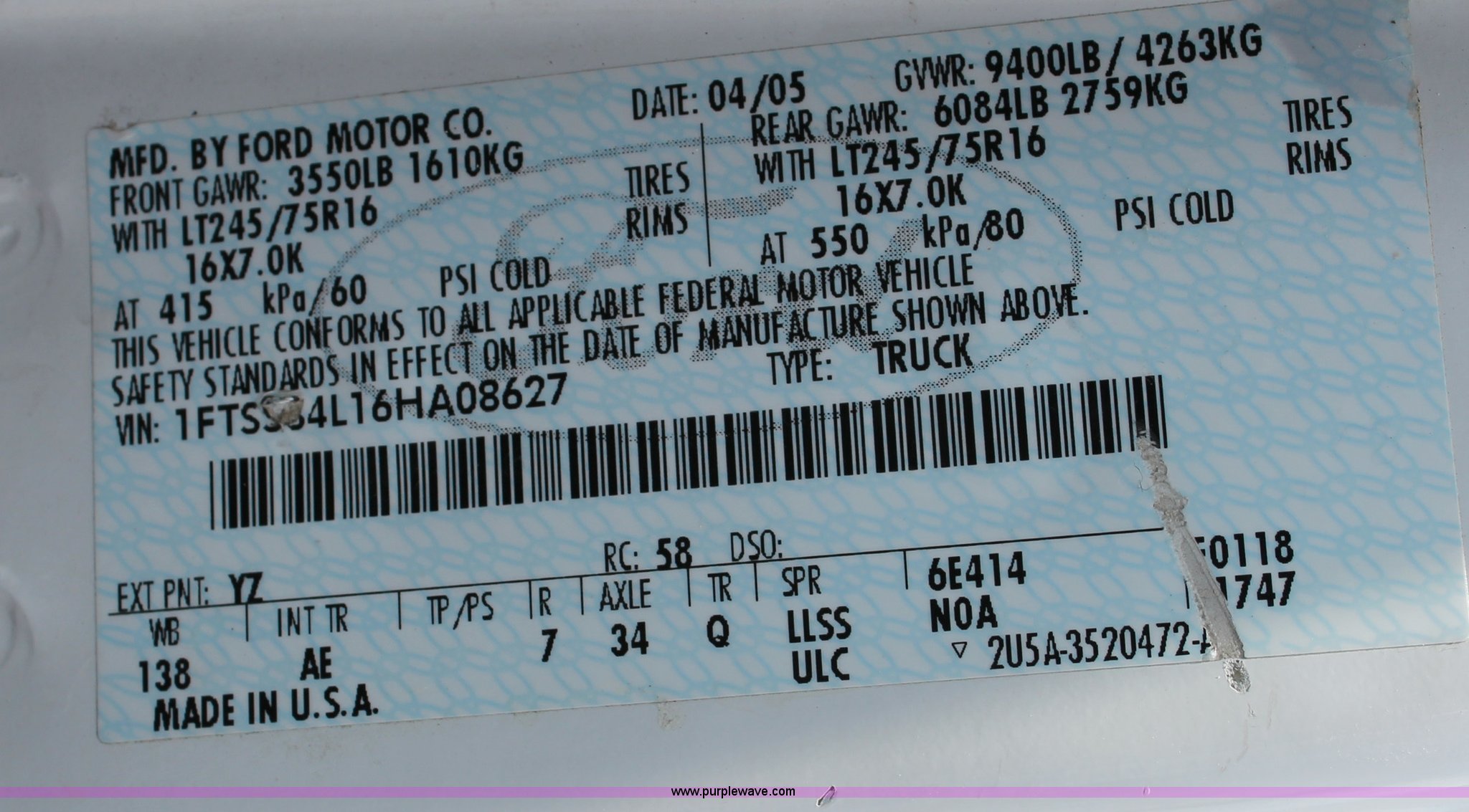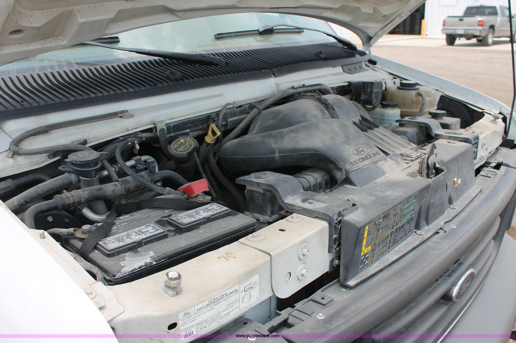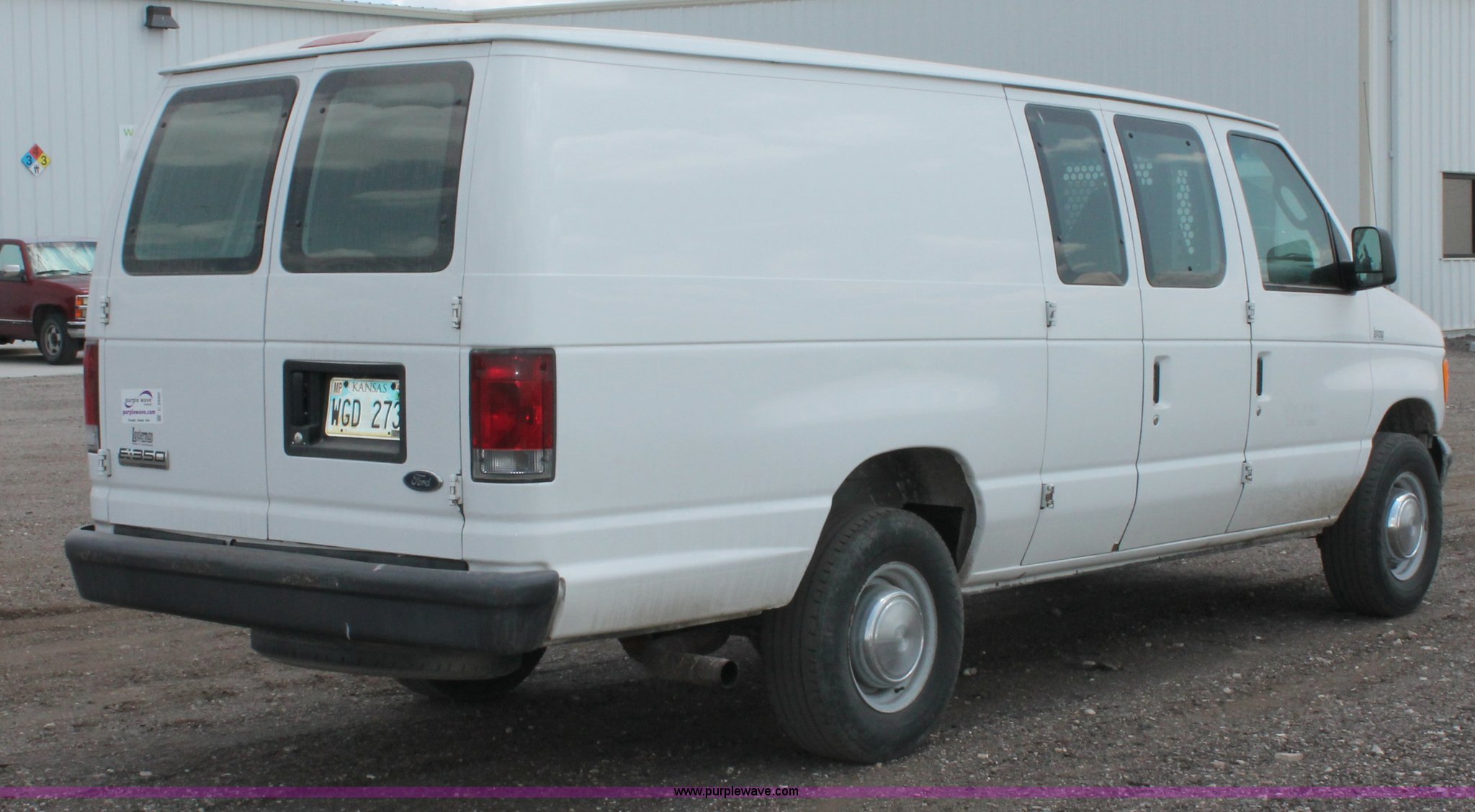 Purple Wave is selling a used Passenger Vehicle in Kansas. This item is a 2006 Ford E350 Super Duty cargo van with the following: 308,654 miles on odometer, 5.4L V8 EFI gas engine, Automatic transmission, AC and heat, Tilt, Cruise, AM/FM, Power windows, locks, and mirrors, Vinyl interior, 245/75R16 tires, Cracked windshield