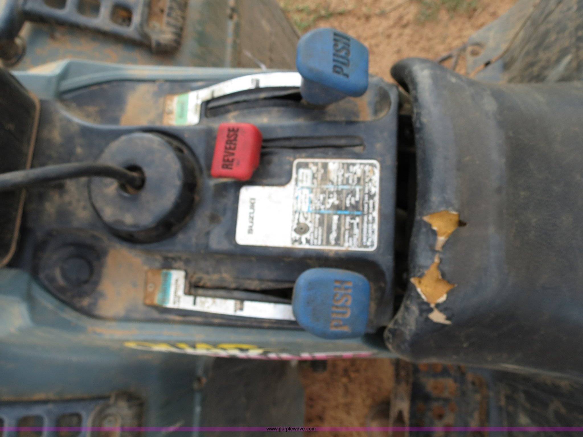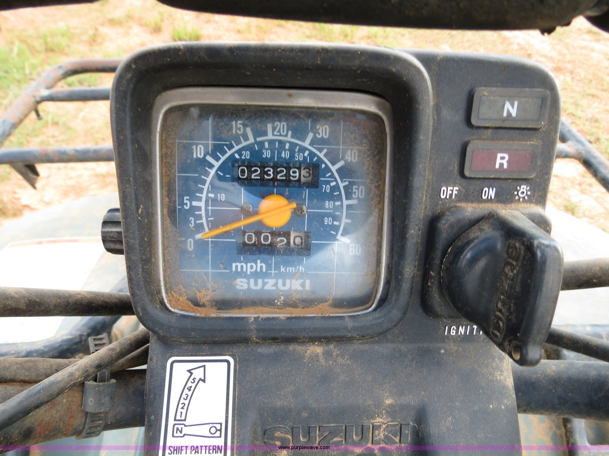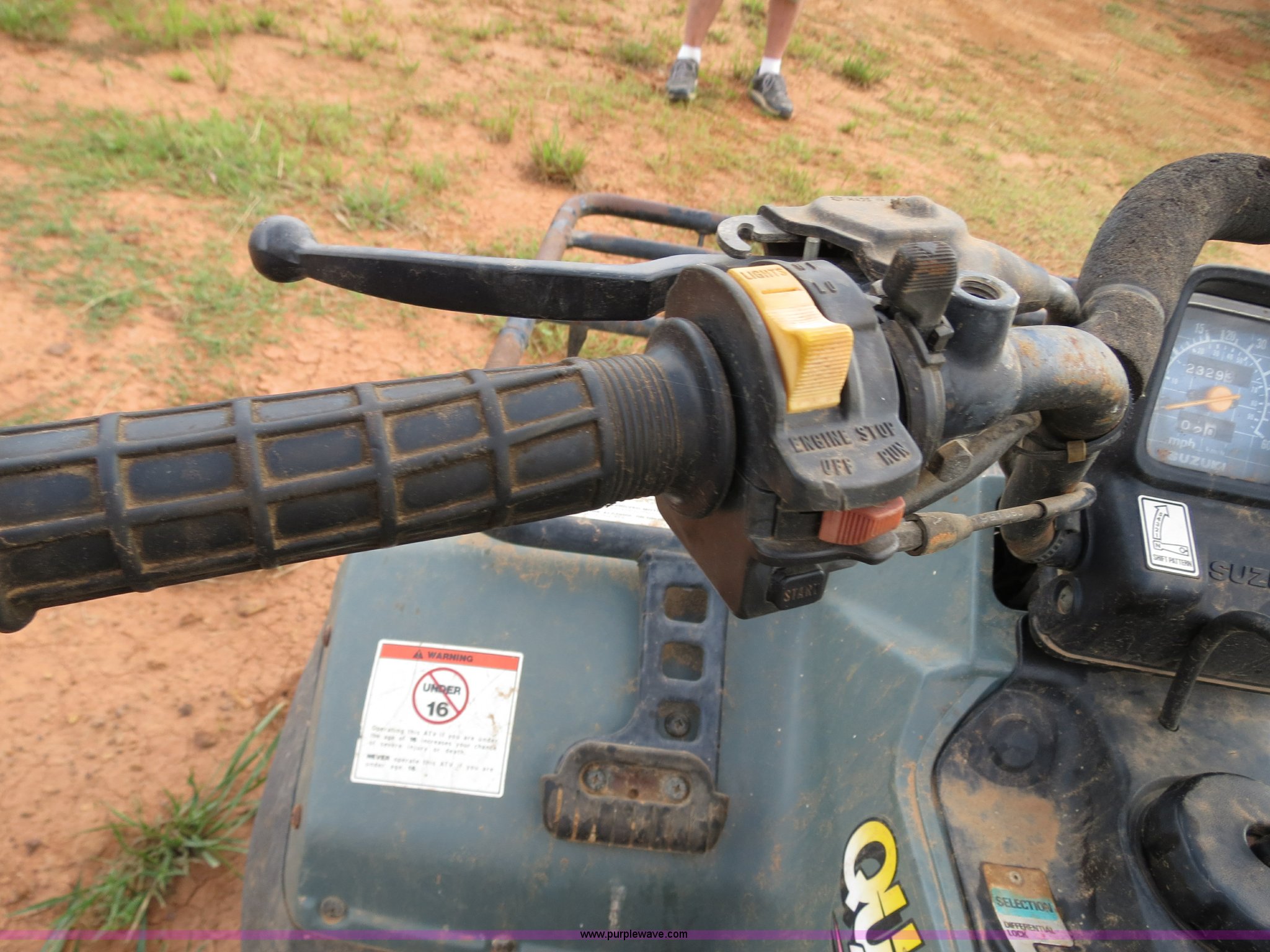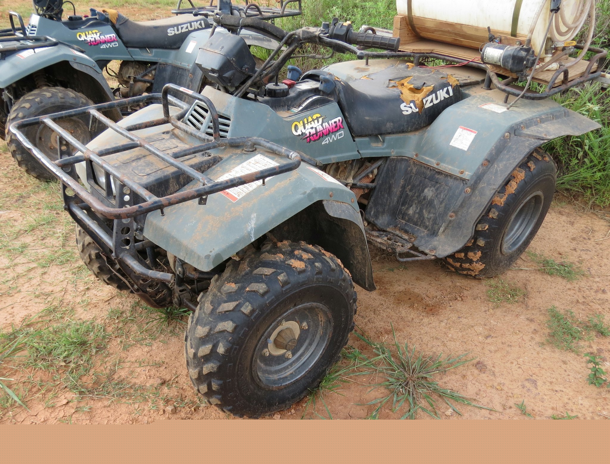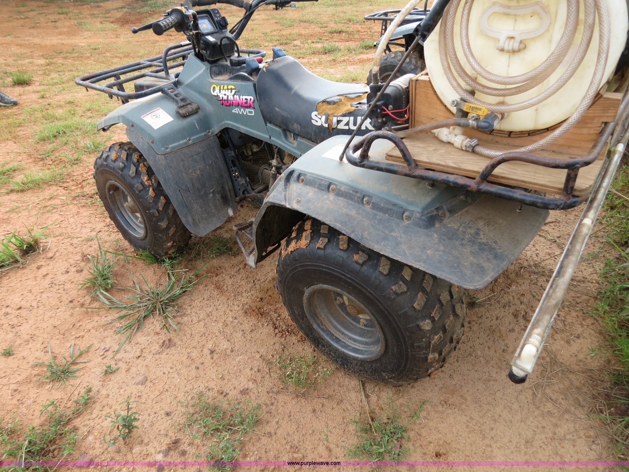 Purple Wave is selling a used ATV in Texas. This item is a 1996 Suzuki 250 Quad Runner ATV with the following: 2,329 miles on odometer, 250 cc four stroke gas engine, Five speed automatic transmission, Three speed sub transmission, Four wheel drive, Front differential lock, Rear ball hitch, AT22x8-10 front tires, AT25x12-10 rear tires, Sprayer not included