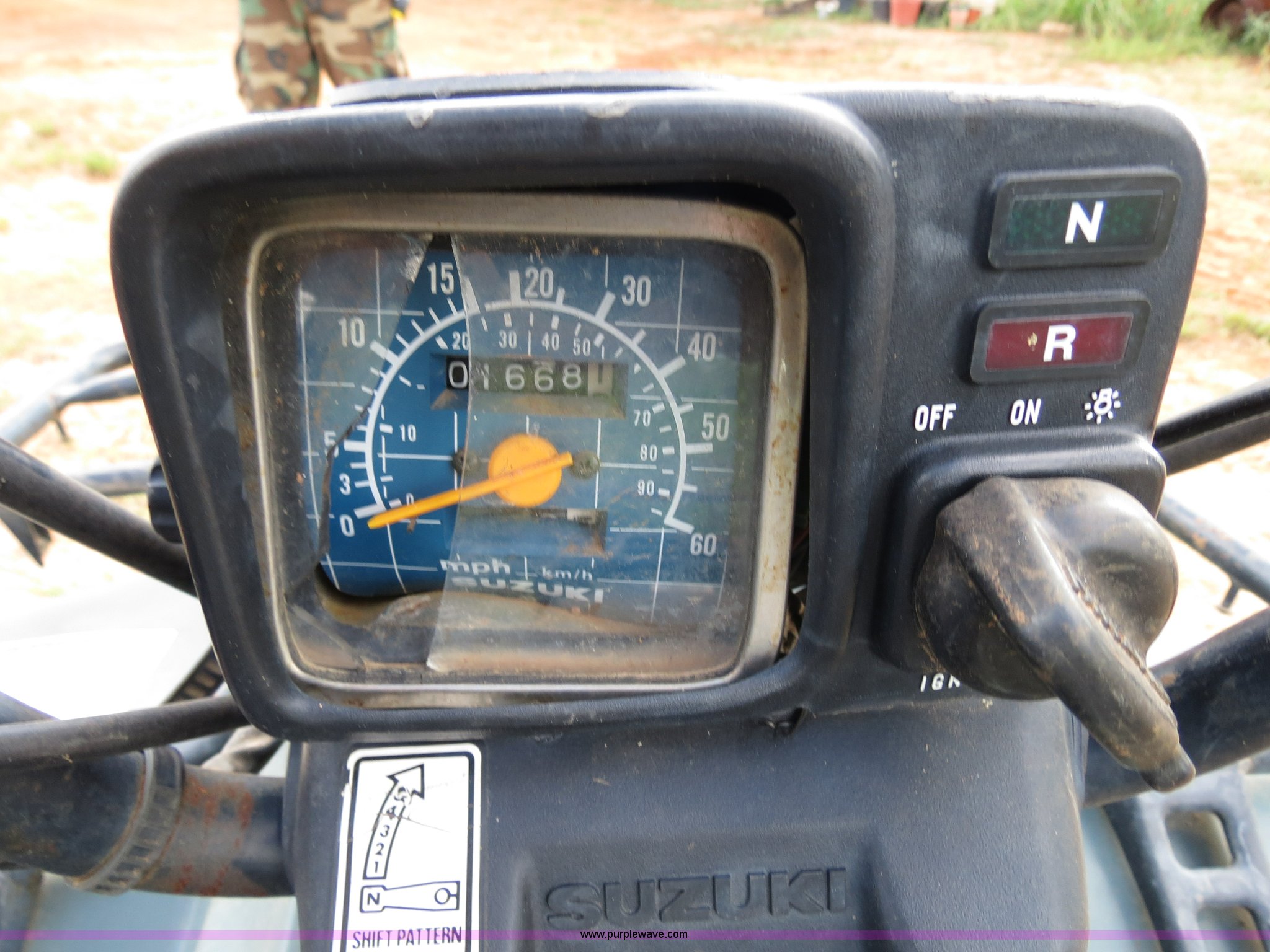 Purple Wave is selling a used ATV in Texas. This item is a 1996 Suzuki 250 Quad Runner ATV with the following: 1,668 miles on odometer, 250 cc four stroke gas engine, Five speed automatic transmission, Three speed sub transmission, Four wheel drive, Front differential lock, Rear pin hitch, AT22x8-10 front tires, AT25x12-10 rear tires