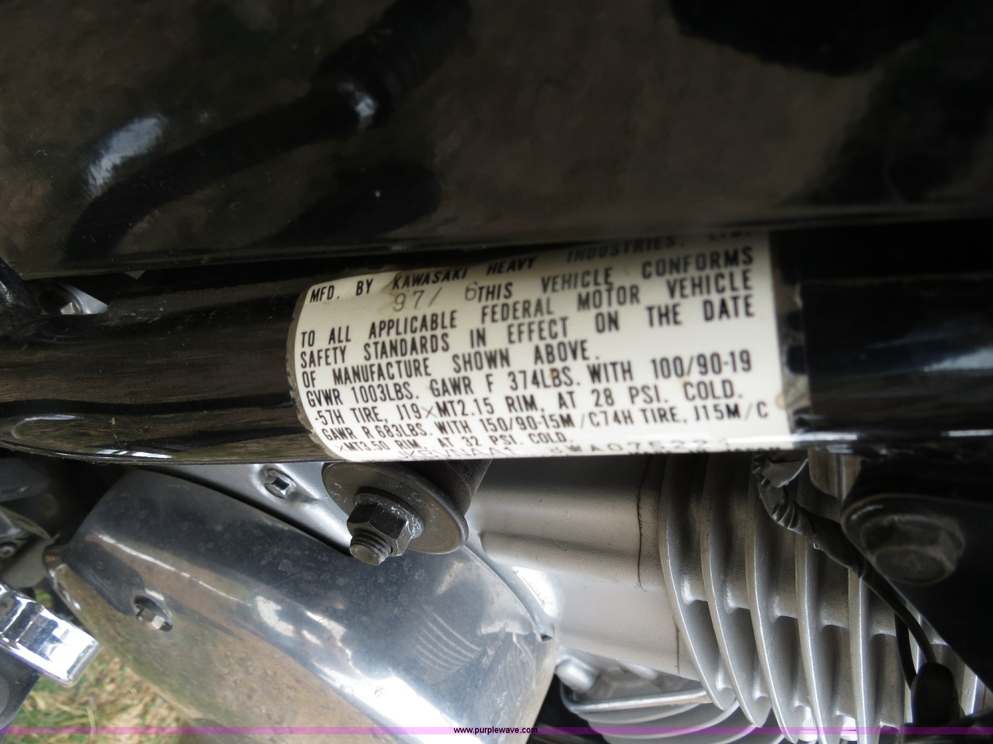 Purple Wave is selling a used Motorcycle in Texas. This item is a 1998 Kawasaki Vulcan 1500 motorcycle with the following: 25,280 miles on odometer, Kawasaki 1500 cc V-twin gas engine, Saddle bags, Front windshield, Custom backrest, Original backrest included, Baffles included, 110/90-19 front tire, Recently replaced, 170/80B15 rear tire