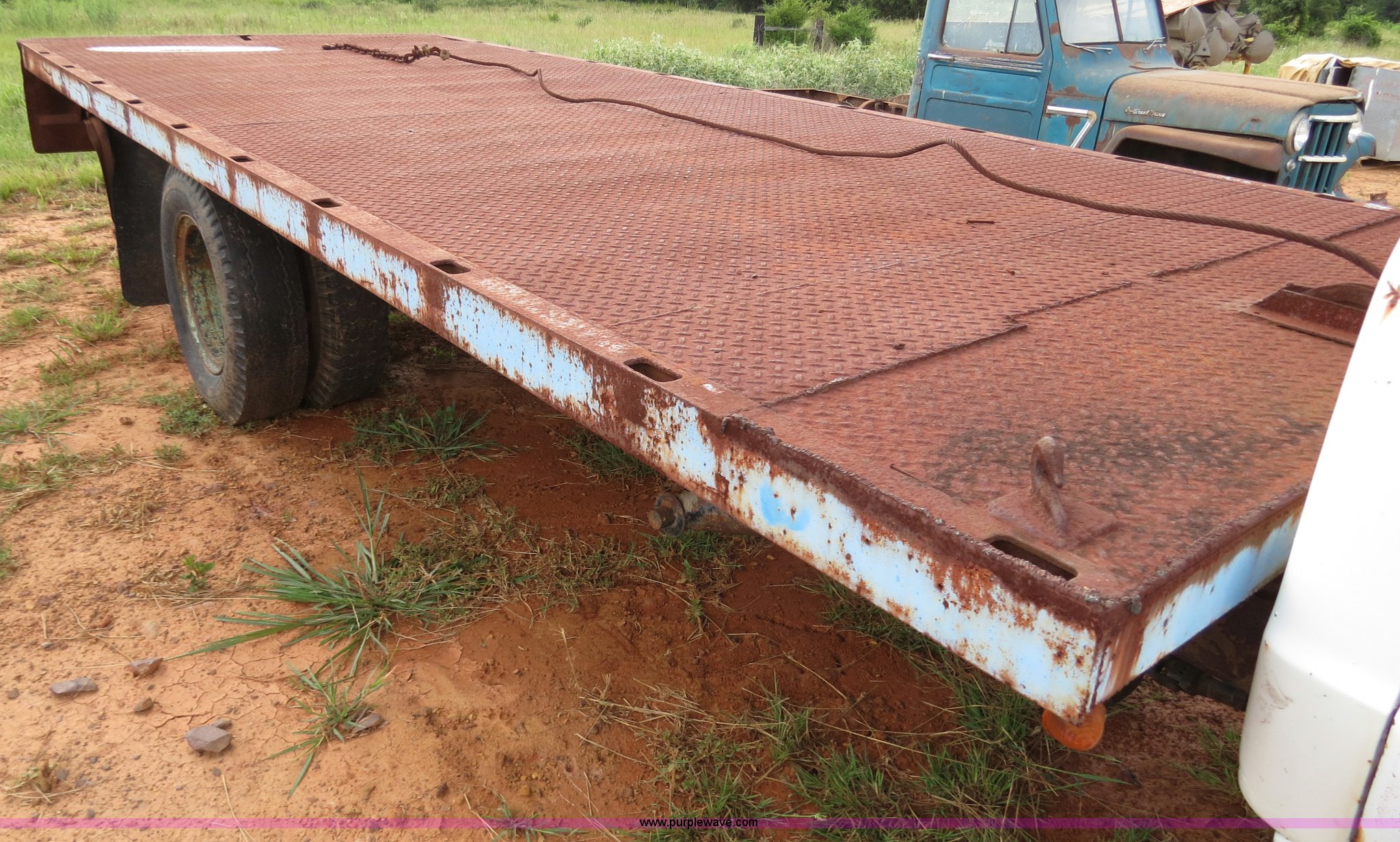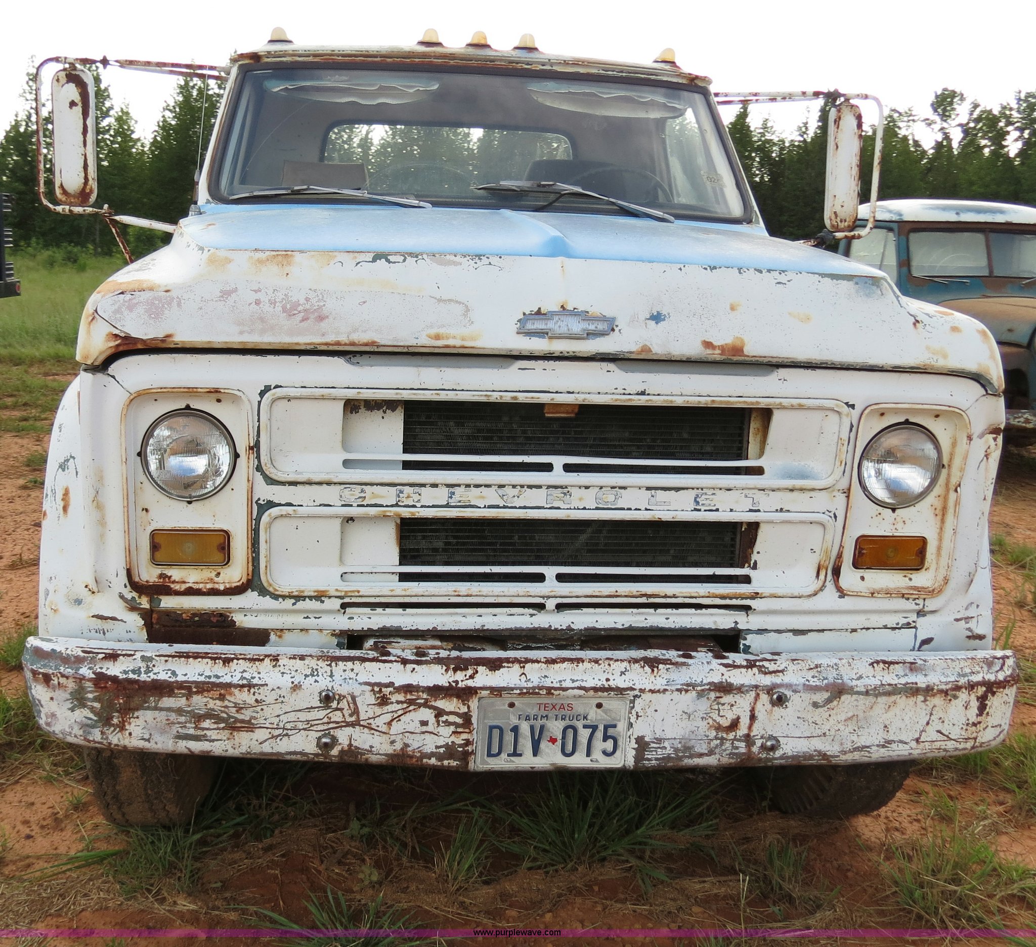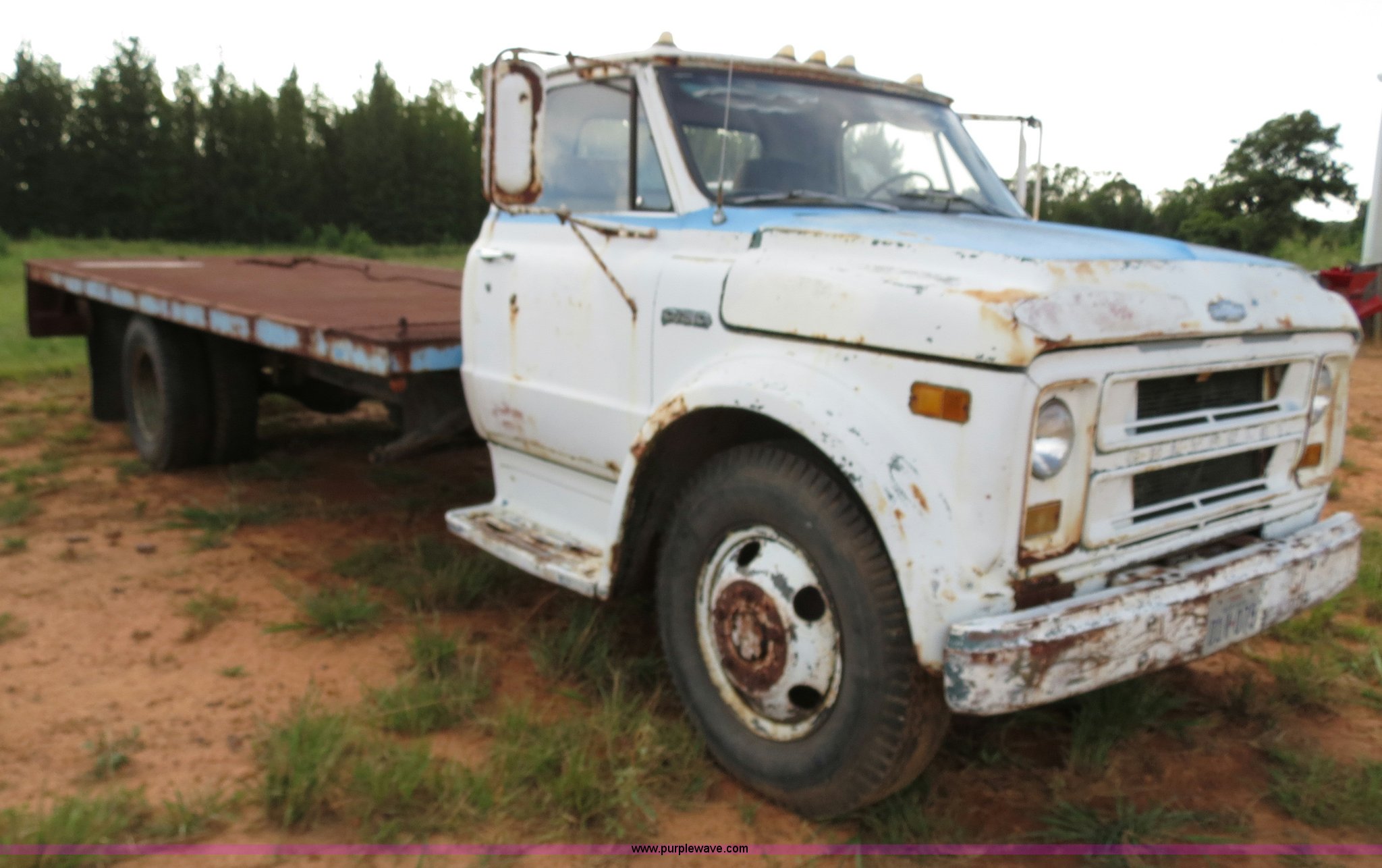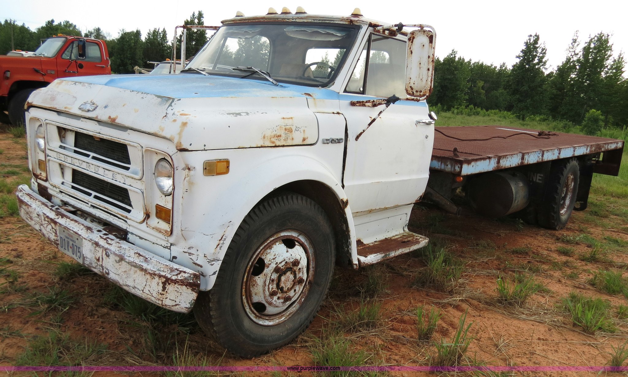 Purple Wave is selling a used Flat Bed Truck in Texas. This item is a 1971 Chevrolet C150 rollback truck with the following: 46,852 miles on odometer, GM V8 gas engine, 5+2 manual transmission, Heater, AM radio, 20' rollback flatbed, 2' hydraulic tail, PTO, 9.00-20 tires