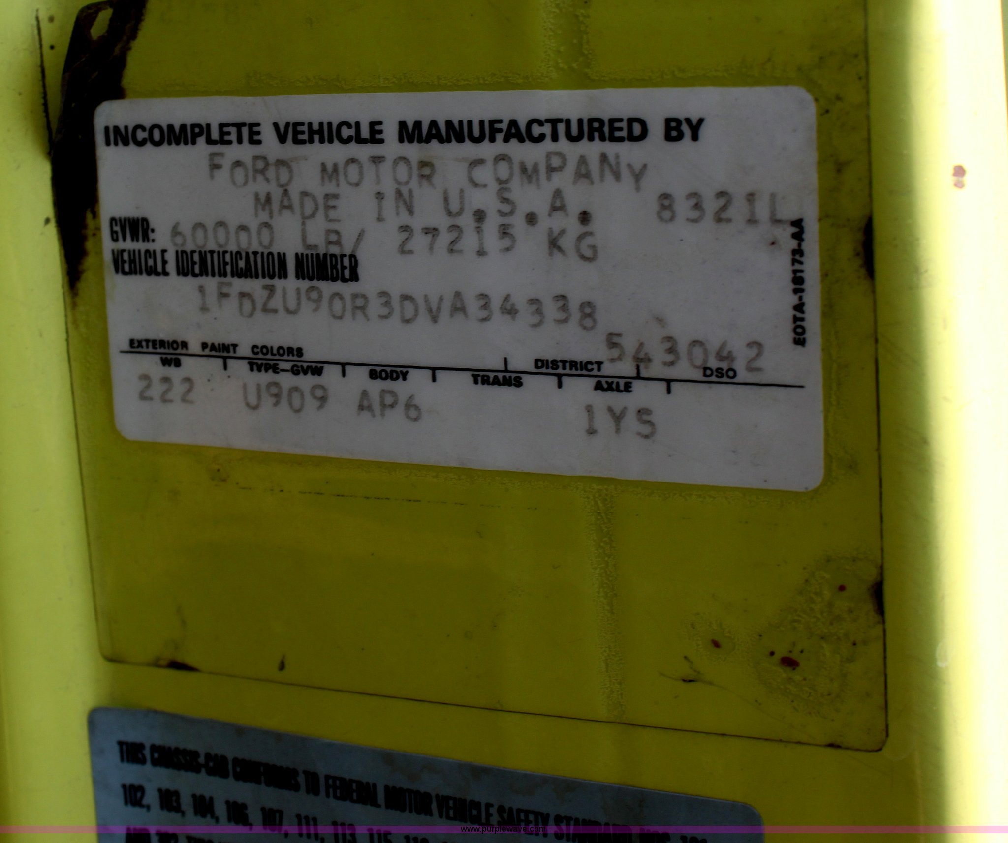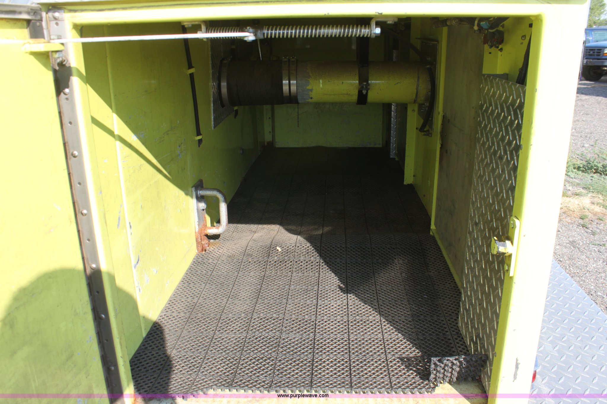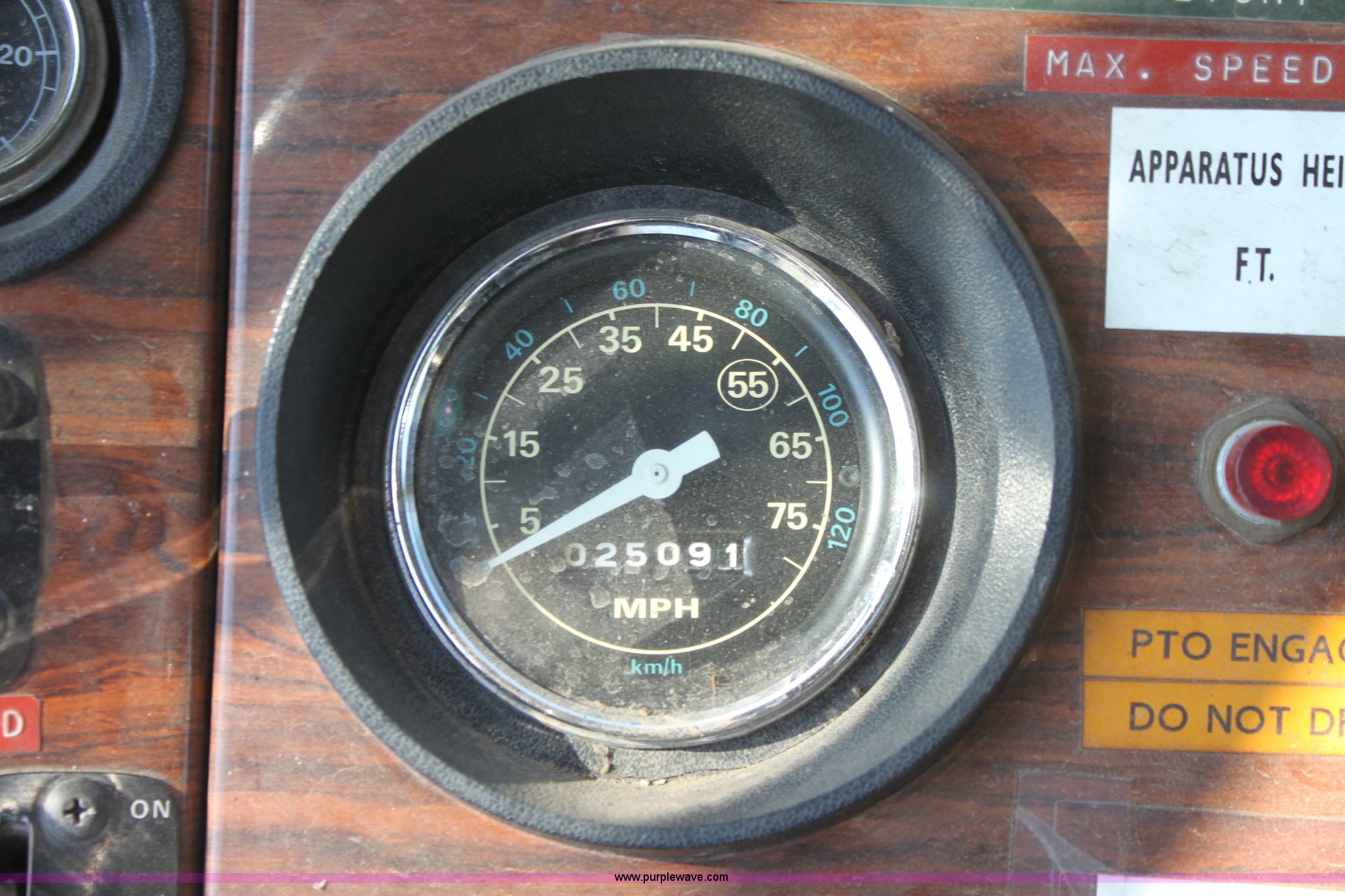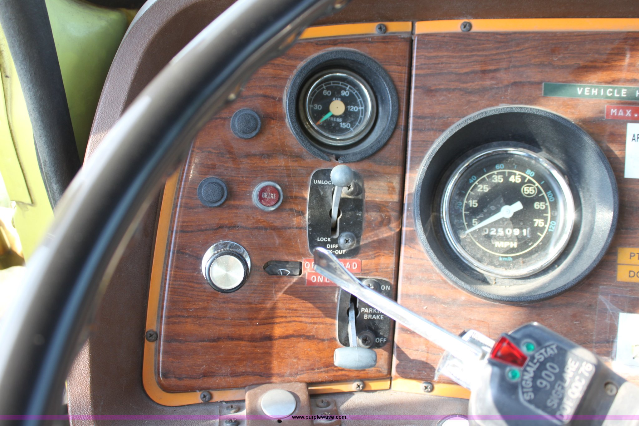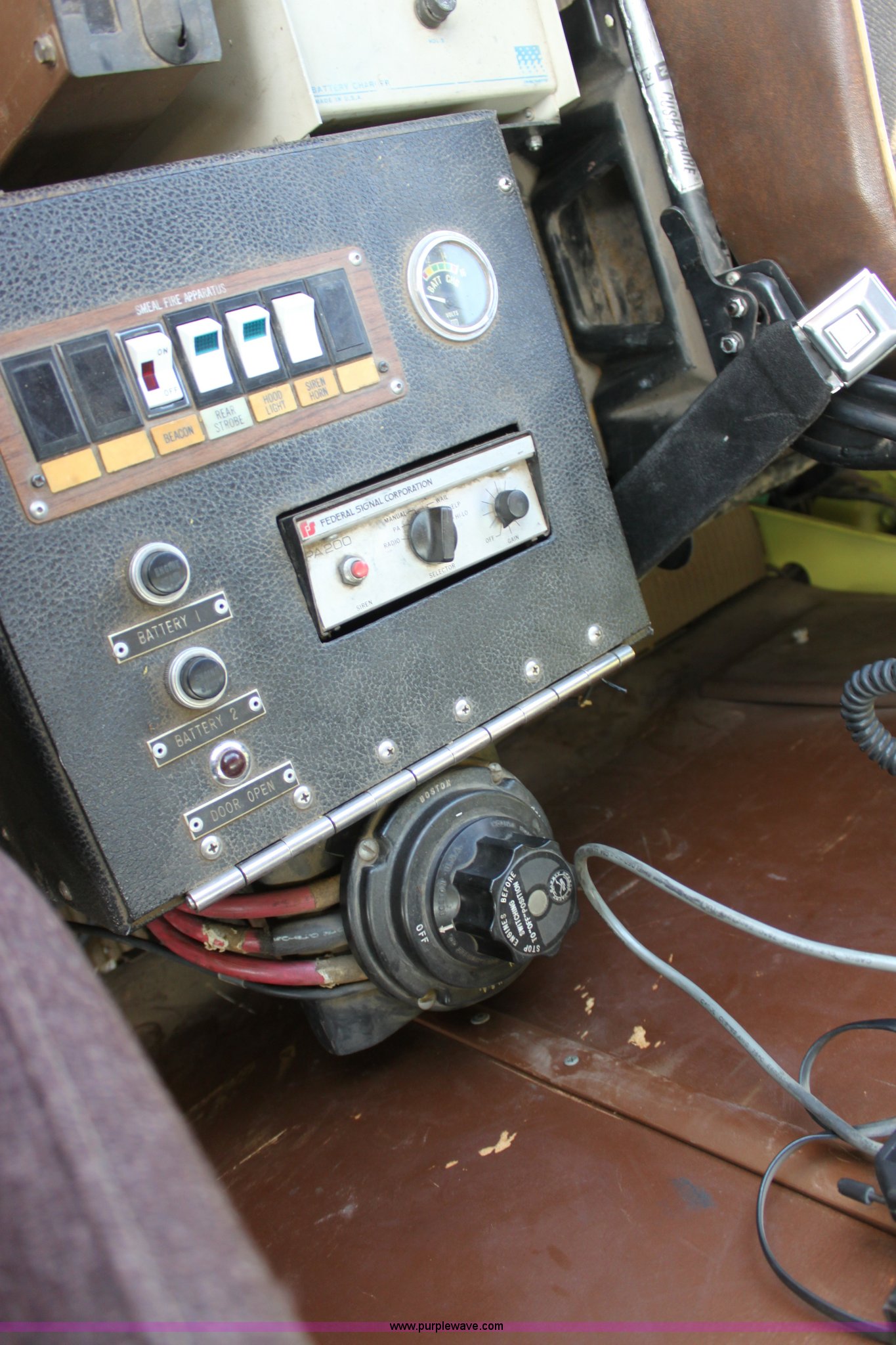 Purple Wave is selling a used Fire Truck or Emergency Vehicle in Kansas. This item is a 1983 Ford 9000 water tender truck with the following: 25,091 miles on odometer, 1,047 hours on meter, Detroit V8 diesel engine, Automatic transmission, Locking differential, Heat, Suspension seat, Firecom intercom system, Federal Signal PA controls, Smeal light controls, Waterous C-3 pump, 500 gpm at 150 PSIG, 6" rear discharge, Chelsea PTO, Air brakes, 12R22.5 tires, GVWR 60,000 lbs, FAWR 16,000 lbs, RAWR 22,000 lbs