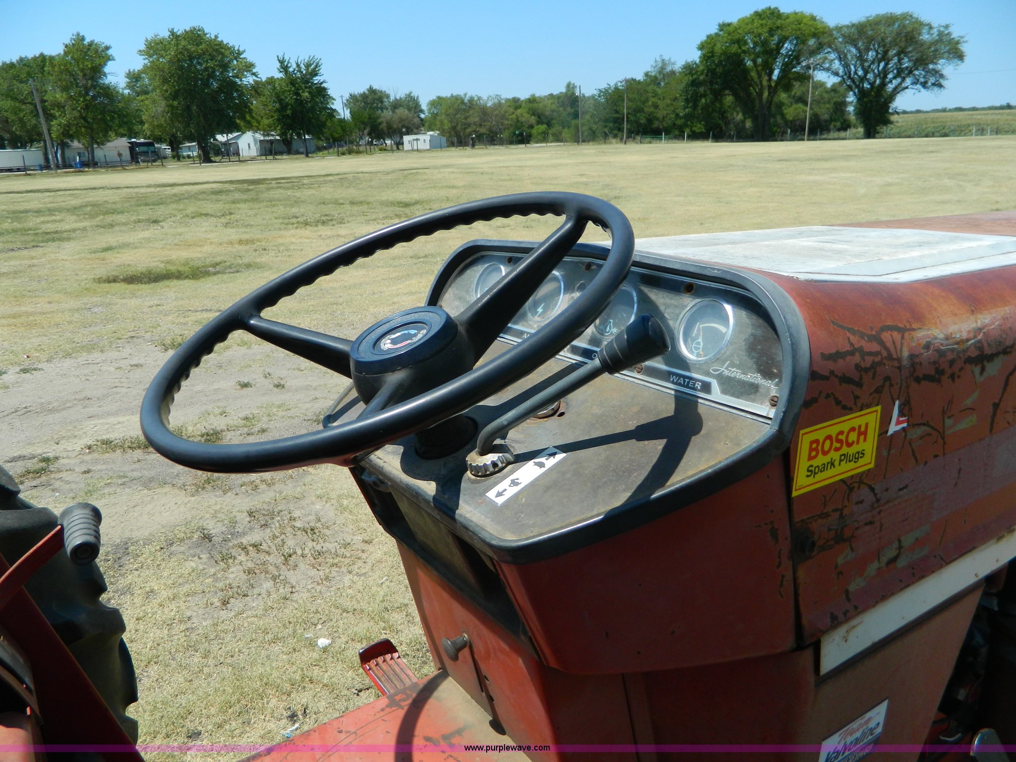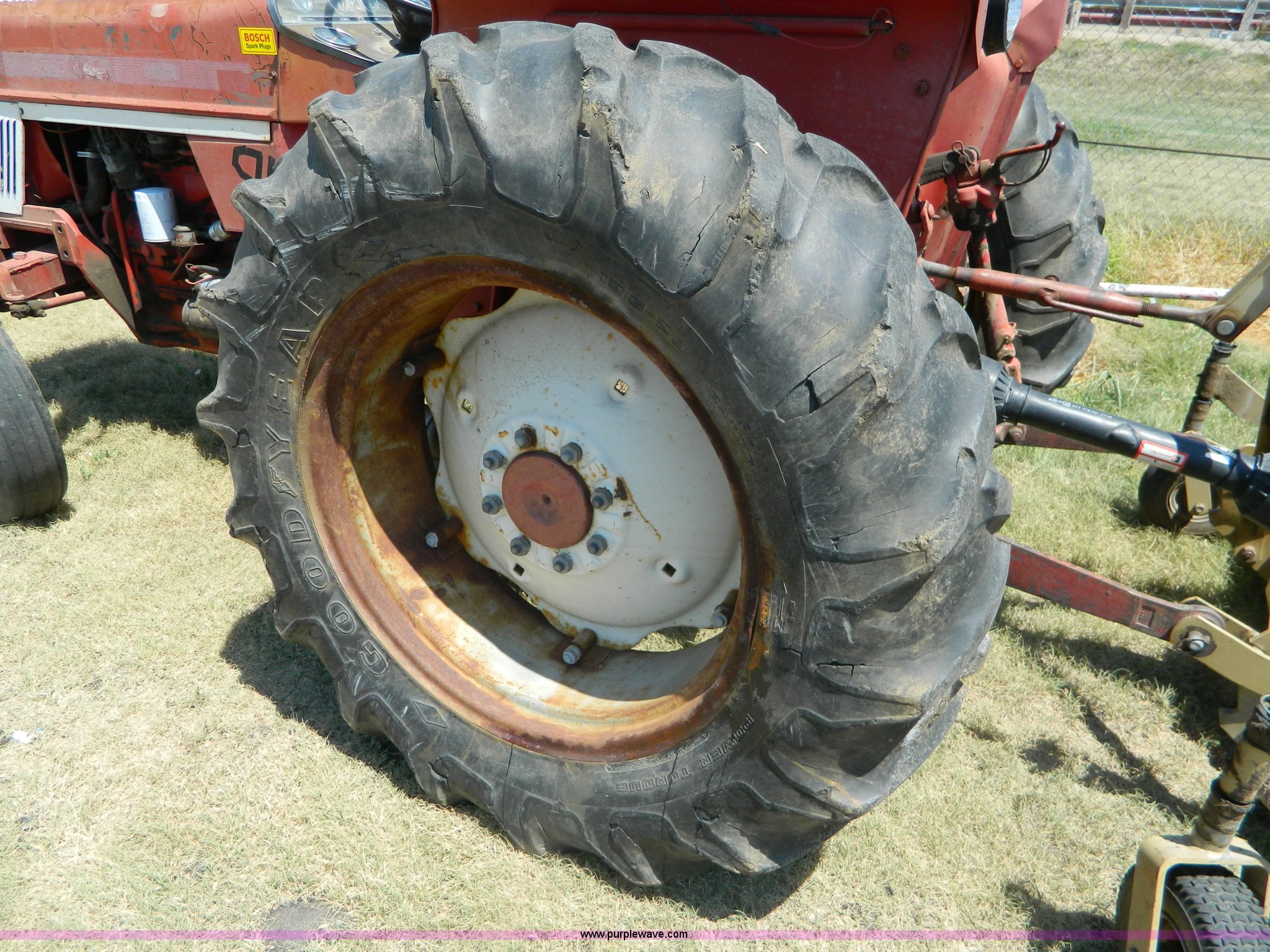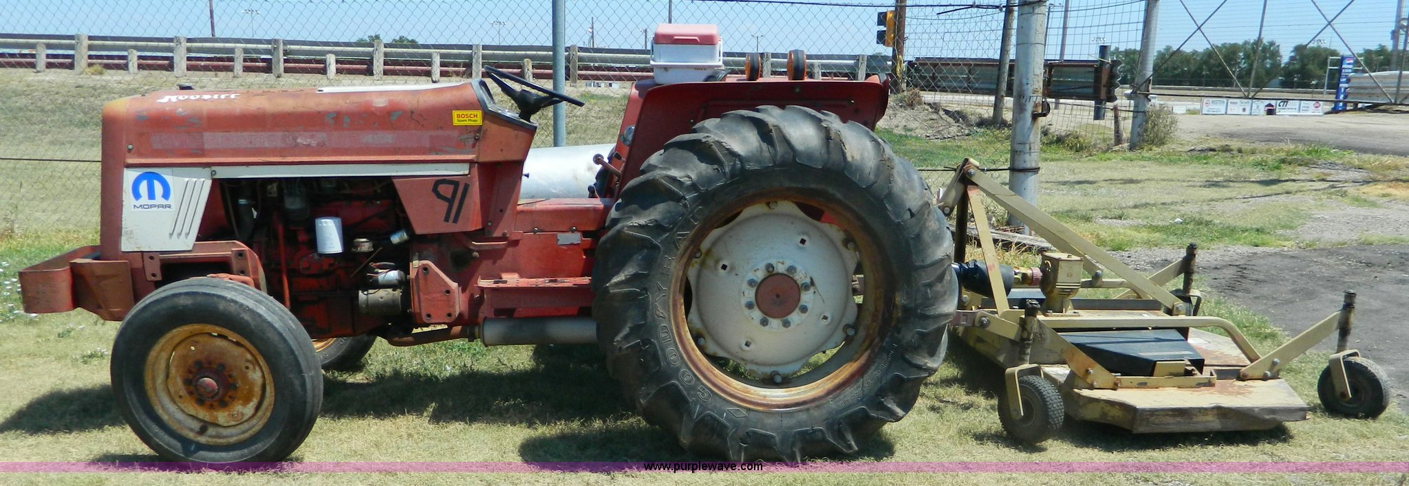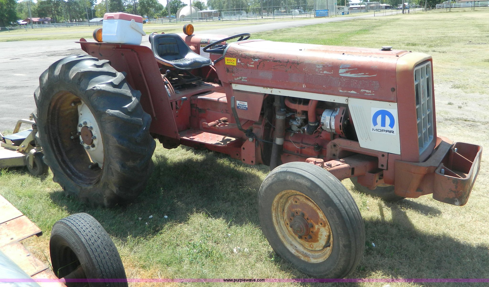 Purple Wave is selling a used Tractor in Kansas. This item is a 1976 International 464 tractor with the following: 1,348 hours on meter, International four cylinder gas engine, Serial 1662812R91, Manual transmission, 8F-4R gears, Spring seat, Three point, 540 PTO, One rear hydraulic remote, Land Pride FDR1572 rotary mower included, Serial 234956, 6.00-16 front tires, 13.6-28 rear tires, Serial 2210160U107215