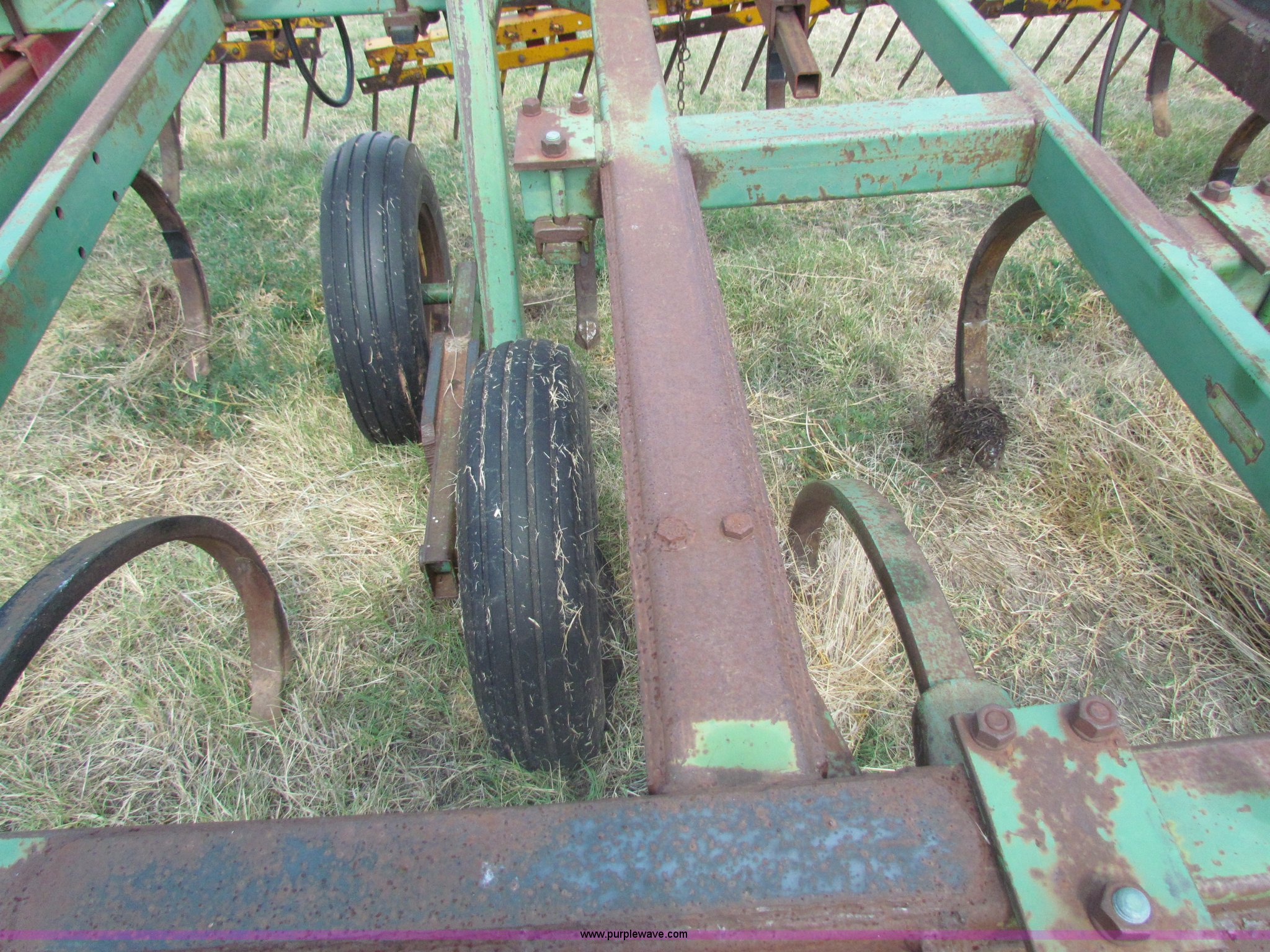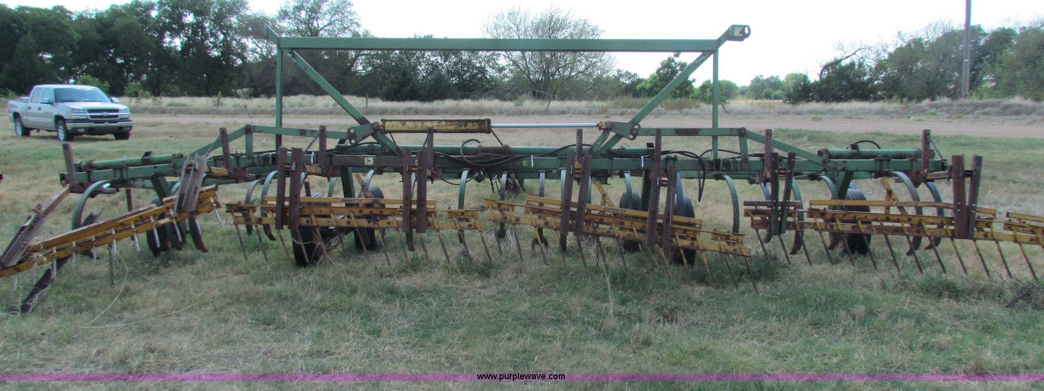 Purple Wave is selling a used Chisel in Oklahoma. This item is a John Deere E1600 chisel with the following: Approx. 26', Folding wings, (3) sections, Coontz harrows, Serial 007684N
