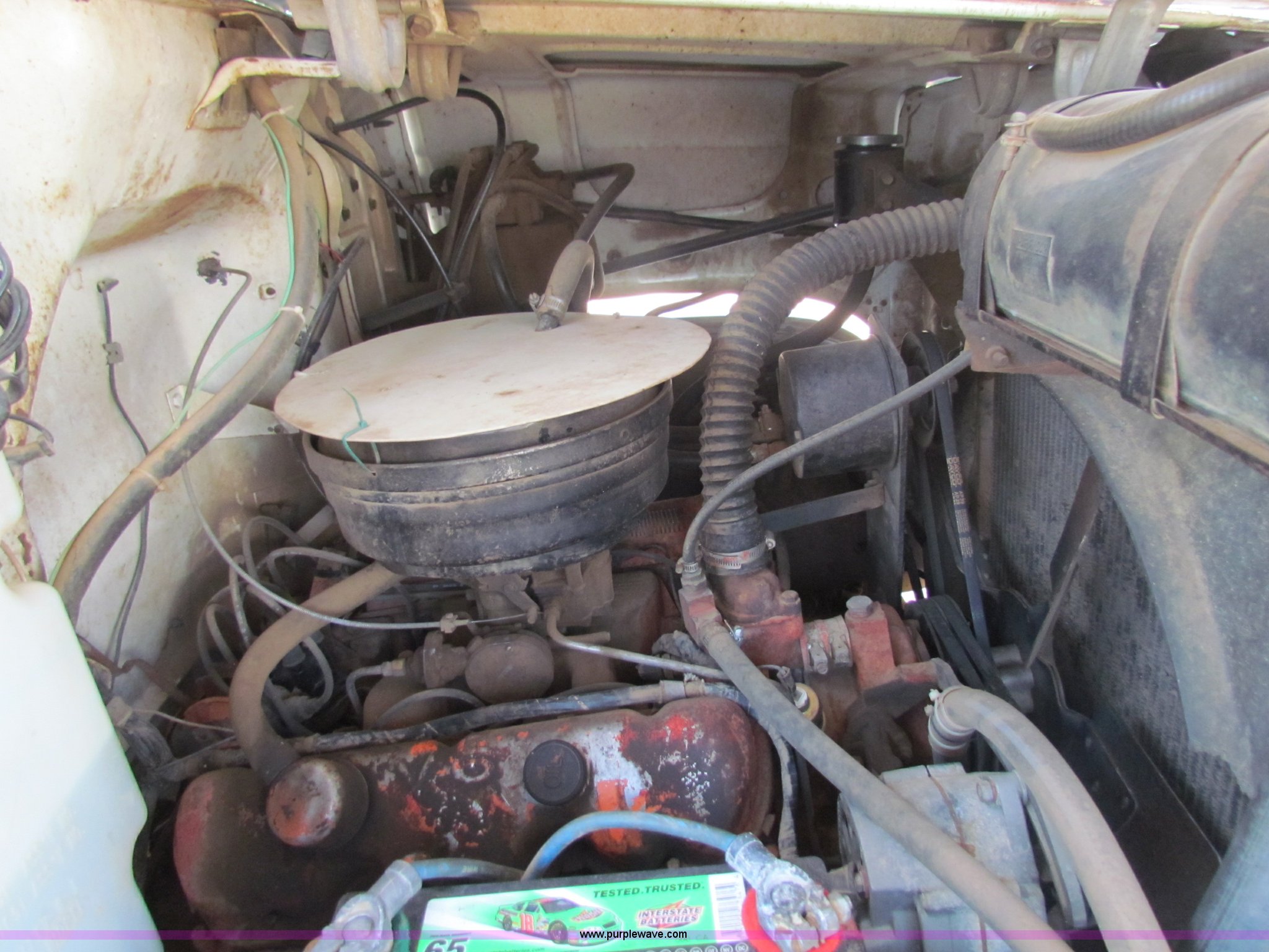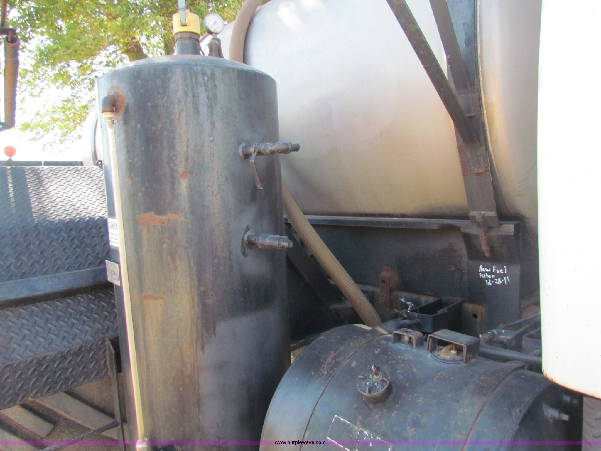 Purple Wave is selling a used Applicator Truck in Kansas. This item is a 1974 GMC Big Wheels 7500 sprayer with the following: 50,440 miles on odometer, 3,602 hours on meter, 432 CID V6 gas engine, Five speed manual transmission, Two speed rear end, Heat, Tilt steering wheel, Windshield wipers and washers, Air horns, 53' break away booms, Hydra-float, Stainless steel booms, (3) sets of nozzles, Setup for 40" centers, Can be setup for 20" centers, 80 gallon foam tank, Foam markers, Air lines need replaced, Chemical inductor, 1,200 gallon stainless steel tank, Fill valves have been replaced, Dual 37 gallon fuel tanks, Air brakes, 48x25.00 front tires, 66x43.00-25 rear tires, Recently replaced clutch, Recently replaced hinge pins and ball joints on booms, (5) extra belts for PTO pump, New, Rear seal in transmission has been replaced, Rear differential seal has been replaced, One boom cylinder leaks, Serial 74144299