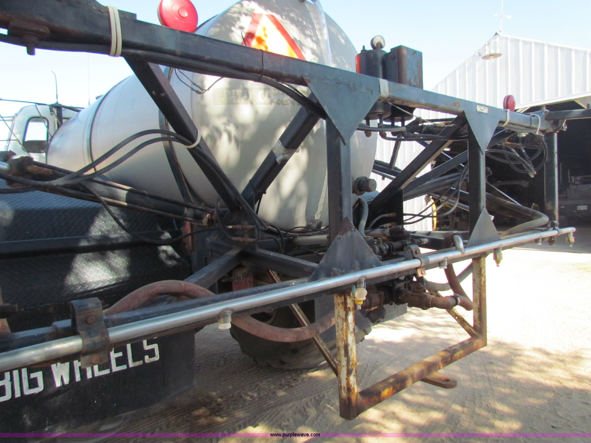 1974 GMC Big Wheels 7500 sprayer. 50,440 miles on odometer, 3,602 hours on meter, 432 CID V6 gas engine, Five speed manual transmission Two speed rear end, Heat, Tilt steering wheel, Windshield wipers and washers, Air horns, 53' break away booms Hydra-float, Stainless steel booms, (3) sets of nozzles, Setup for 40" centers Can be setup for 20" centers, 80 gallon foam tank, Foam markers Air lines need replaced, Chemical inductor, 1,200 gallon stainless steel tank Fill valves have been replaced, Dual 37 gallon fuel tanks, Air brakes, 48x25.00 front tires, 66x43.00-25 rear tires, Recently replaced clutch, Recently replaced hinge pins and ball joints on booms, (5) extra belts for PTO pump New, Rear seal in transmission has been replaced, Rear differential seal has been replaced, One boom cylinder leaks, Serial 74144299. View equipment video. Shipping quotes available. 17136 SW 60th. Cunningham, KS 67035