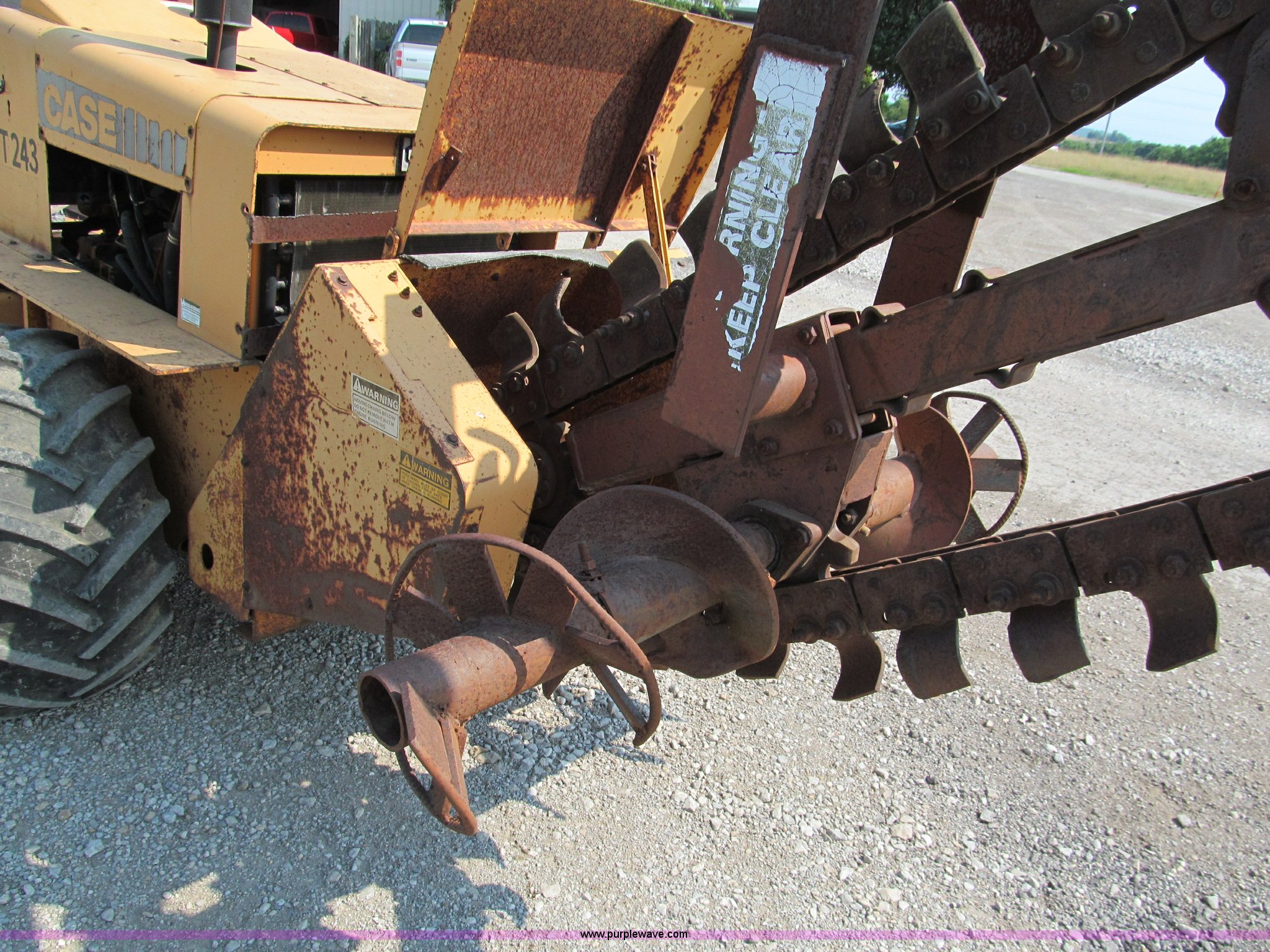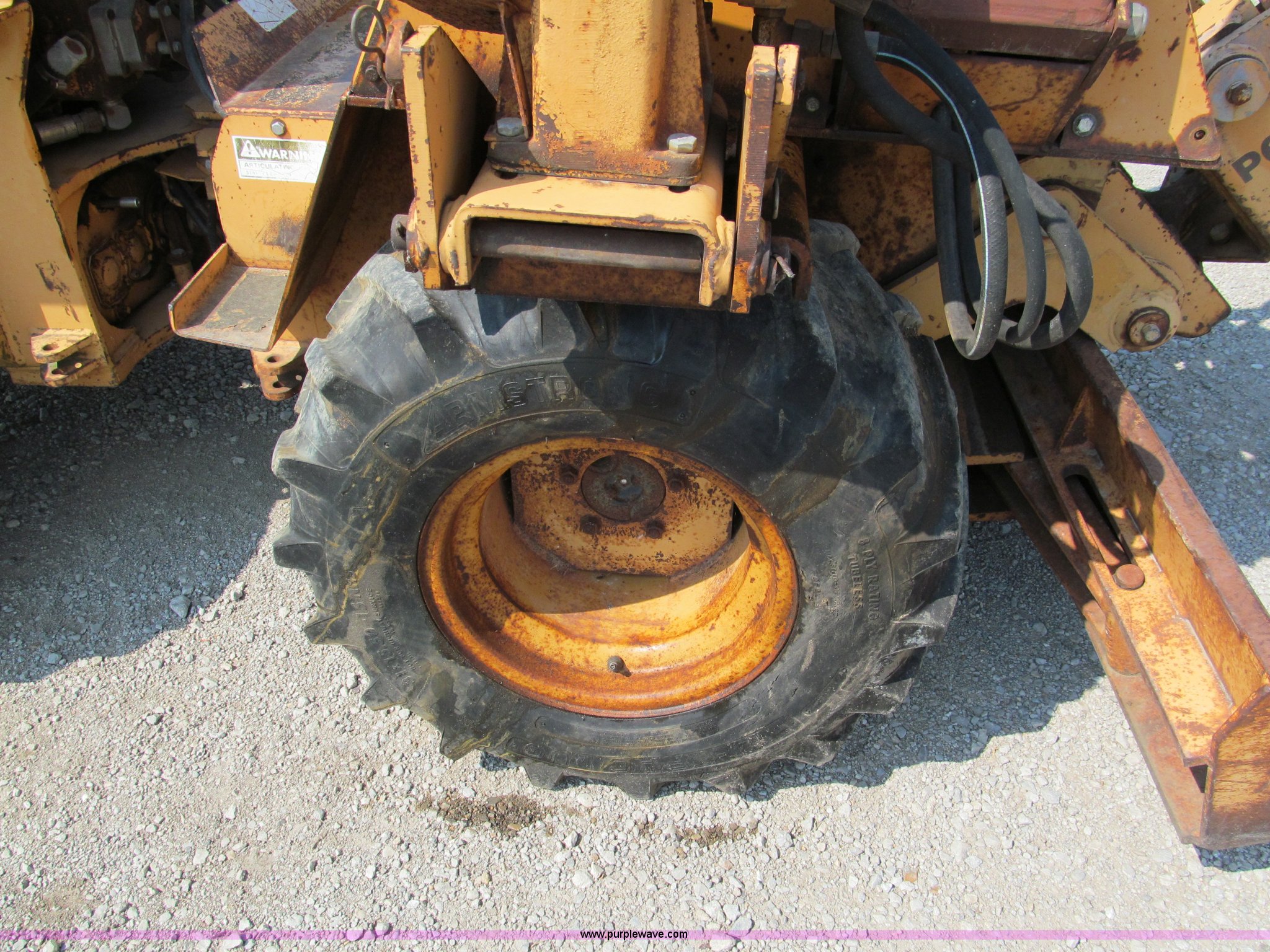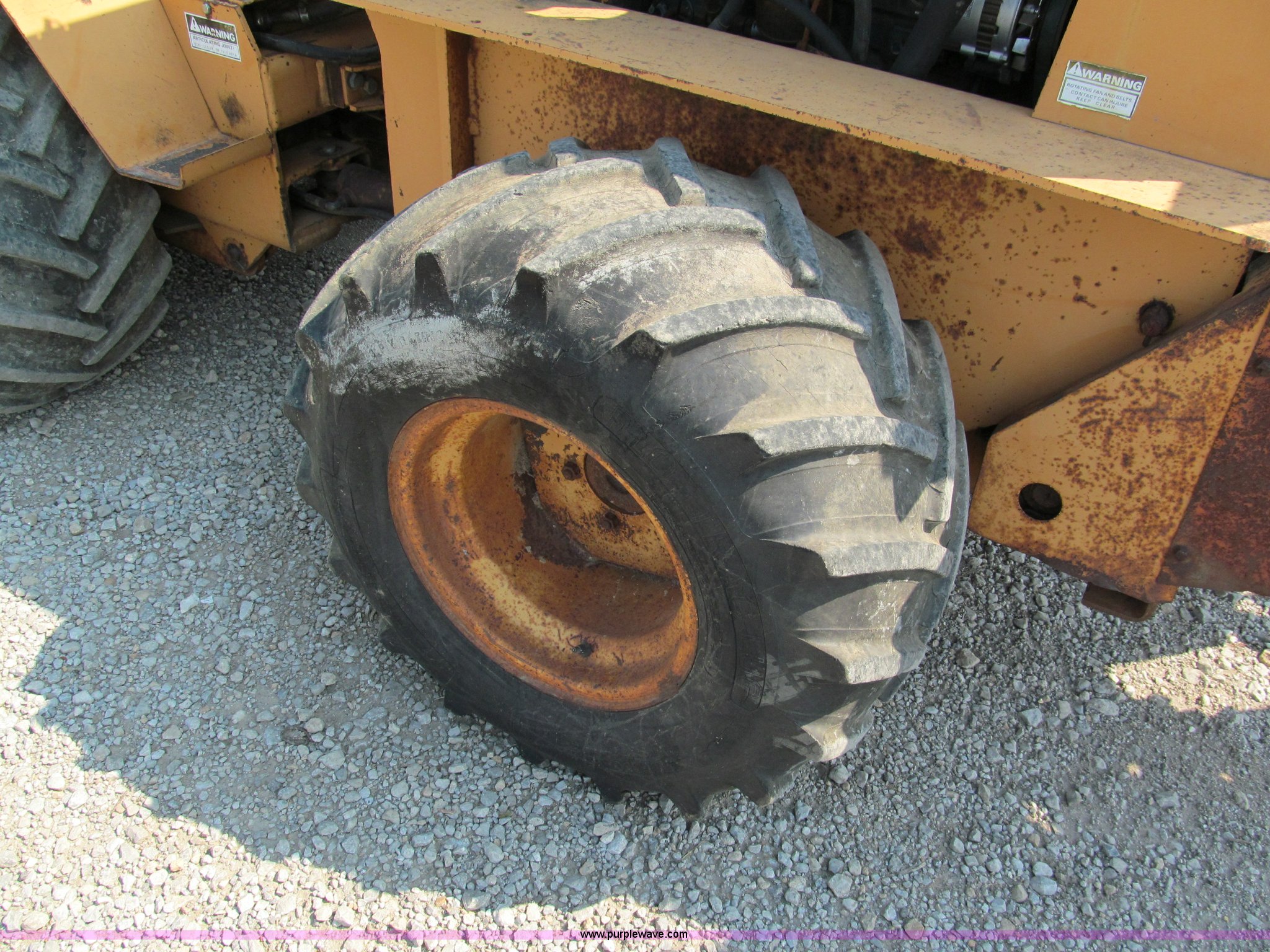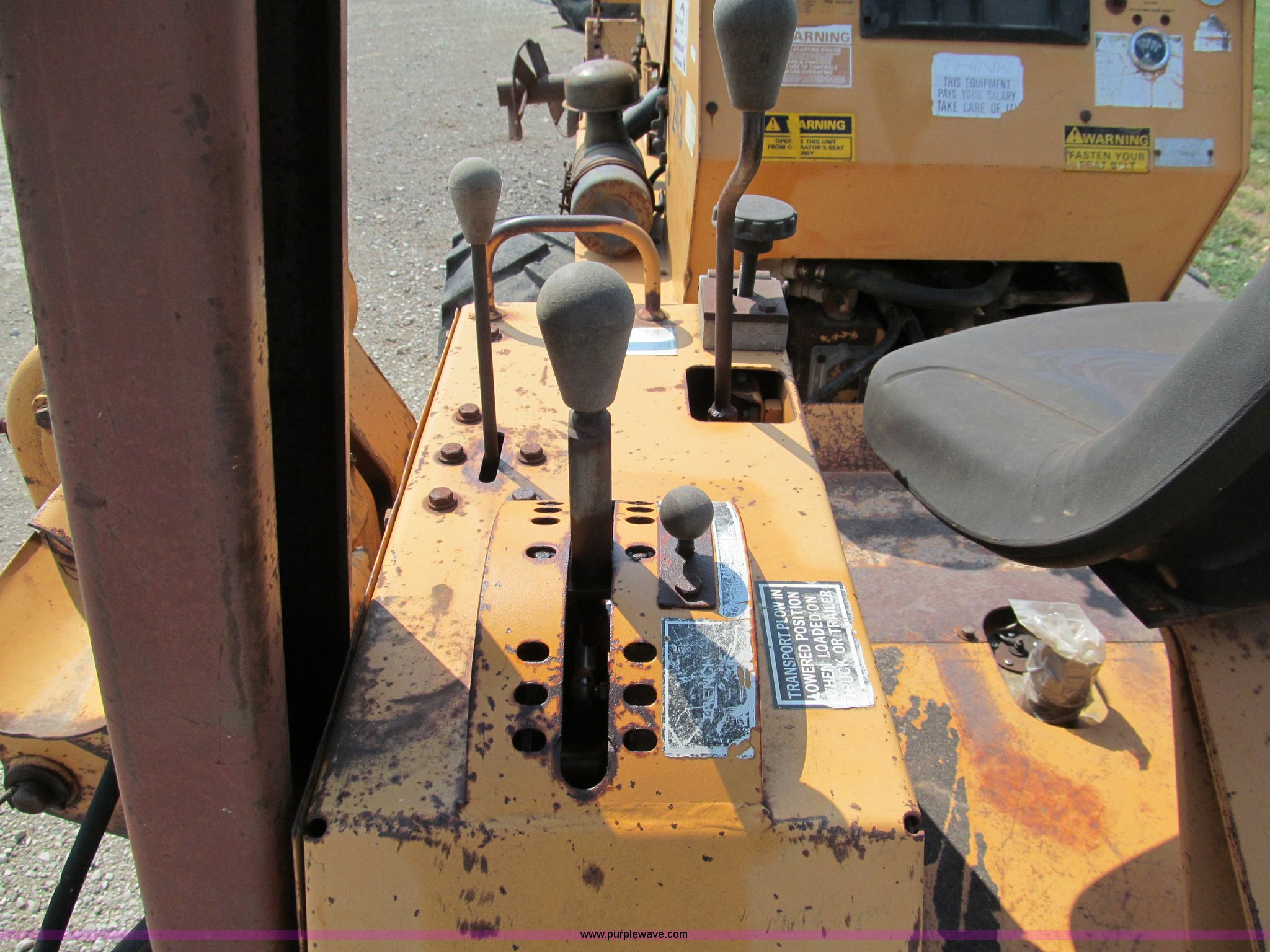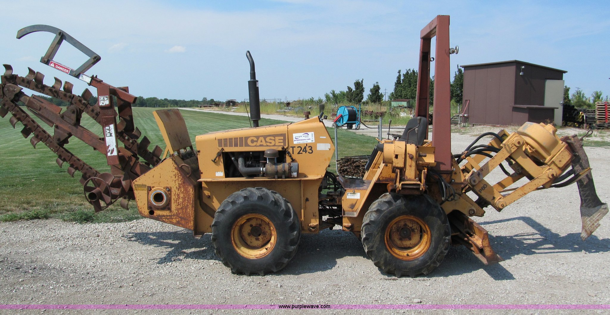 Purple Wave is selling a used Trencher or Rock Saw in Missouri. This item is a 1990 Case DH4B articulating trencher with the following: Four cylinder diesel engine, Four wheel drive, ROPS, 72" trencher boom, Set-up for 6"W, Extra teeth that will dig 1'W, Blocks included, Crumbers on both sides, 4' dig depth, Four-way 6' back fill blade, 24"L blade on vibratory plow, Directional, 31-15.50-15 tires, 5,000 lbs. base operating weight, Recently replaced muffler, seat, alternator, and bearing in stinger, Serial JAF0049201