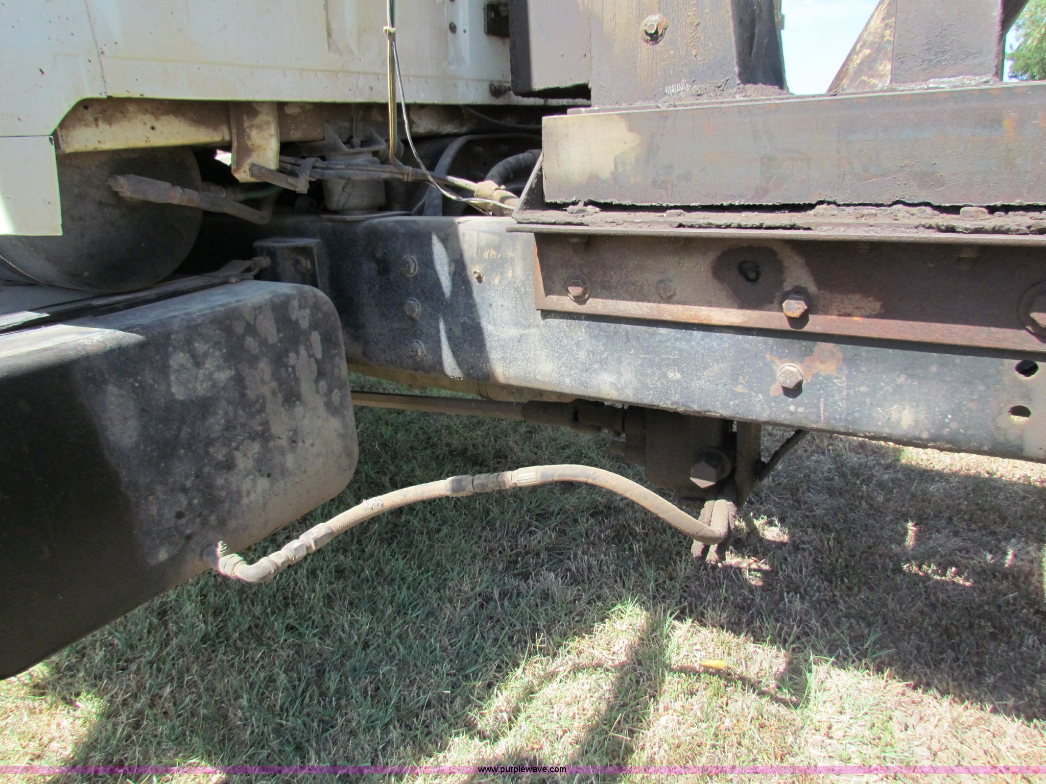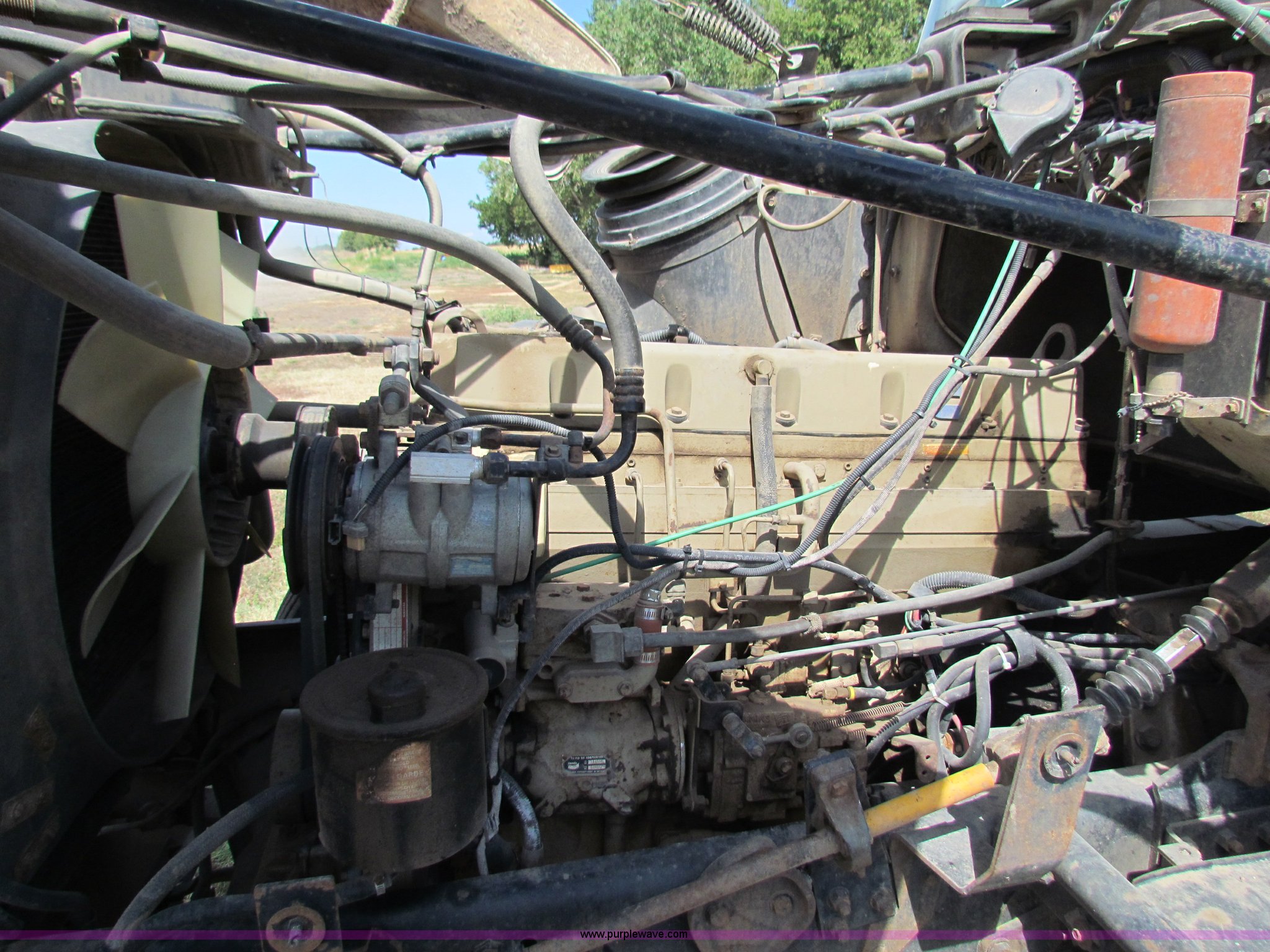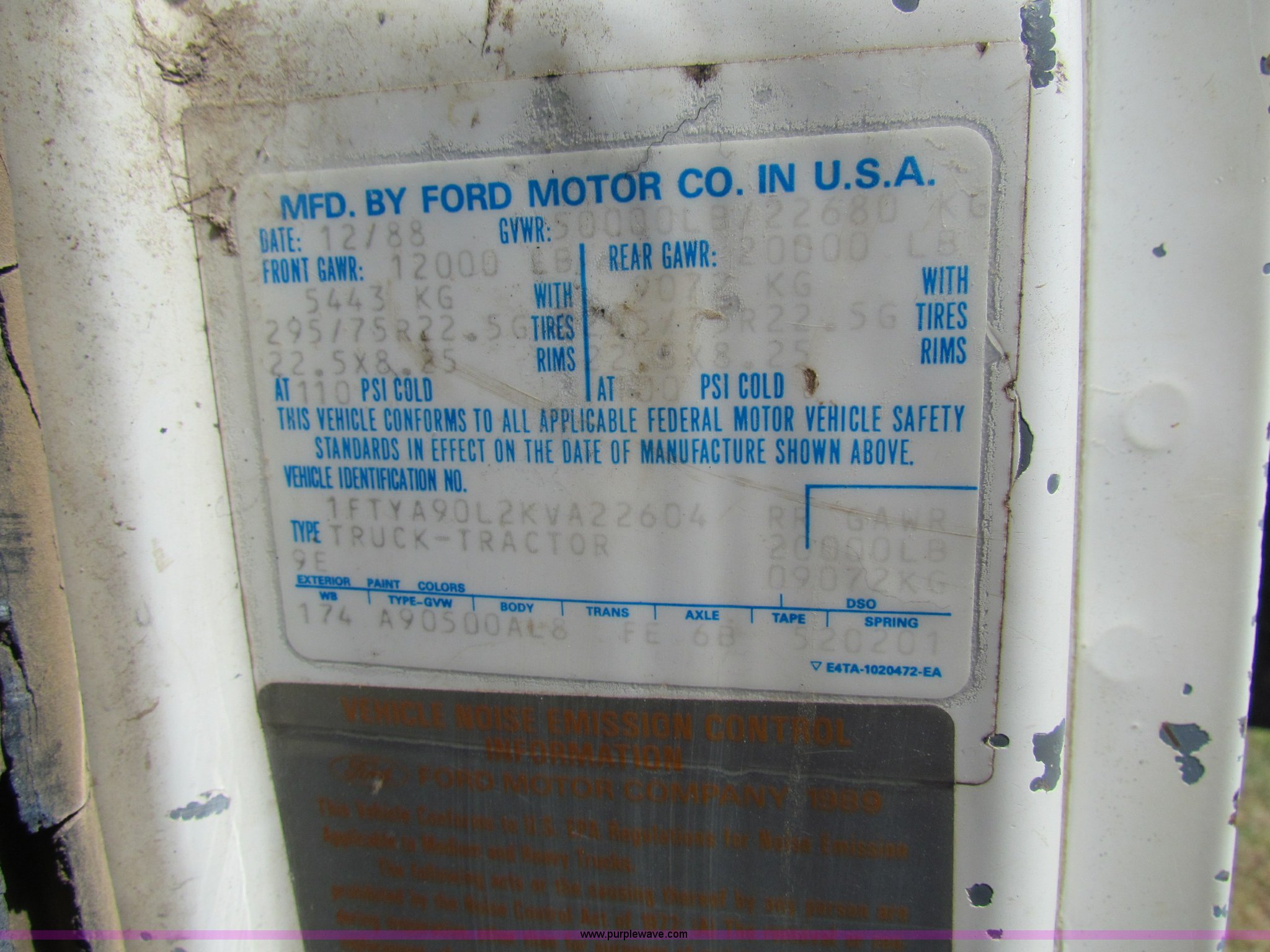 Purple Wave is selling a used Construction Dump Truck in Kansas. This item is a 1989 Ford L9000 dump truck with the following: 659,666 miles on odometer, Cummins L10 diesel engine, 300 HP, Nine speed manual transmission, Twin screw, AC and heat, AC need charged, 13' steel dump bed, Air latch end gate, Air brakes, 11R22.5 front tires, 275/80R24.5 rear tires, Rebuilt lift cylinders