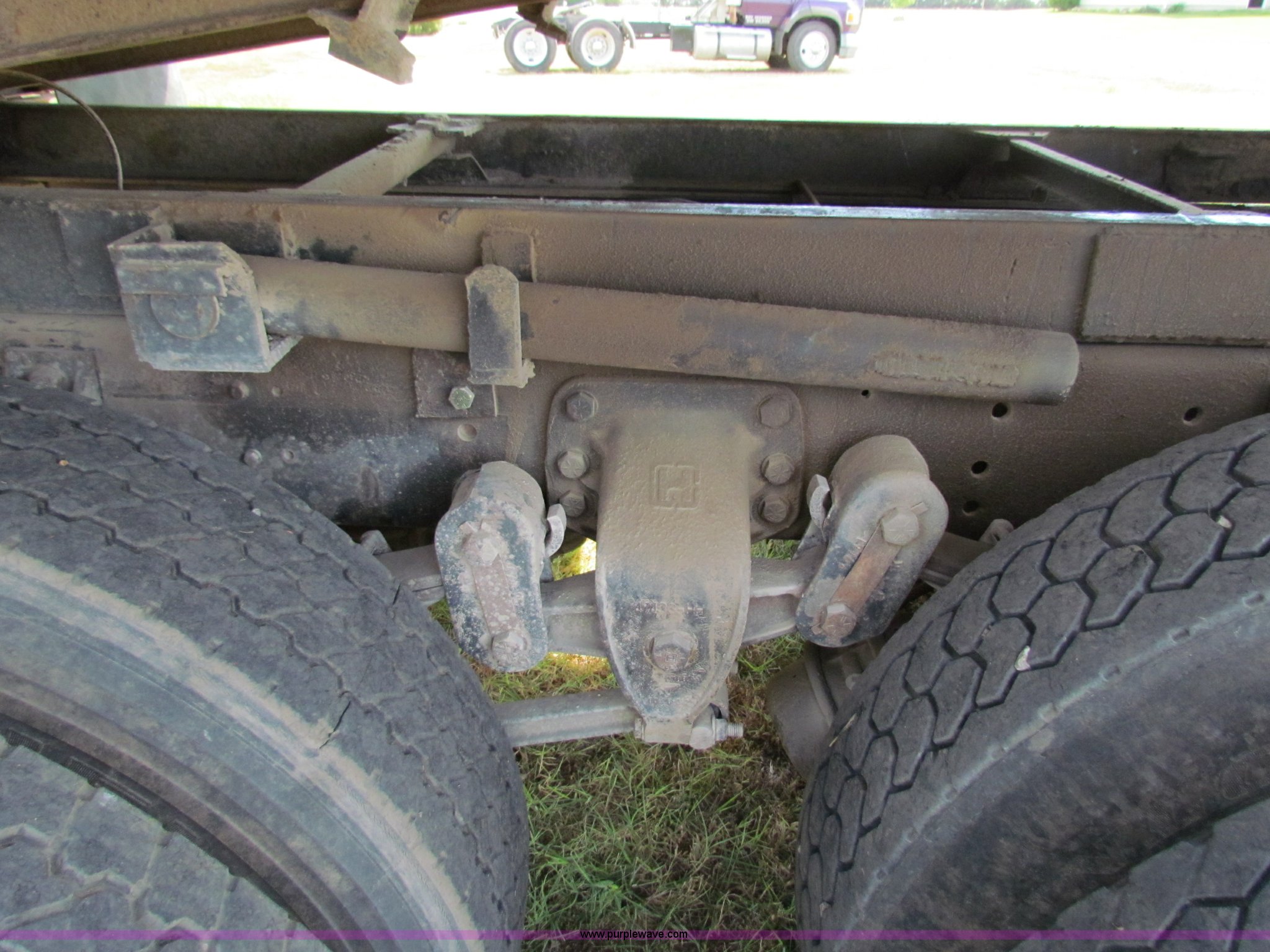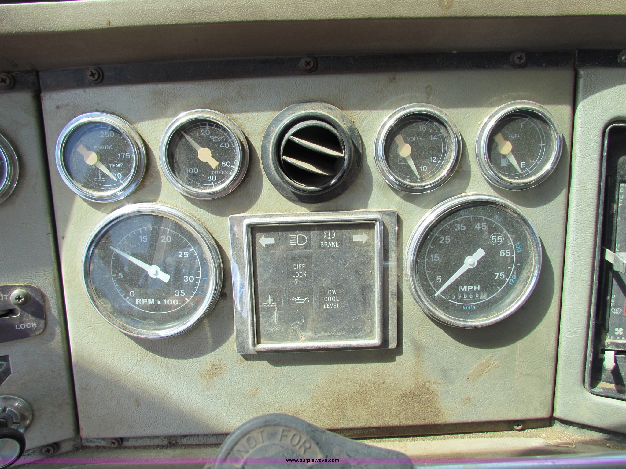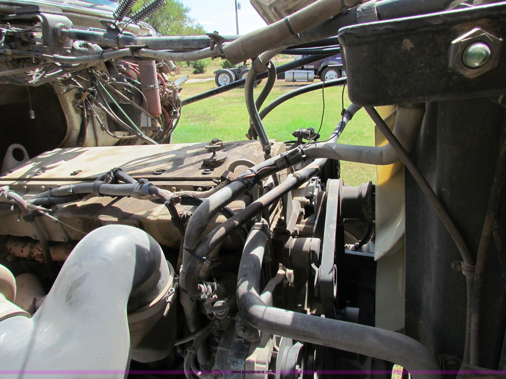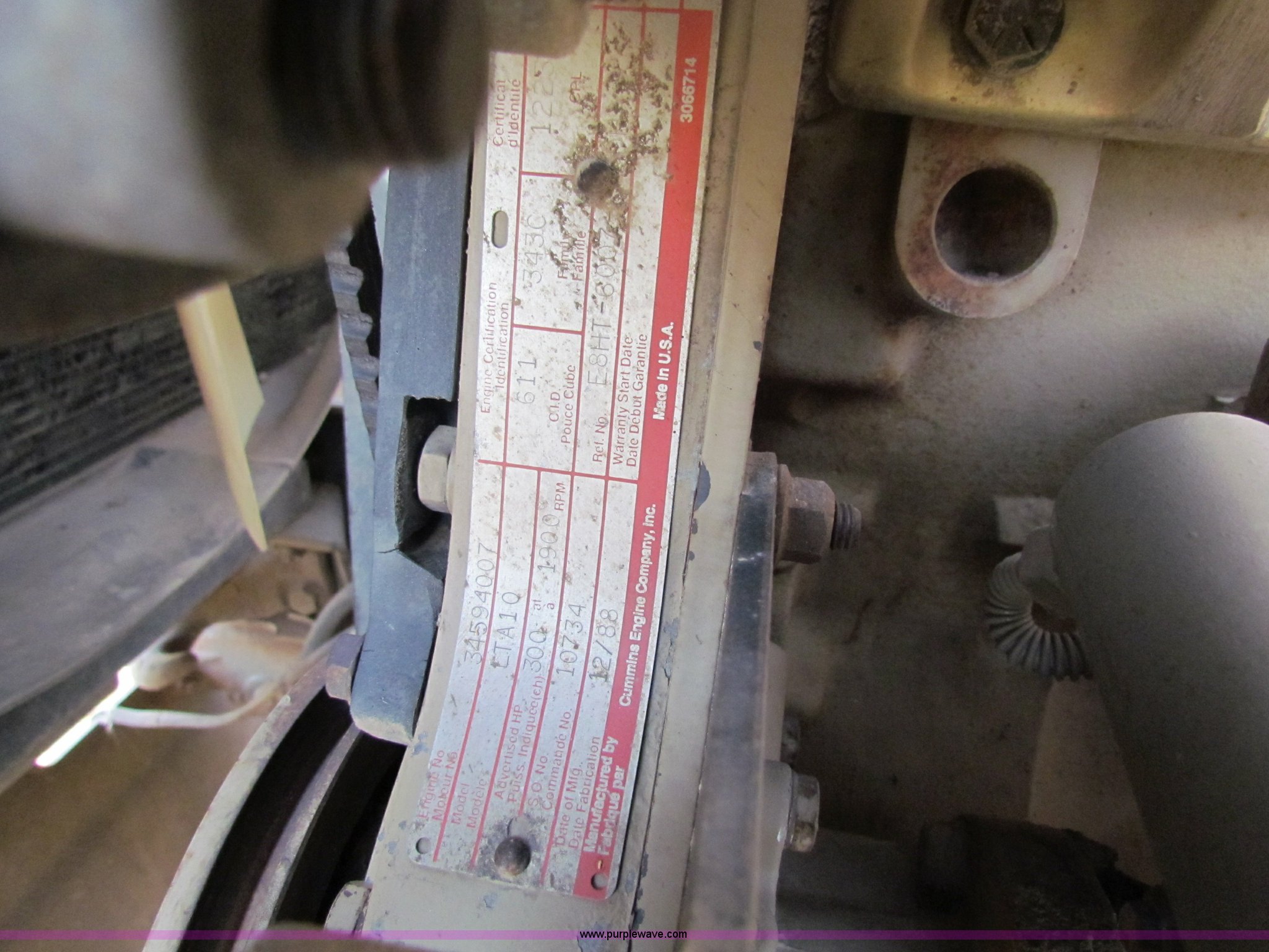 Purple Wave is selling a used Construction Dump Truck in Kansas. This item is a 1989 Ford L9000 dump truck with the following: 659,666 miles on odometer, Cummins L10 diesel engine, 300 HP, Nine speed manual transmission, Twin screw, AC and heat, AC need charged, 13' steel dump bed, Air latch end gate, Air brakes, 11R22.5 front tires, 275/80R24.5 rear tires, Rebuilt lift cylinders