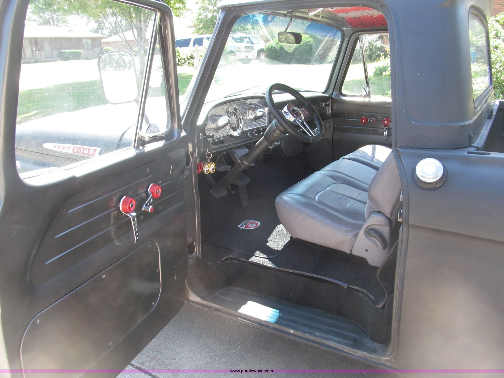 Purple Wave is selling a used Passenger Vehicle in Nebraska. This item is a 1962 Ford F100 Unibody Hot Rod pickup truck with the following: 97,992 original miles on title, Mileage may vary, Mercury 292 V8 gas engine, Edelbrock 1406 four barrel carburetor, Engine rebuilt less than 1,000 miles ago, Three speed manual transmission on column, Heat, Leather bench seat, Custom dash insert, Fuel, temp, oil press, and amp gauges, Recently installed new carpet with floor mats, Custom door handles and tailgate latches, Cab mounted spotlight, Ford 9" rear end, Sanderson dual exhaust with headers, 122" wheelbase, 205/75R15 front tires, 275/60R15 rear tires, GVW 5,000 lbs, New overhead liner to bed installed prior to auction