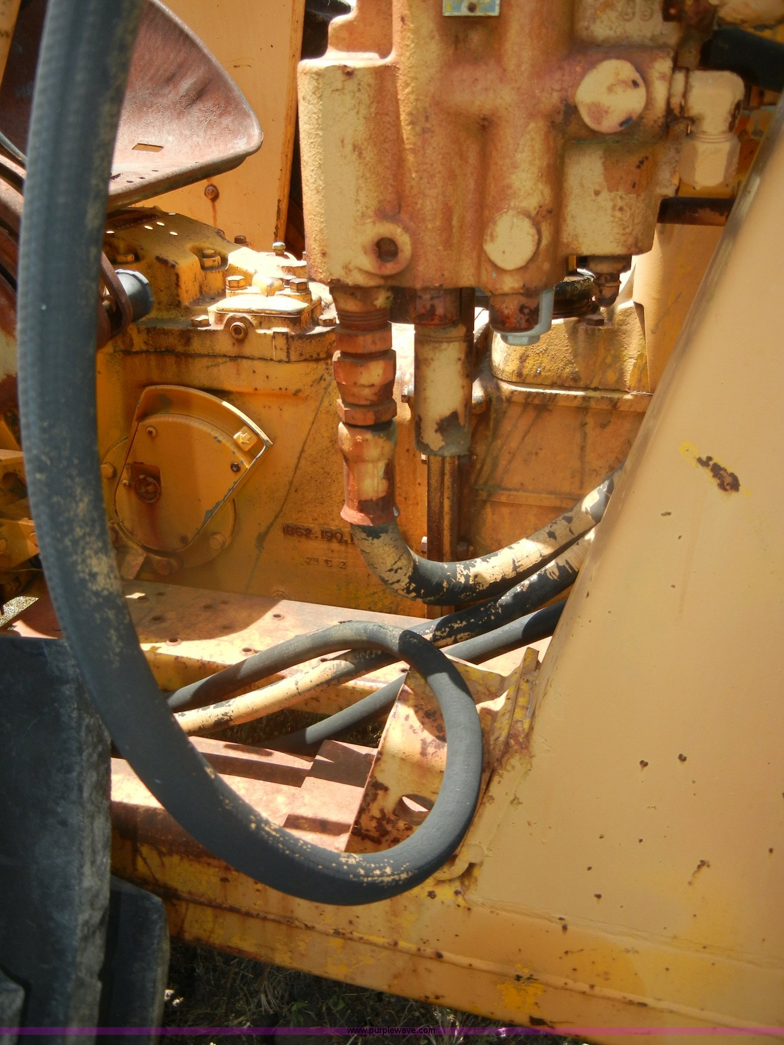 Purple Wave is selling a used Tractor in Kansas. This item is a Massey-Ferguson 40 Industrial tractor with the following: 2,797 hours on meter, Perkins three cylinder gas engine, 42 HP, Hydrostatic transmission, 2F-1R gears with Hi-Lo, Power steering, Three point, Hydraulic down pressure, MF34 loader, Serial 168710165, 80" bucket with 11 bolt-on teeth, One tooth missing,, 61" wheelbase, 11L-16 front tires, 14.9-24 rear tires, Needs new seat cushion, No rear work lights, Does not run, Serial 9A143349