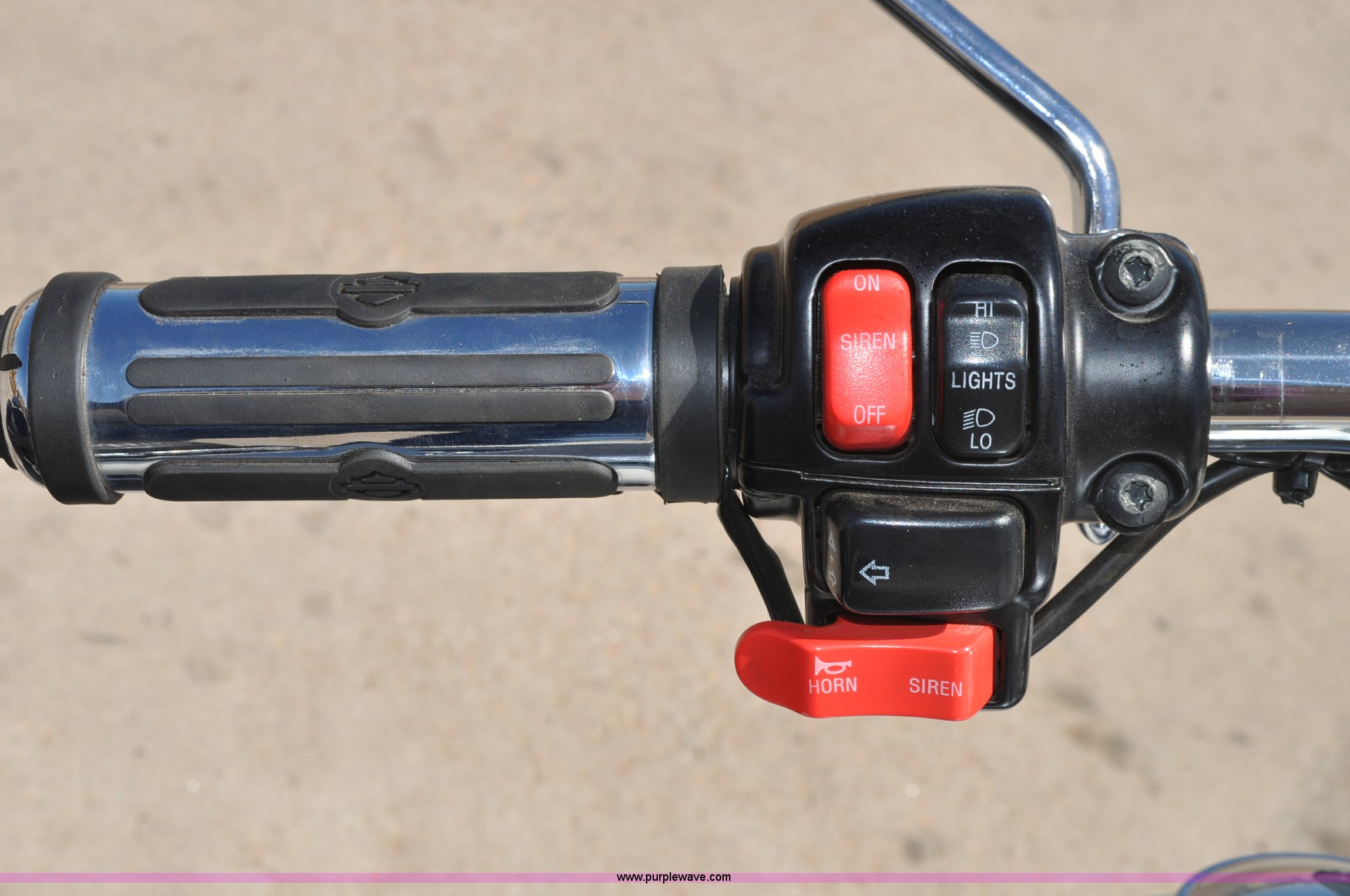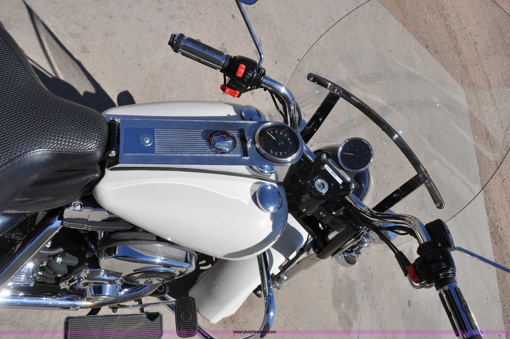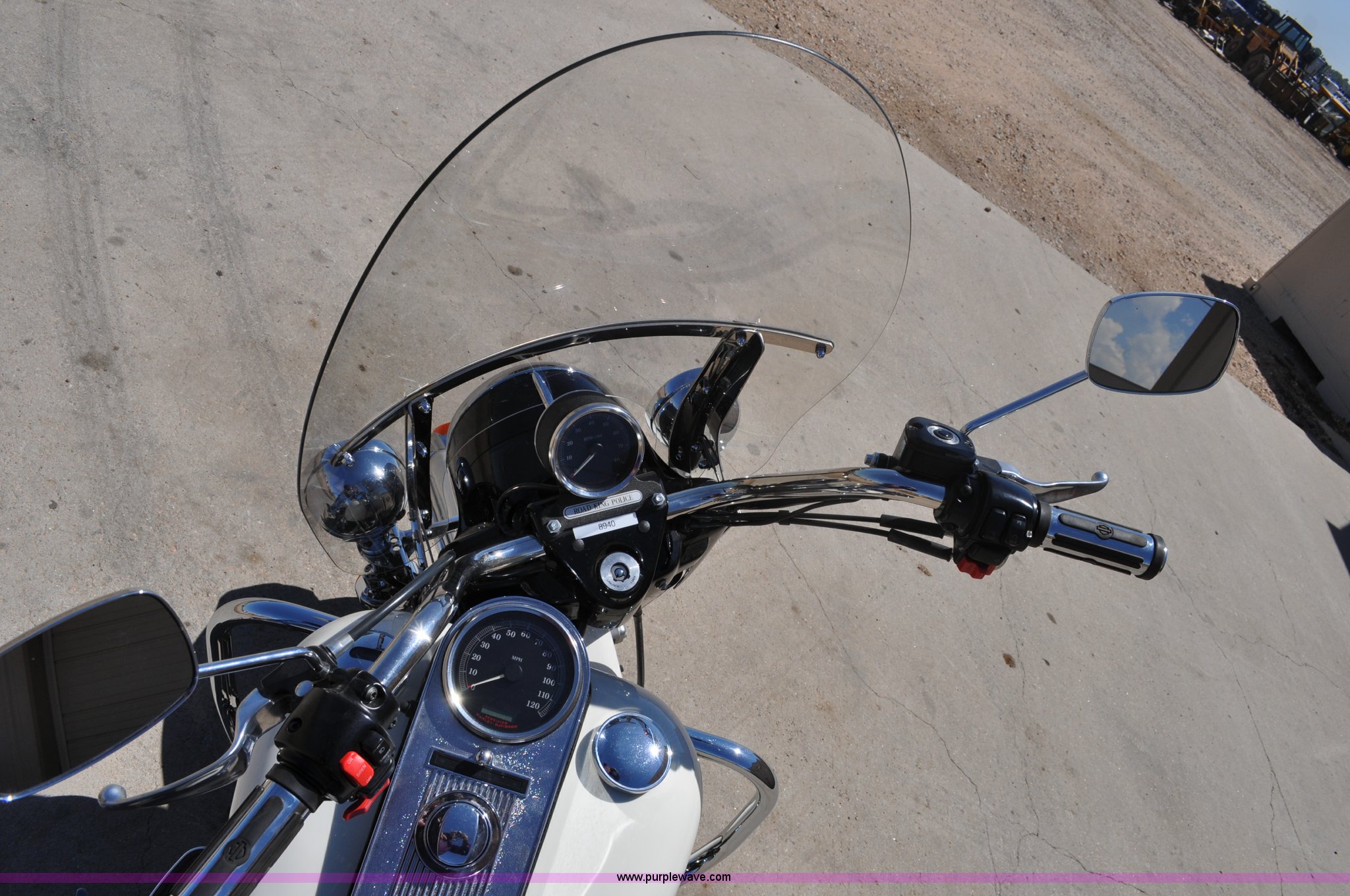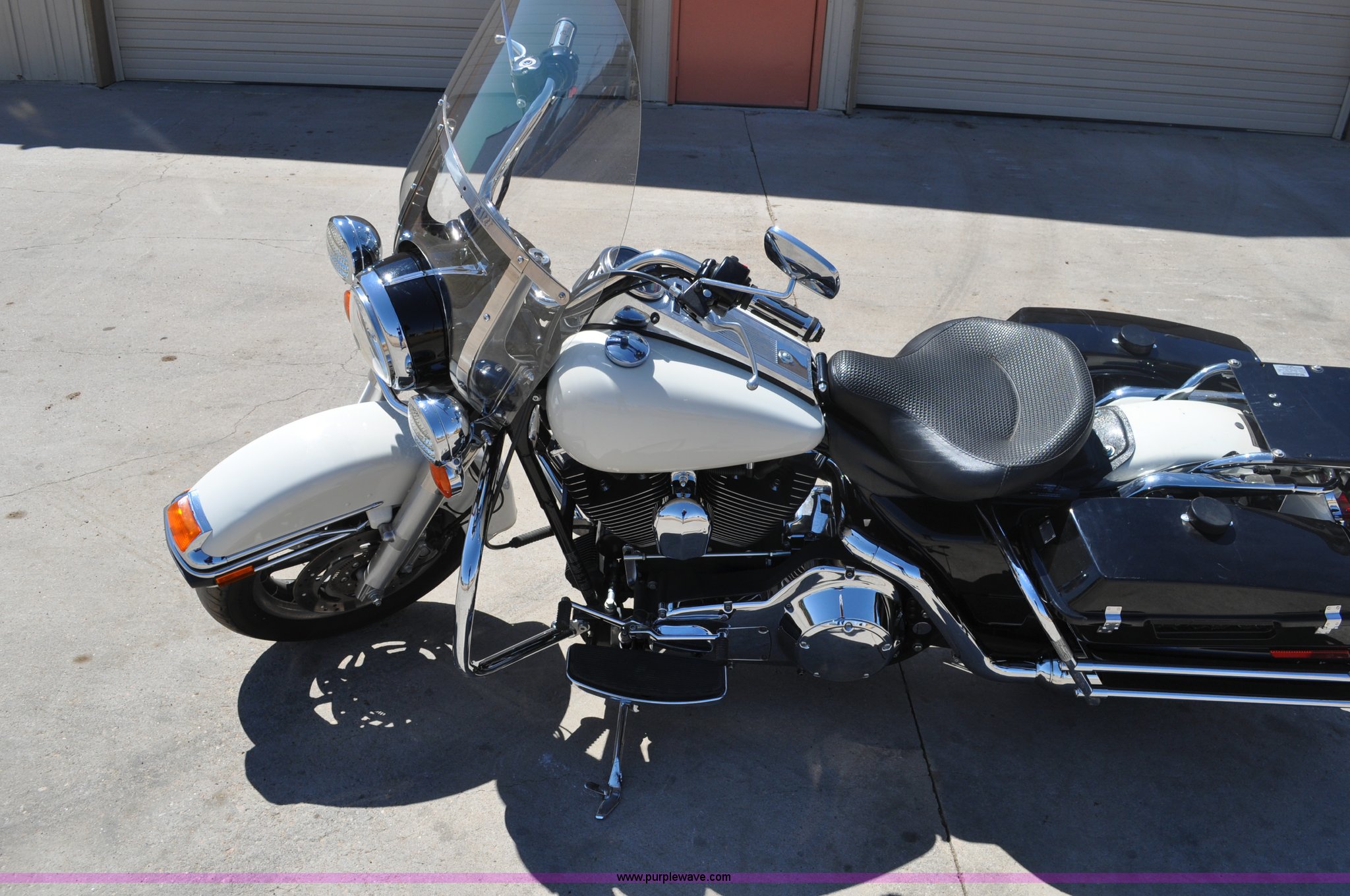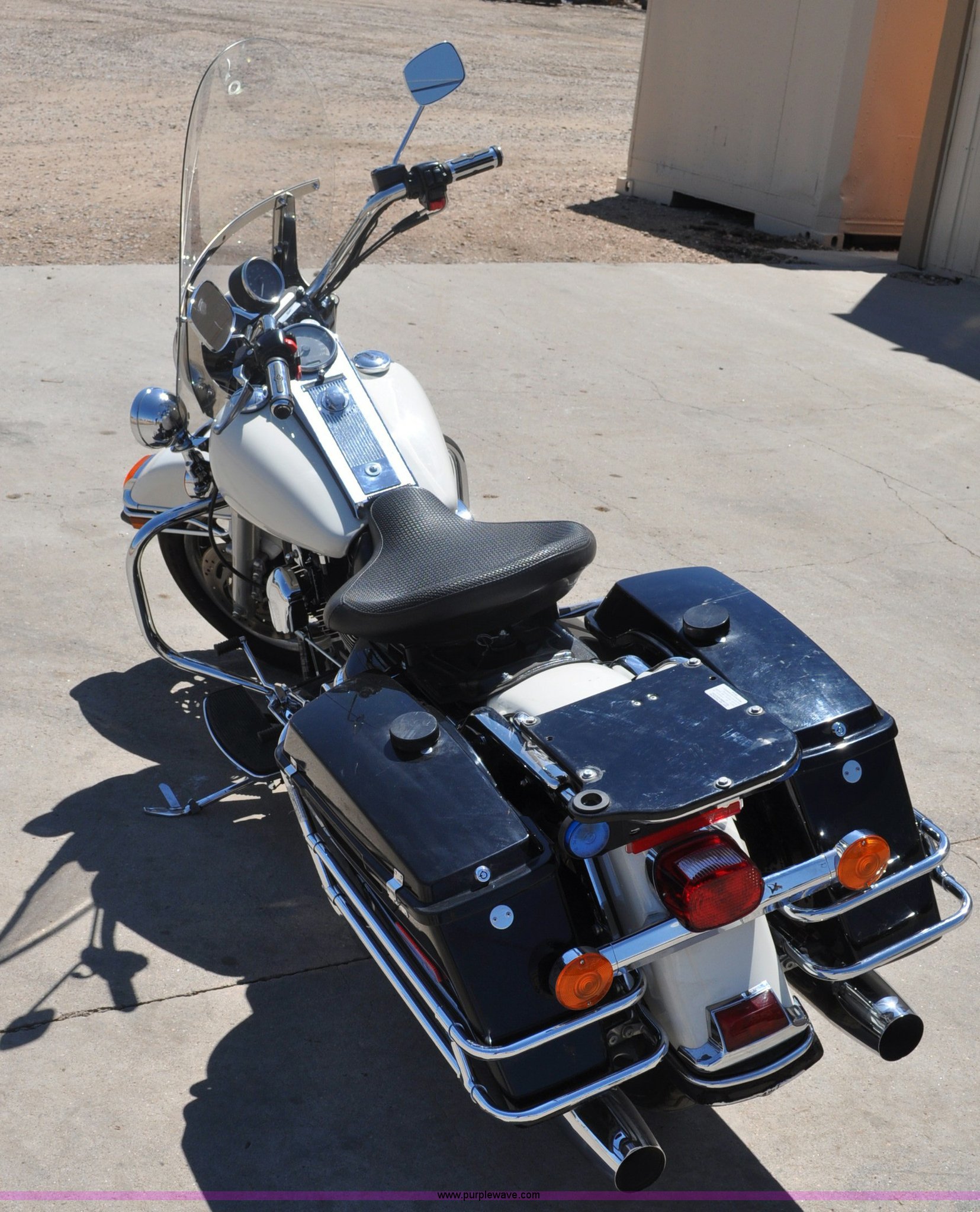 Purple Wave is selling a used Motorcycle in Colorado. This item is a 2006 Harley-Davidson Road King Police motorcycle with the following: 16,548 miles on odometer, 1450 cc gas engine, Radio platform with blue lights, Hand warmers, Windshield, Saddle bags, MT90B16 M/G 72H tires, Former City of Westminister Police Department