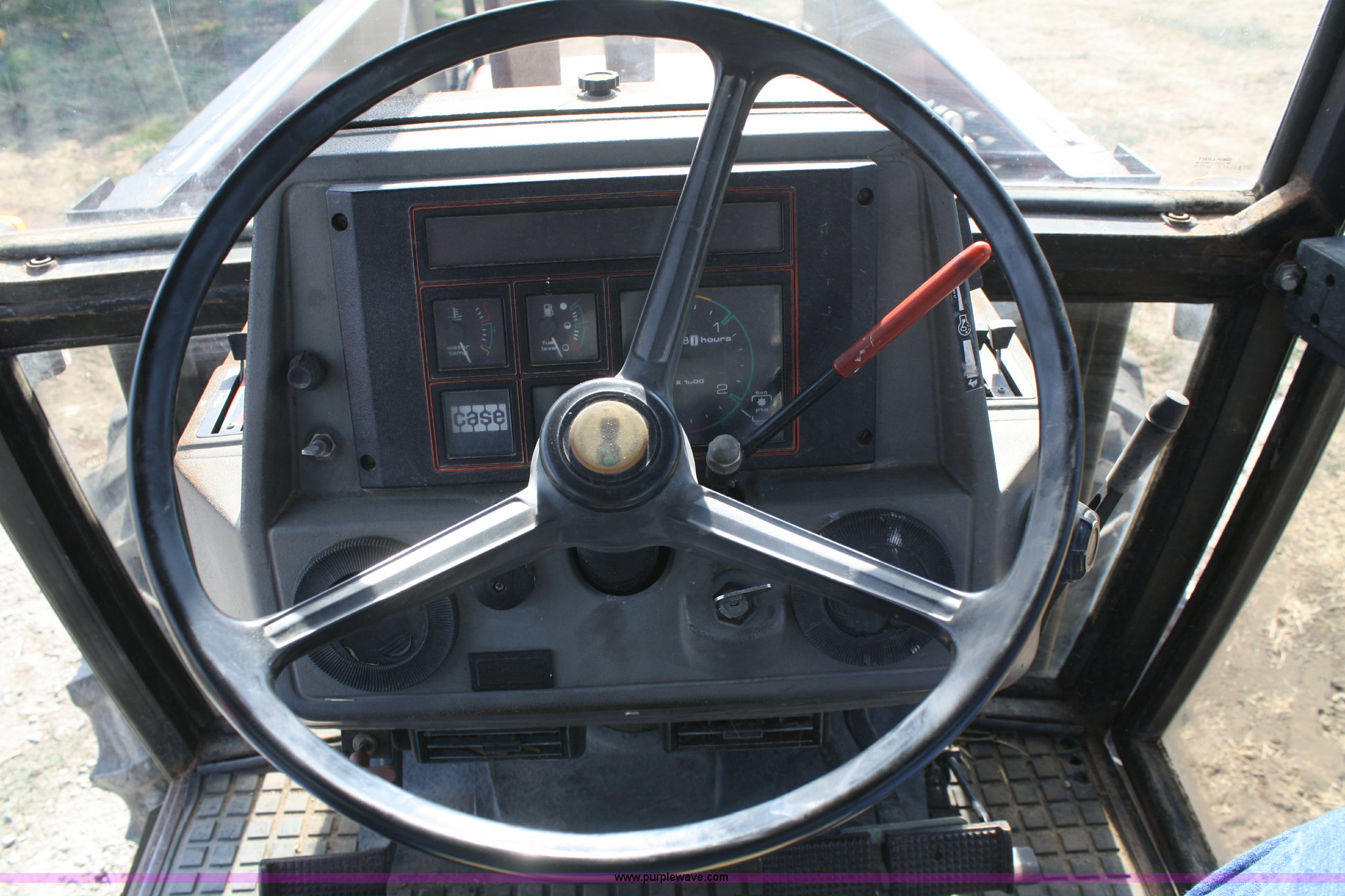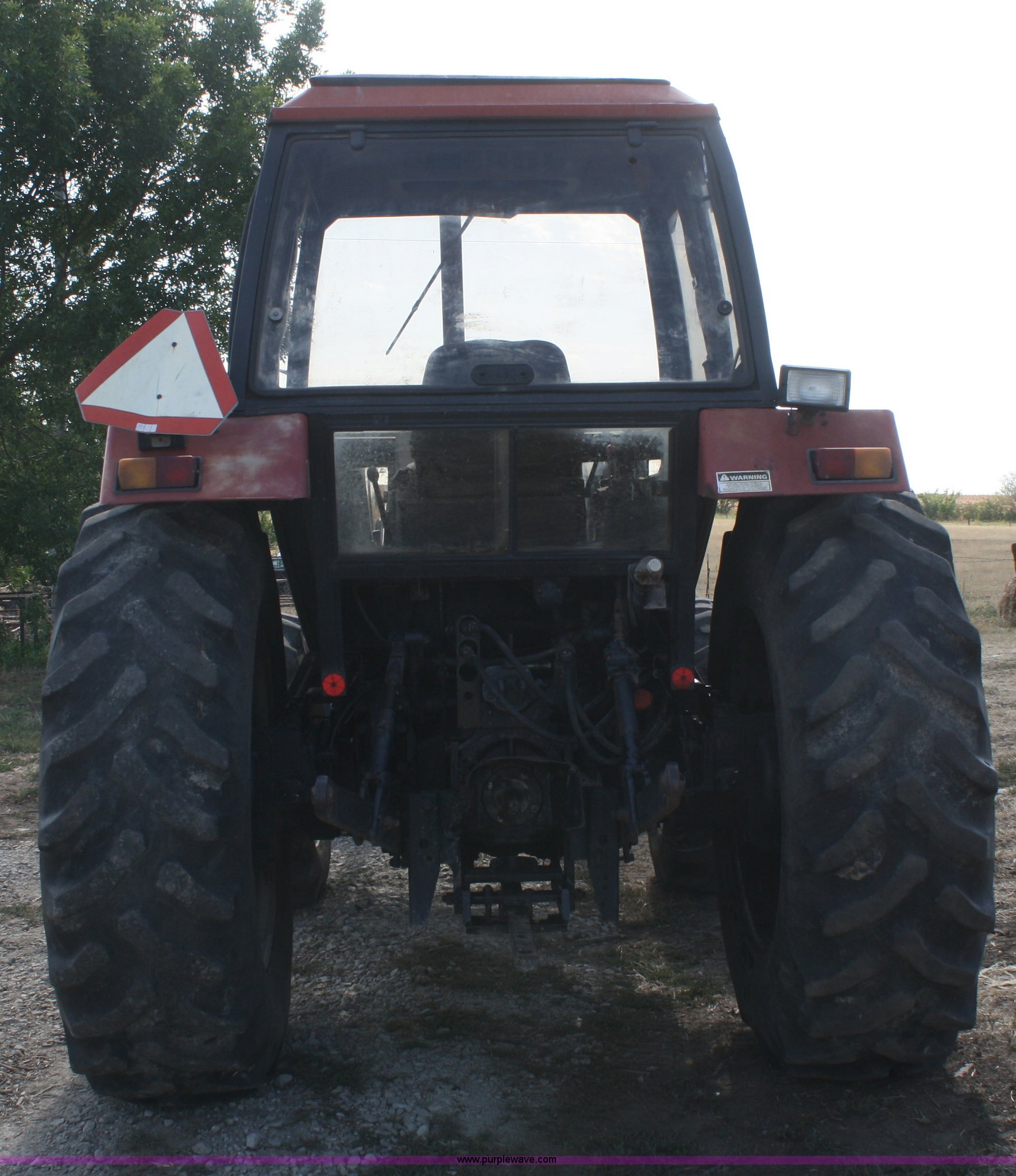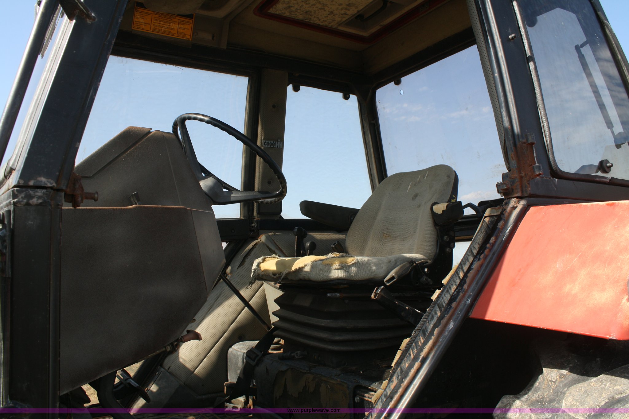 Purple Wave is selling a used Tractor in Kansas. This item is a 1986 Case IH 1494 MFWD tractor with the following: 1,638 hours on meter, Case four cylinder turbo diesel engine, 85 HP, Manual transmission, 12F-4R gears, Enclosed cab, AC and heat, AC does not cool, Spring seat, Westendorf TA-28 loader, Self-leveling for loader included but not installed, 7' bucket, Two-lever control, Three point, Draw bar, 540/1000 PTO, (2) rear hydraulic remotes, 13.6-24 front tires, 18.4-34 rear tires, Less than 10 hours on resurfaced head and valve work, Recently replaced fuel filters, Right rear wheel seal leaks, Left cab door is included but bent on the bottom, Serial 11520351