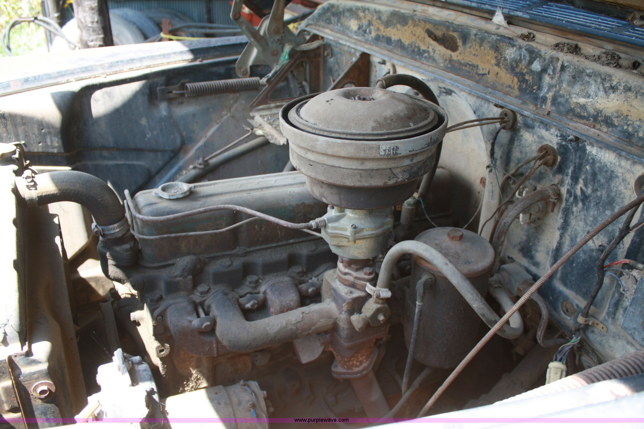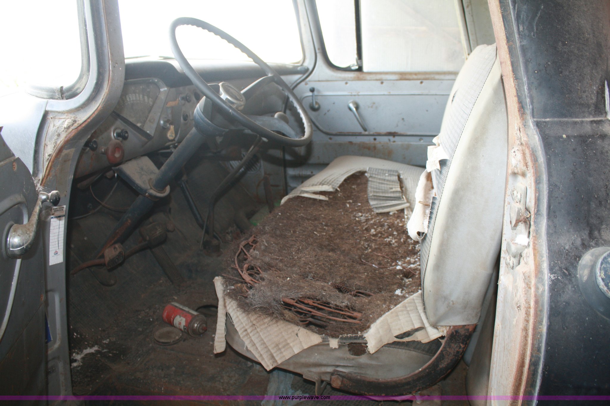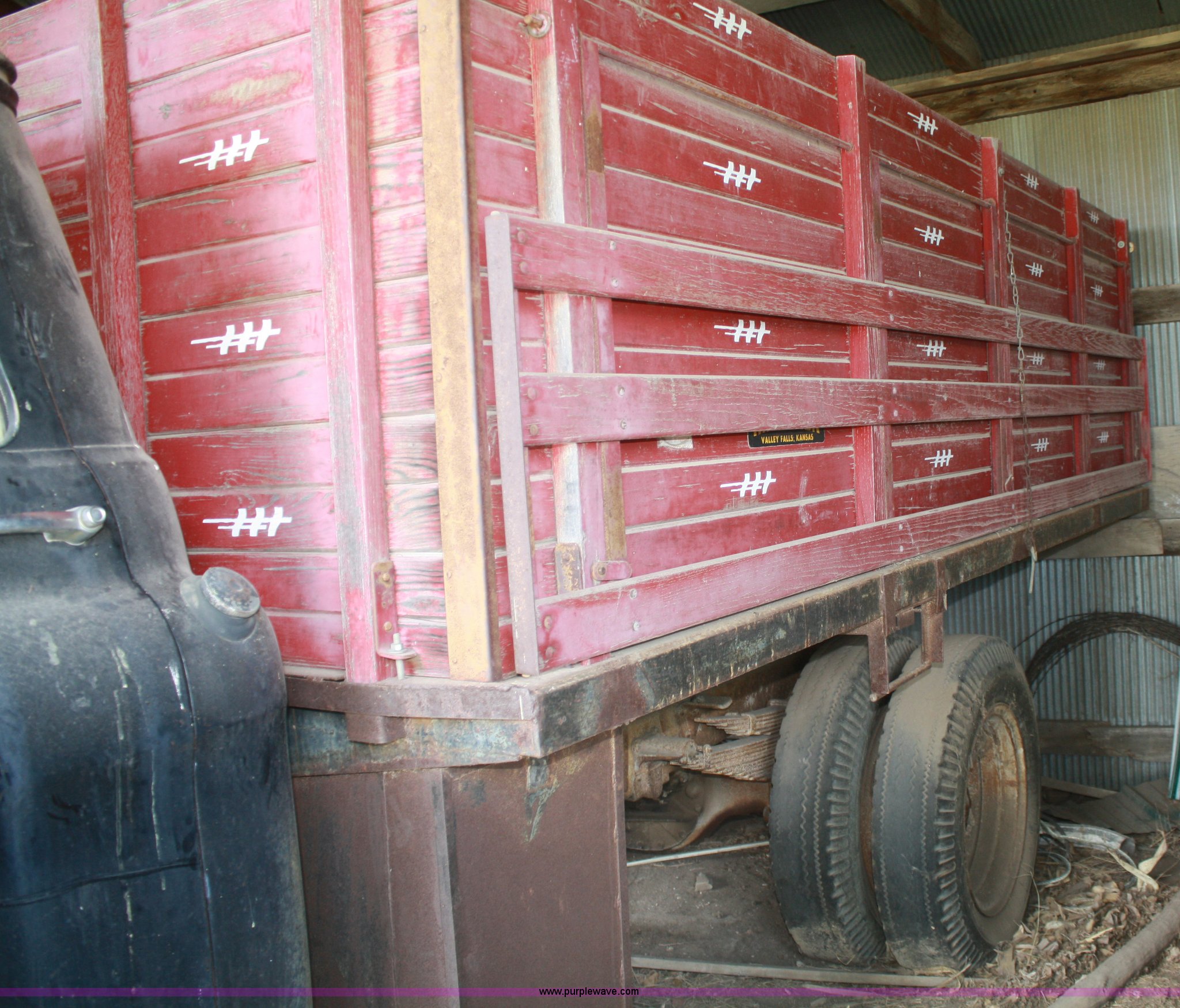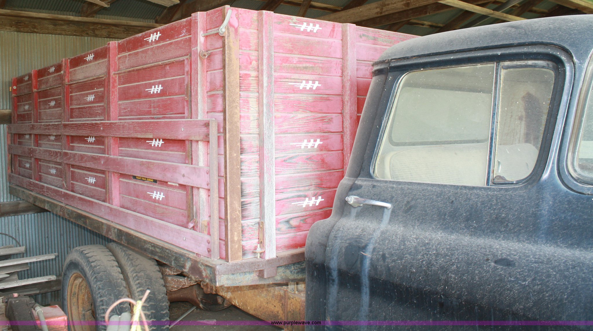 Purple Wave is selling a used Grain Truck in Kansas. This item is a 1958 Chevrolet Viking 60 grain truck with the following: 70,178 miles on odometer, Six cylinder gas engine, Four speed manual with two speed axle, Haul-Mor 12' dump bed, Steel floor, Stock racks, Hoist, PTO, 7.50-20 front tires, 8.25-20 rear tires, Not been started in 25 years, No brakes, (2) flat tires