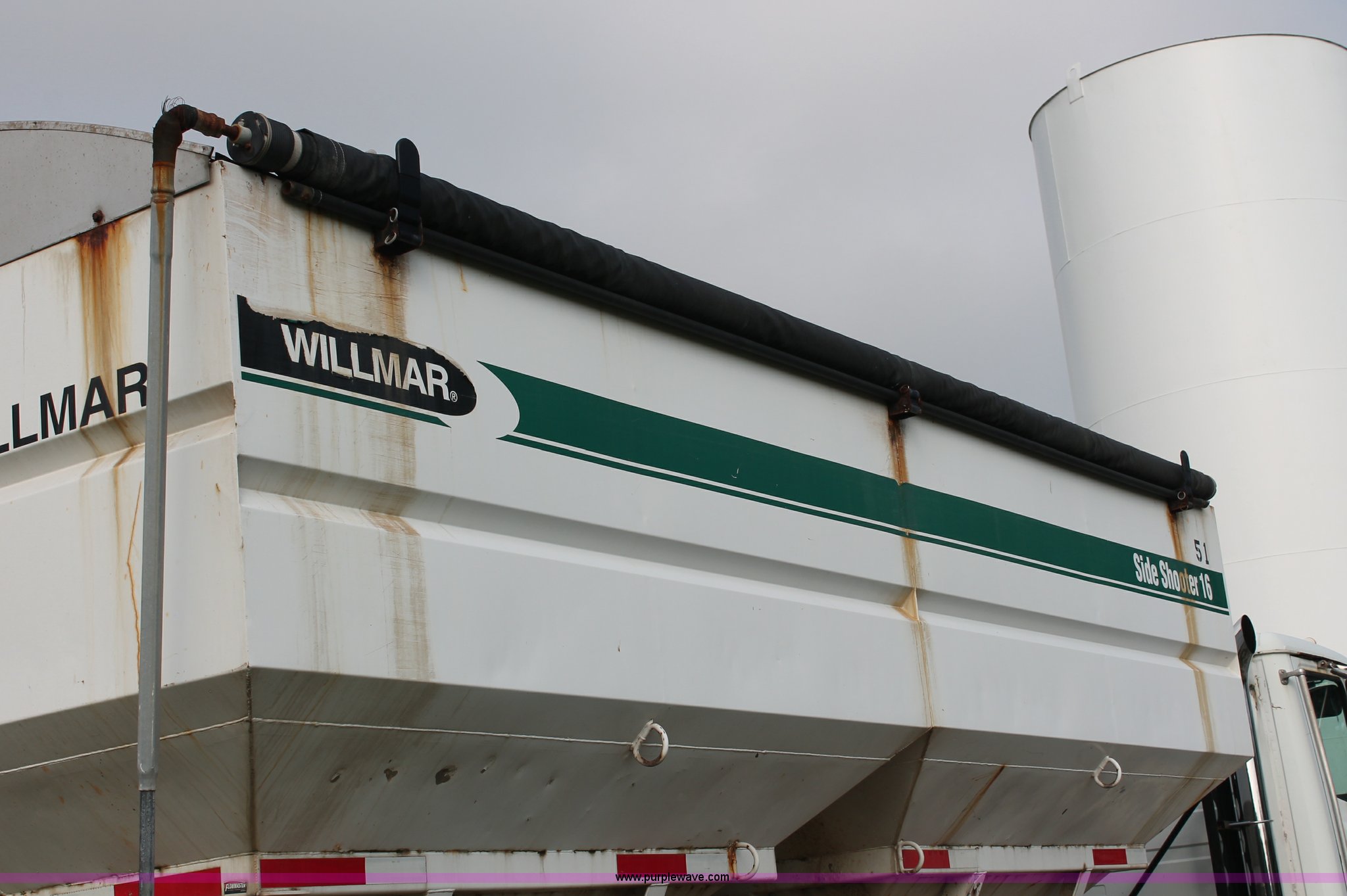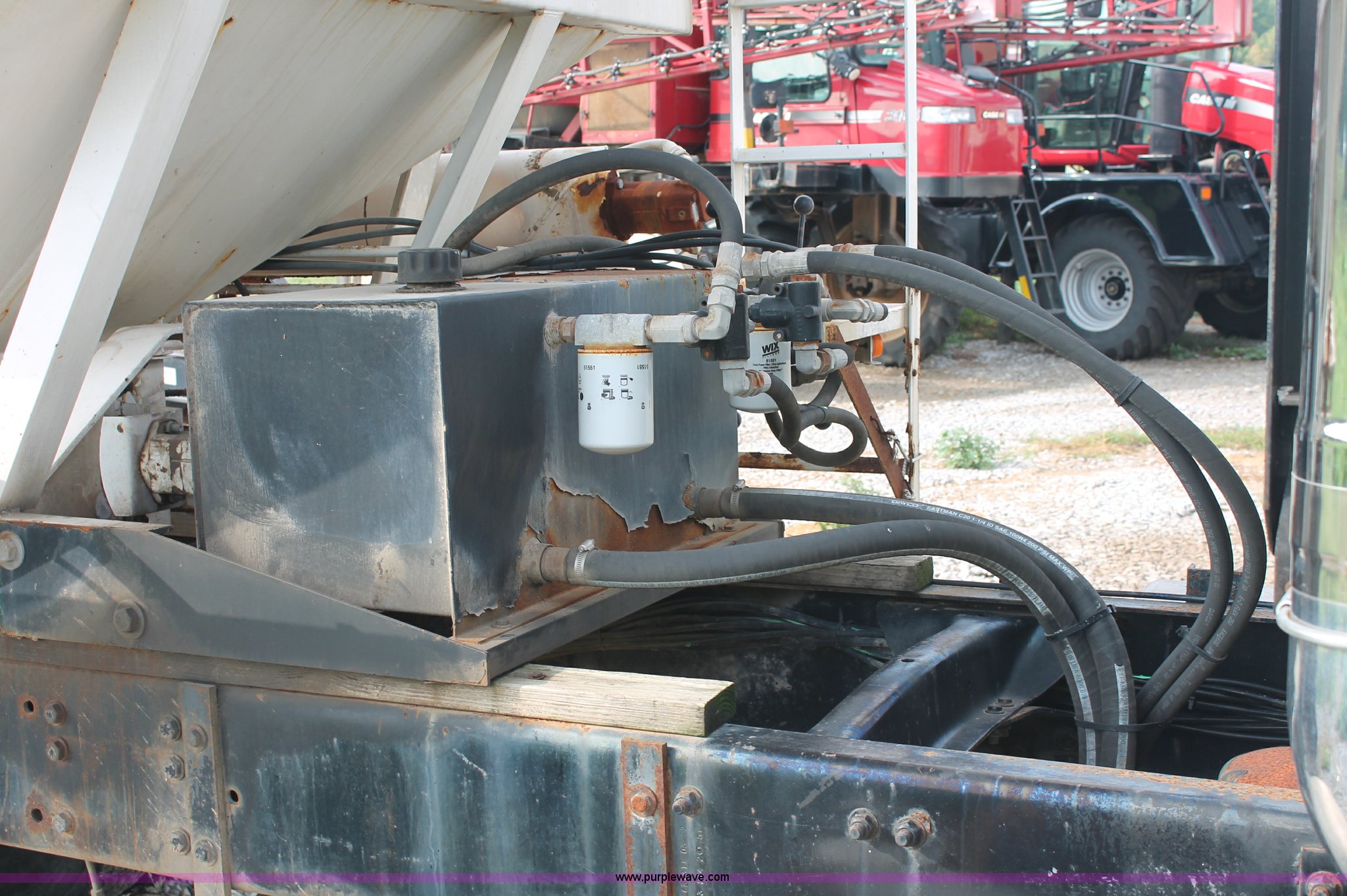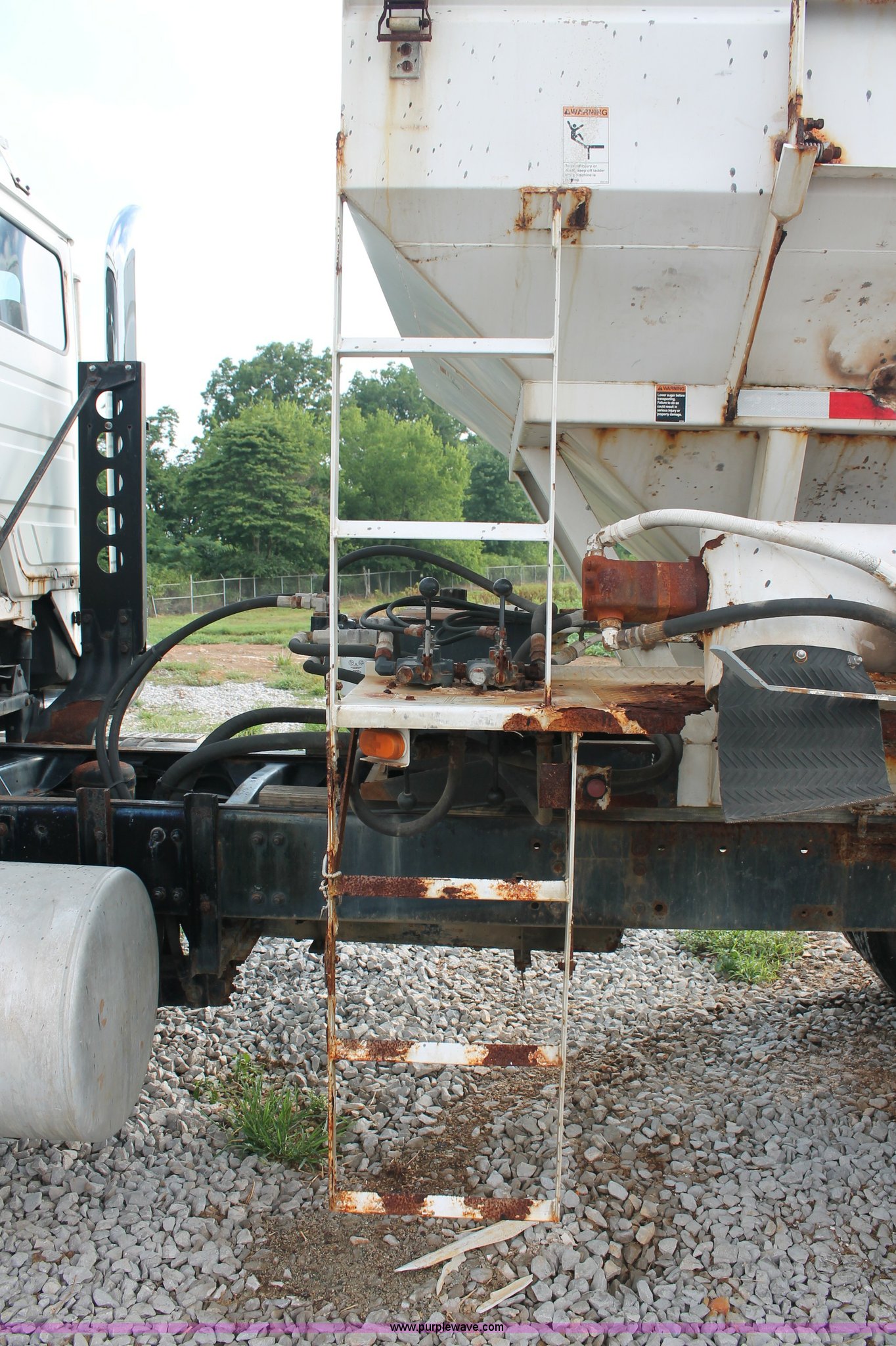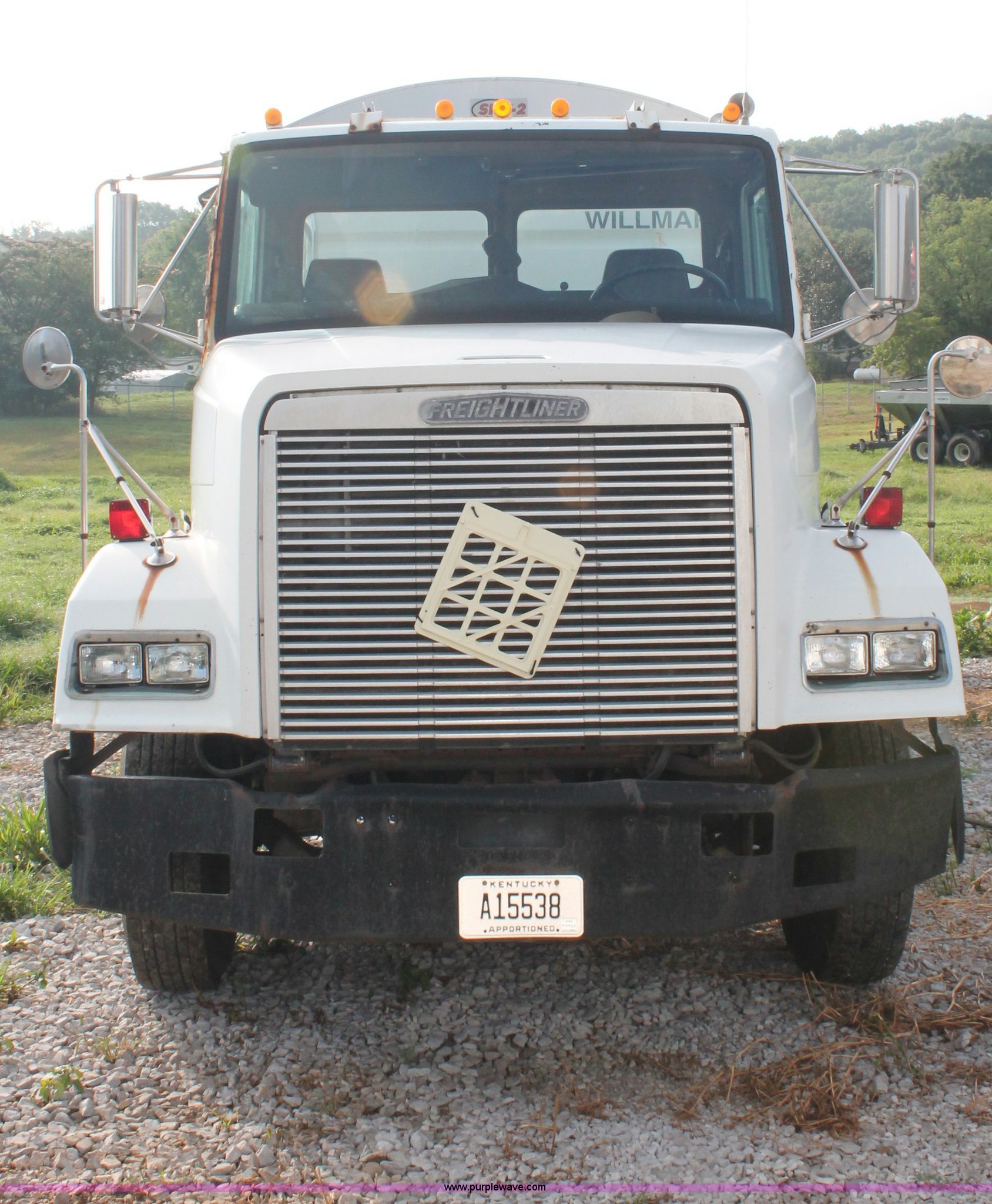 Purple Wave is selling a used Fertilizer or Feed Delivery Truck in Kentucky. This item is a 1994 Freightliner FLC112 fertilizer tender truck with the following: 563,579 miles on odometer, Cummins 93R 14.0L L6 diesel engine, 330 HP, Serial 11711043, Eaton Road Ranger manual transmission, Twin screw, Differential lock, AC and heat, Kenmore CB radio, Willmar Side Shooter 16 tender bed, Dual hopper bottom, Access ladder, Hydraulic toggle four stick operation, 10" diameter auger, SRT-2 rollover tarp, Serial 11711043, Bumper, Block heater, Dual 100 gallon tanks, Single rear exhaust stack, Sliding fifth wheel, PTO, Wet kit, Spring suspension, Jake brake, 11R22.5 tires, GVWR 48,000 lbs, FAWR 12,000 lbs, IAWR 18,000 lbs, RAWR 18,000 lbs, Unit# 22027