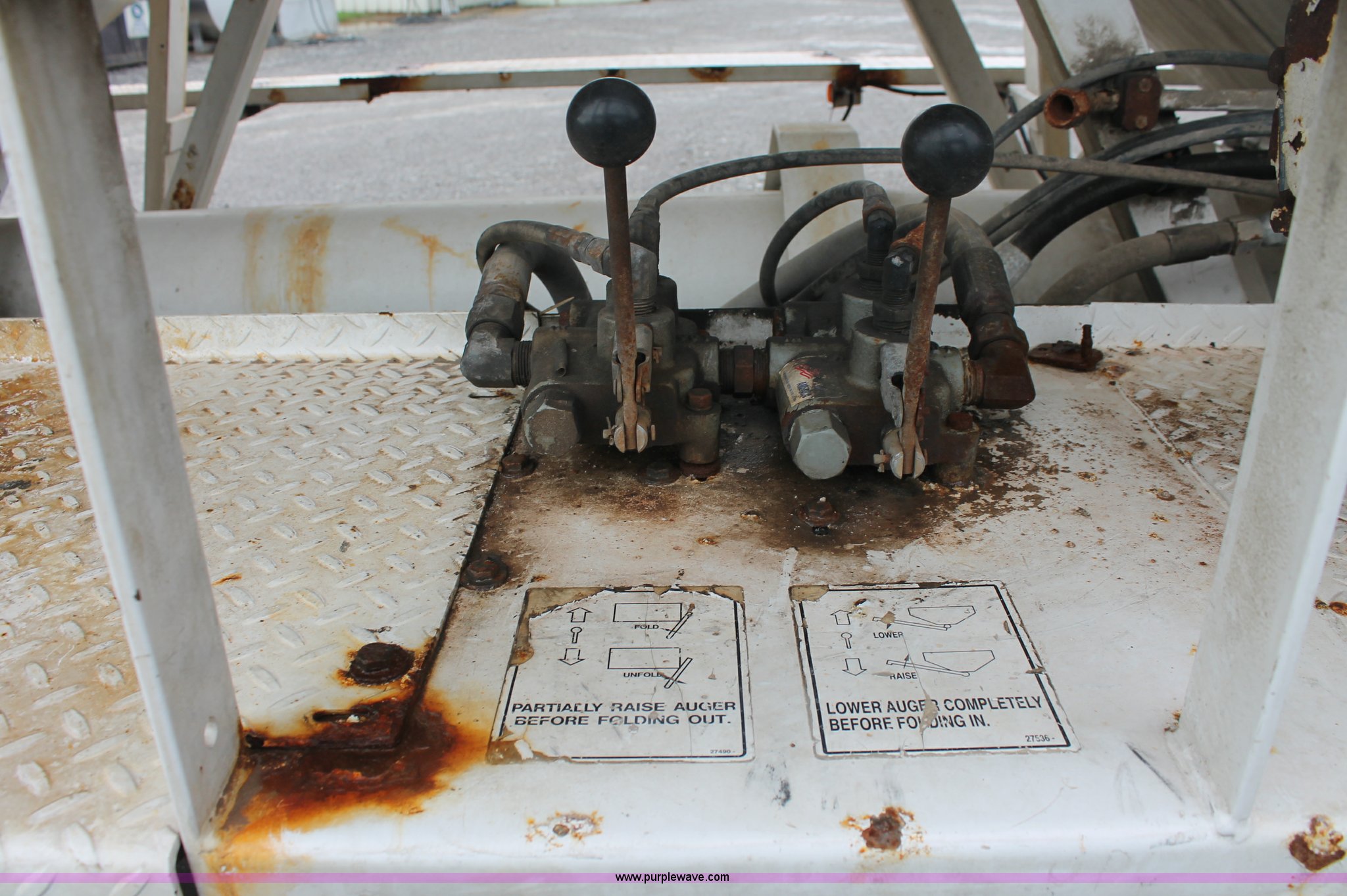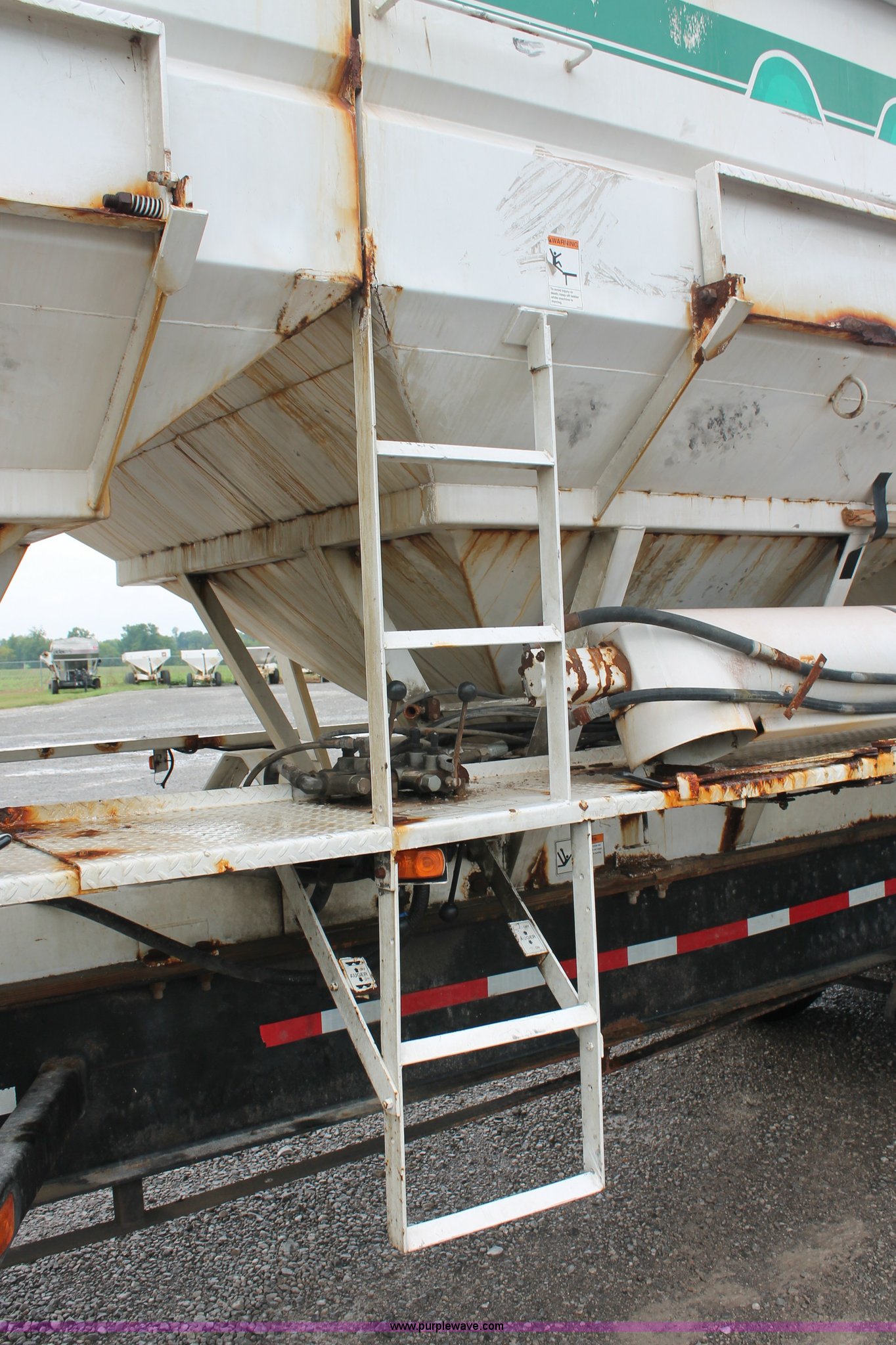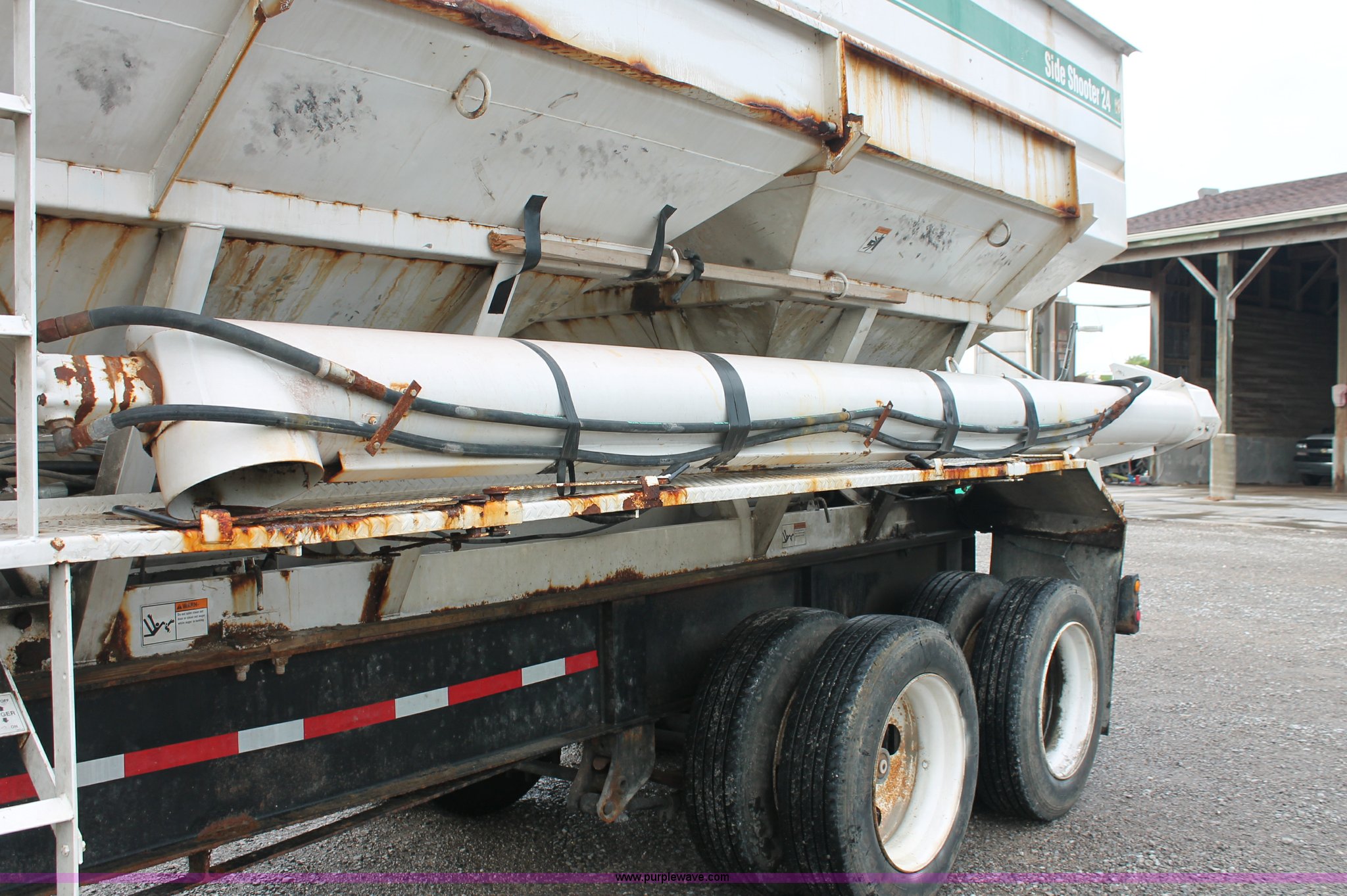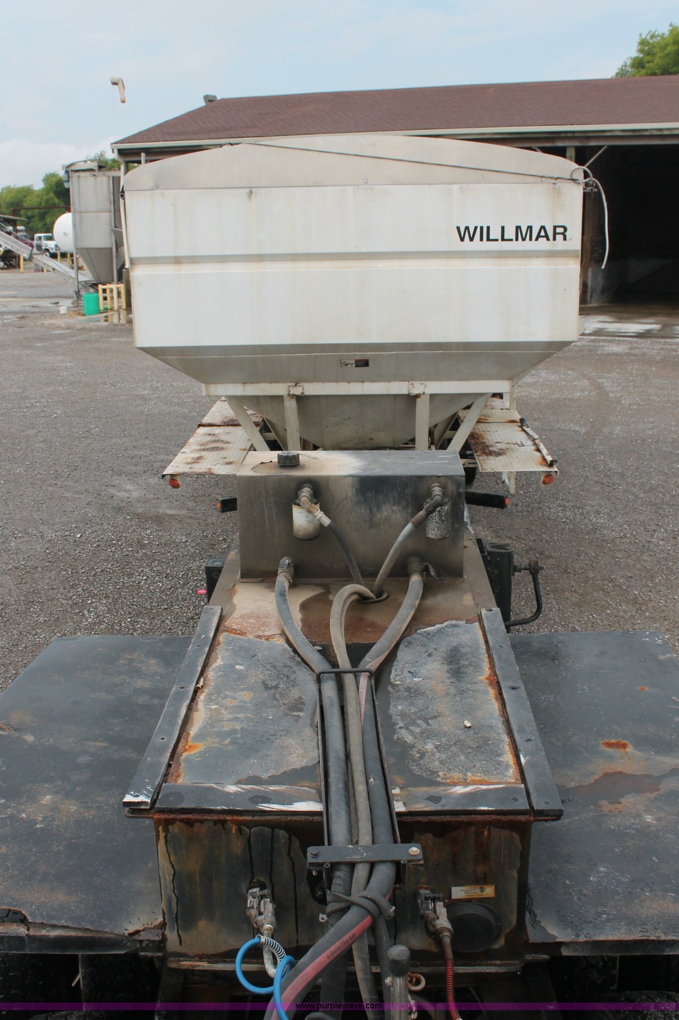 Purple Wave is selling a used Fertilizer or Feed Delivery Trailer in Kentucky. This item is a 2004 Willmar Side Shooter 24 fertilizer tender trailer with the following: 25'L trailer, 11'L gooseneck, (3) hopper bottoms, 10" diameter auger, Wet kit, Hydraulic toggle four stick operation, Shur-Lok rollover tarp, Access ladder, 225/70R22.5 dual tires, Unit# 22044