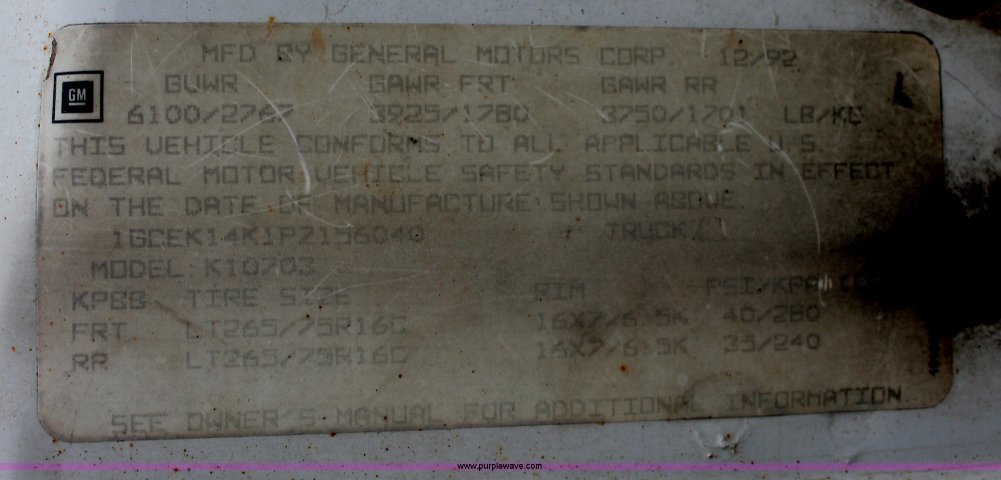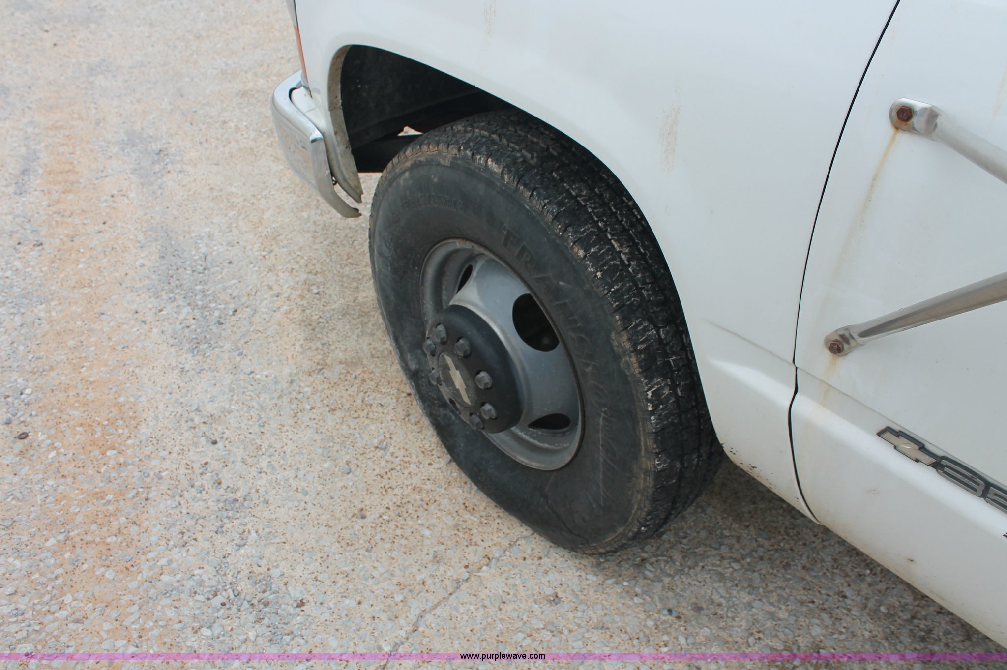 Purple Wave is selling a used Passenger Vehicle in Tennessee. This item is a 1993 Chevrolet 3500 flatbed pickup truck with the following: 139,634 miles on odometer, 5.7L V8 TBI gas engine, Five speed manual transmission, Transmission issues, AC and heat, Tilt, Cruise, AM/FM, Manual windows and locks, Cloth interior, Custom rear bumper, Gooseneck ball, Pin hitch, 235/85R16 tires, Front drivers tire has broken valve stem, Will not hold air, Unknown transmission issues, Dead battery, Unit# 22063