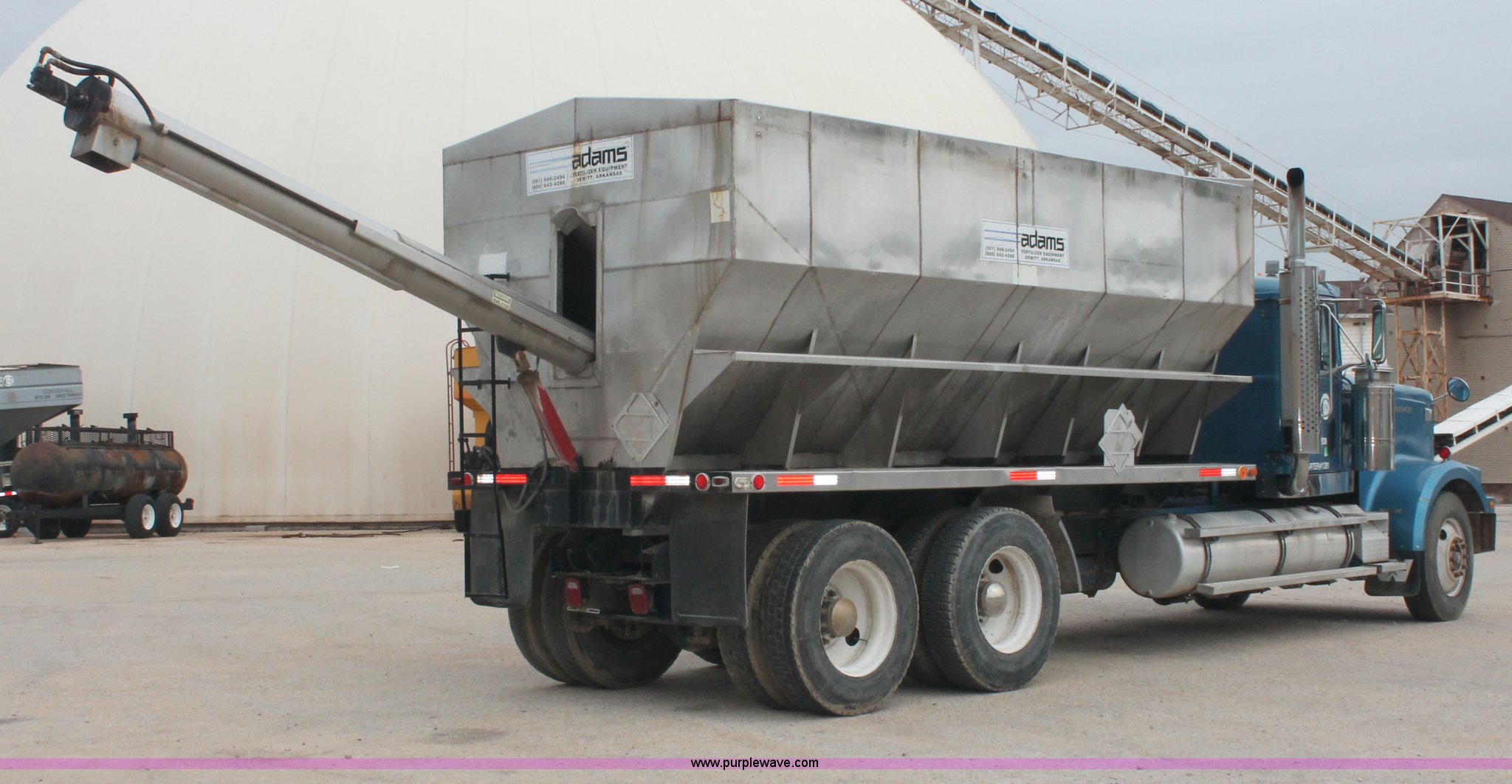 Purple Wave is selling a used Fertilizer or Feed Delivery Truck in Tennessee. This item is a 1995 Western Star 4964F fertilizer tender truck with the following: 87,592 miles on odometer, Detroit 60 12.7L L6 diesel engine, 470 HP, Eaton Fuller 10 speed manual transmission, Twin screw, Differential lock, AC and heat, Tilt, Cruise, AM/FM/Cassette, Passenger daylight door, Air ride cab, Heated mirrors, Air seat, Spot lights, Adam 16' tender bed, Stainless steel, 10" diameter auger, Access ladder, Hydraulic toggle two stick operation, Visor, Dual 125 gallon fuel tanks, Dual rear exhaust stacks, Sliding fifth wheel, PTO, Wet kit, Air suspension, Air brakes, Jake brake, 264" wheelbase, 11R24.5 tires, GVWR 48,000 lbs, FAWR 12,000 lbs, IAWR 18,000 lbs, RAWR 18,000 lbs, Unit# 40788