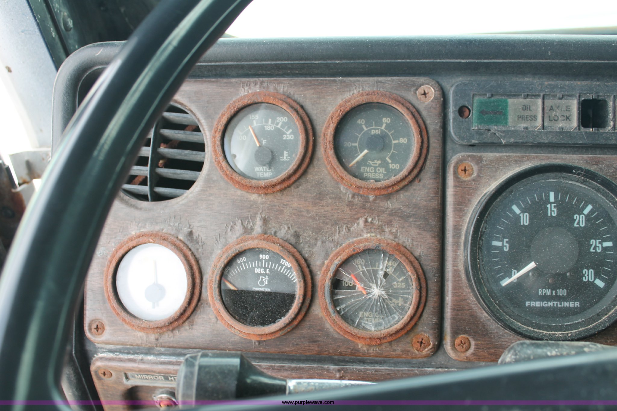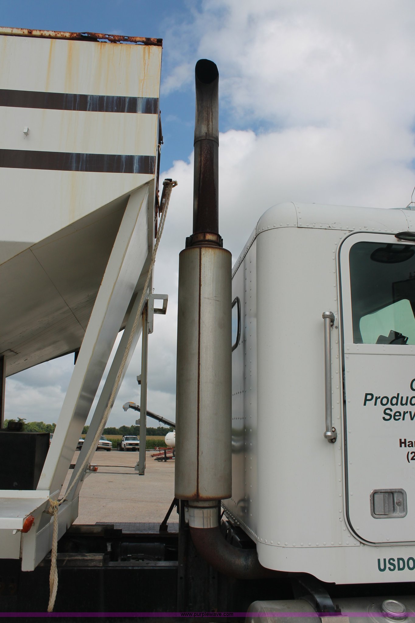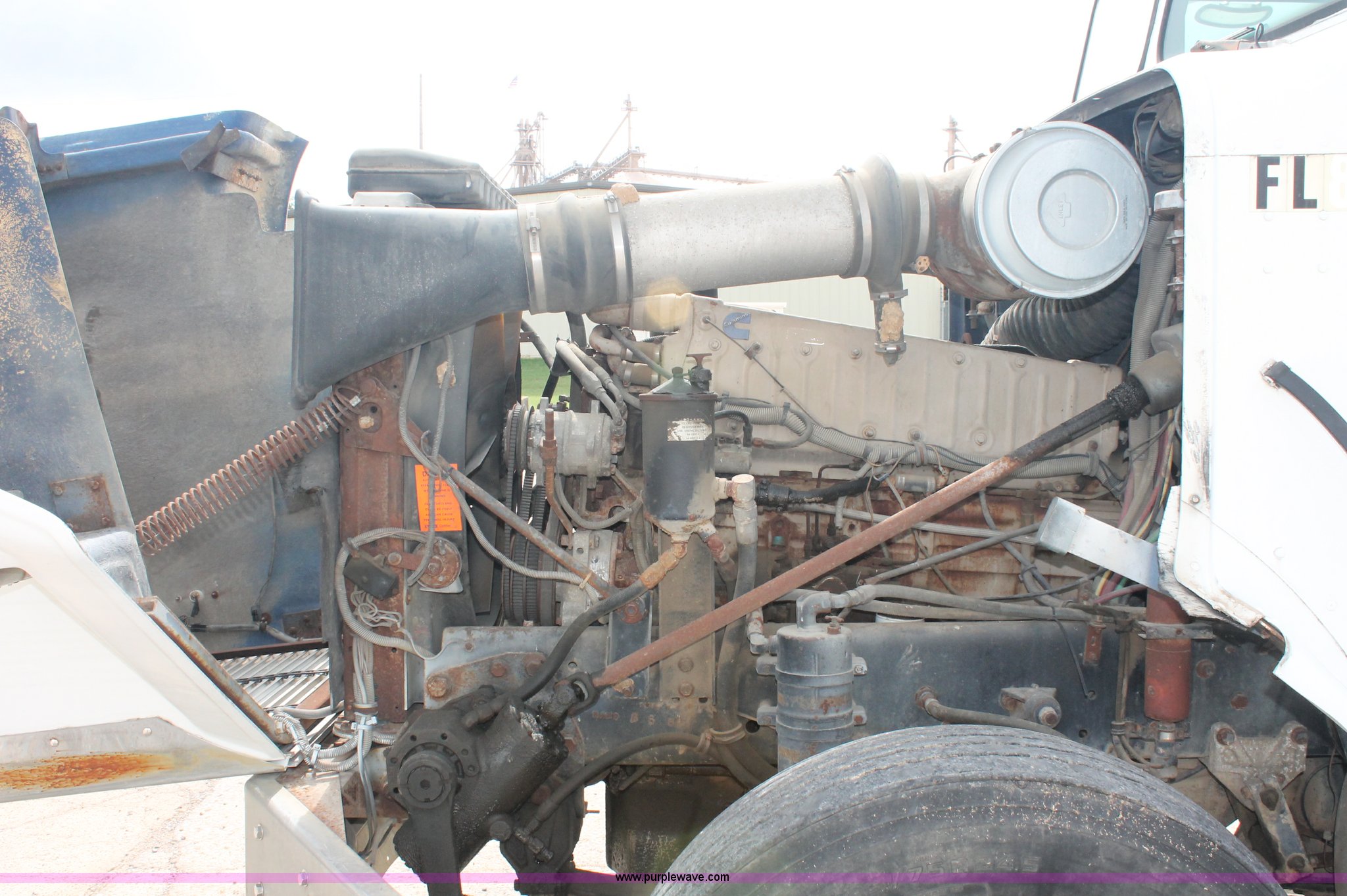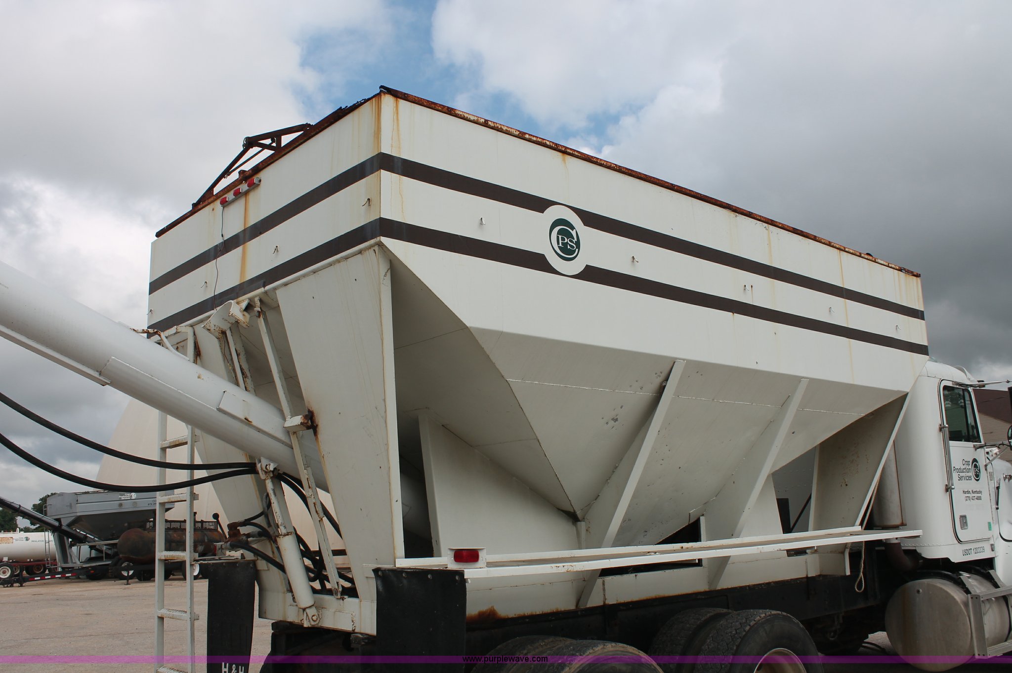 Purple Wave is selling a used Fertilizer or Feed Delivery Truck in Tennessee. This item is a 1986 Freightliner Conventional FLC120-64T fertilizer tender truck with the following: 219,598 miles on odometer, Cummins 14.0L L6 diesel engine, Fuller Road Ranger nine speed manual transmission, Twin screw, Differential lock, AC and heat, AM/FM/Cassette, Heated mirrors, Air seat, Highway Equipment LT16 16' tender bed, 10" diameter auger, (2) access ladders, Hydraulic toggle single stick operation, Serial 97124, Visor, Bumper, Block heater, Single rear exhaust stack, PTO, Wet kit, Spring suspension, Air brakes, 212" wheelbase, 275/80R24.5 tires, GVWR 50,000 lbs, FAWR 12,000 lbs, IAWR 19,000 lbs, RAWR 19,000 lbs, Unit# 44164