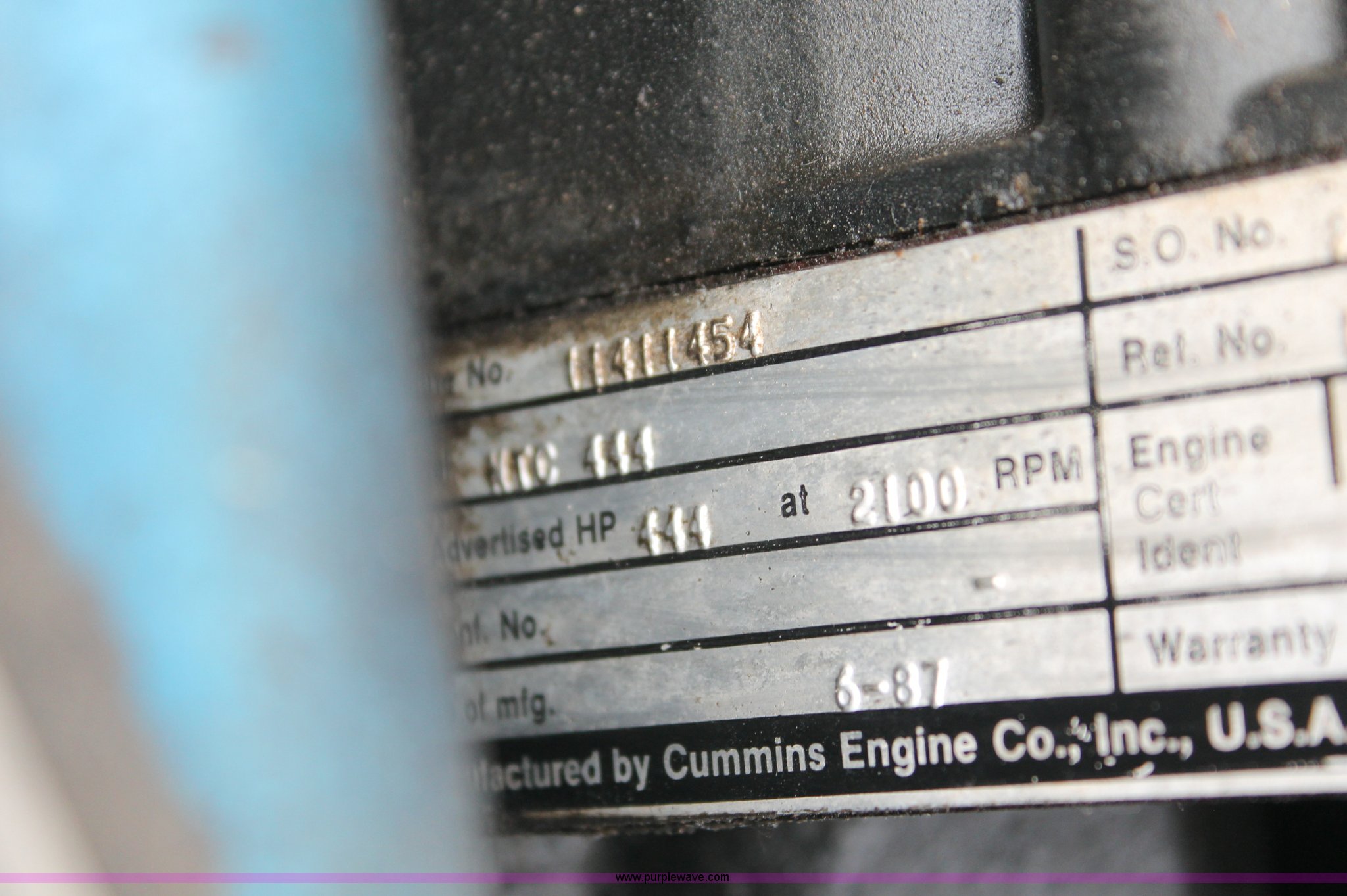 Purple Wave is selling a used Truck Tractor in Tennessee. This item is a 1988 Peterbilt 377 semi truck with the following: 406,508 miles on odometer, Cummins 14.0L L6 diesel engine, 444 HP, Serial 11411454, Fuller Road Ranger nine speed manual transmission, Differential lock, AC and heat, Air suspension seat, Spotlight, Visor, Bumper, Block heater, Dual 100 gallon fuel tank, Dual rear exhaust stacks, Stainless steel quarter fender, Sliding fifth wheel, Dump valves, Air suspension, Air brakes, Jake brake, Brake controller, 232" wheelbase, GVWR 50,000 lbs, FAWR 12,000 lbs, IAWR 19,000 lbs, RAWR 19,000 lbs, Unit# 45857