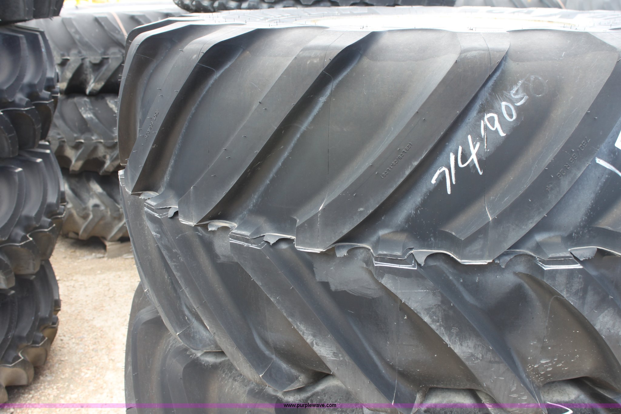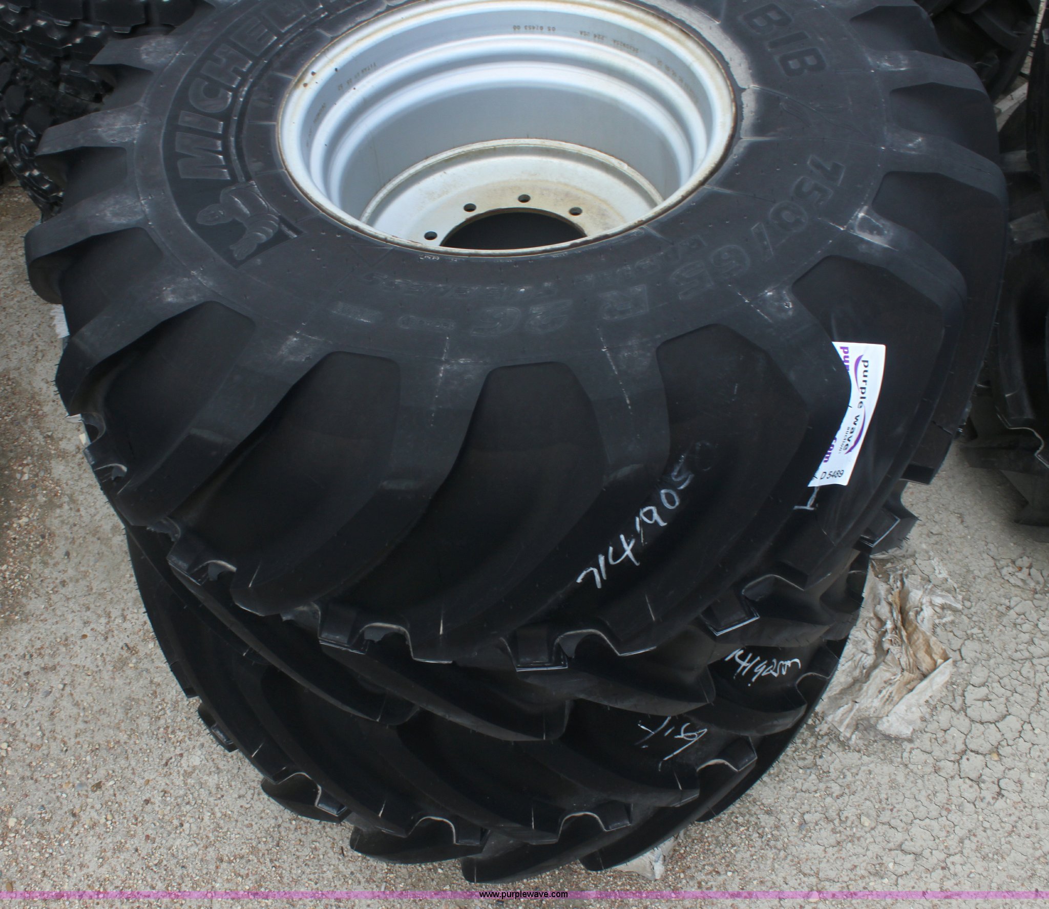 (2) Michelin Mega X 750/65R26 tires has sold in Hesston, Kansas for $4180. Item D5489 sold on August 29th, 2012.