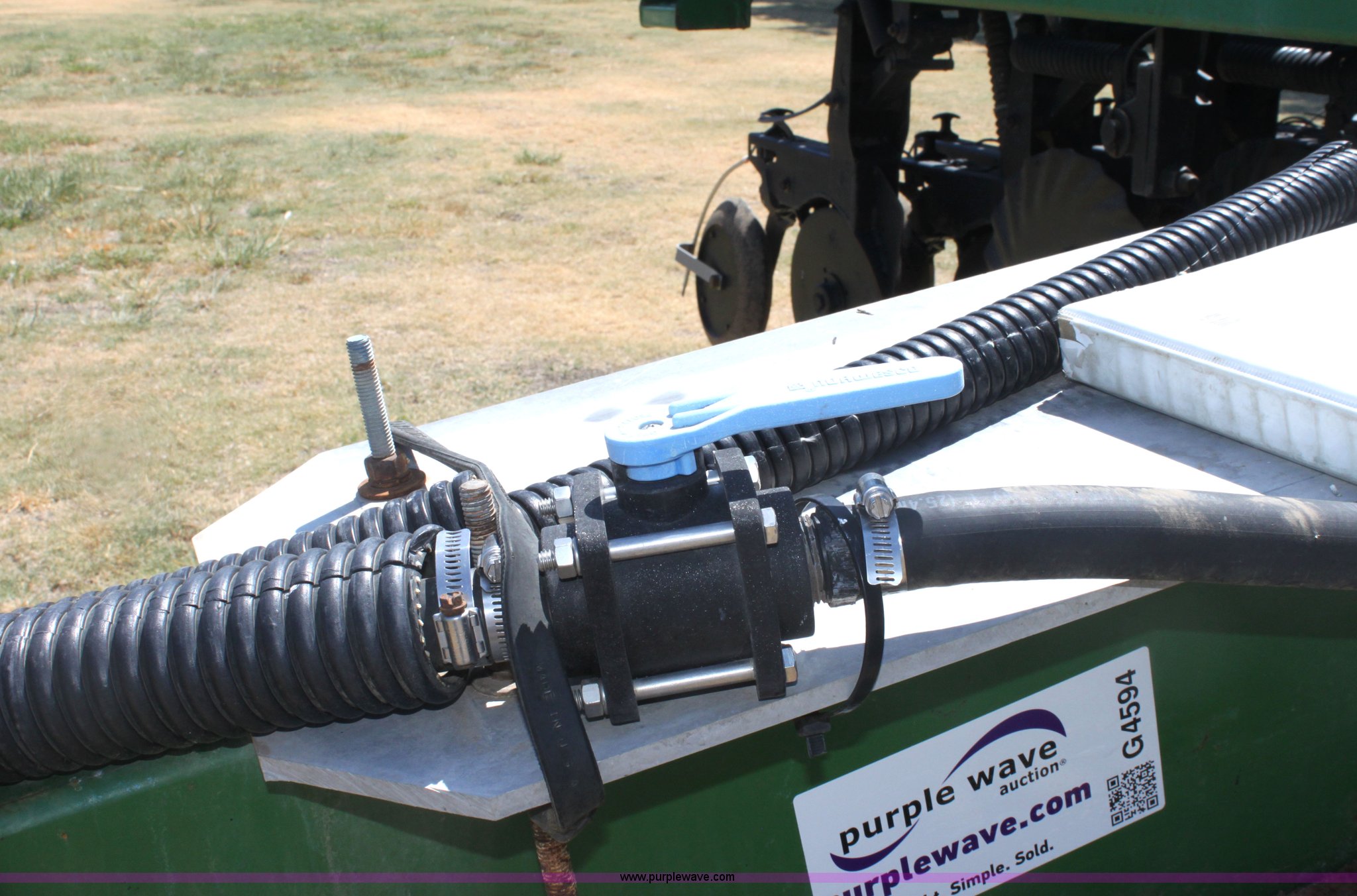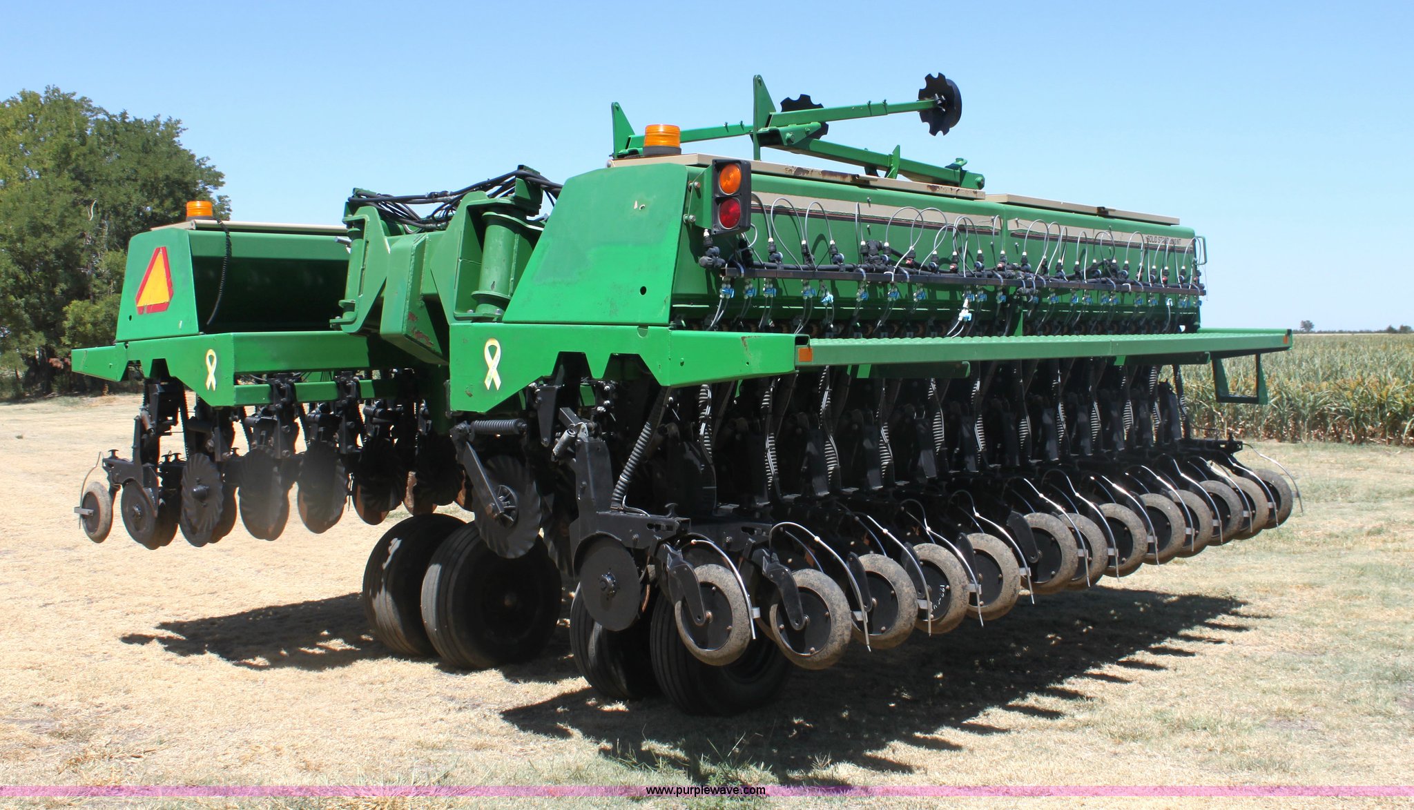 Purple Wave is selling a used Grain Drill or Seeder in Kansas. This item is a Great Plains 2N-3010 planter with the following: 30' width, 48 rows, 7.5" spacing, Bulk fill, Mechanical seed delivery, 600 aces on openers, Mechanical row meters, Ground driven row meters, 15" no-till coulters, 600 acres on coulter bearings, Press wheels, 13" double disks, Hydraulic folding wings, Heavy duty no-till markers, Furrow and rear liquid fertilizer application, No pump, Furrow low rate and rear high rate liquid fertilizer application with every other row shutoff valve, Adjustable pin hitch, Manual included, 11L-15 wing tires, 12.5L-15SL inside tires, 17,518 acres on meter, Serial D183696