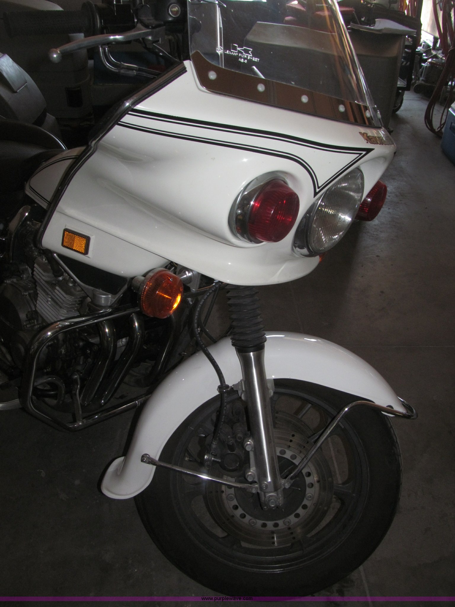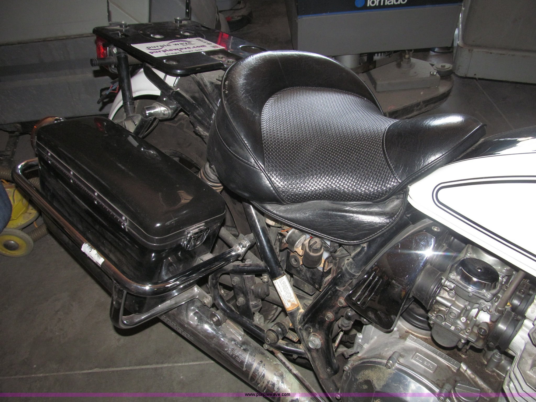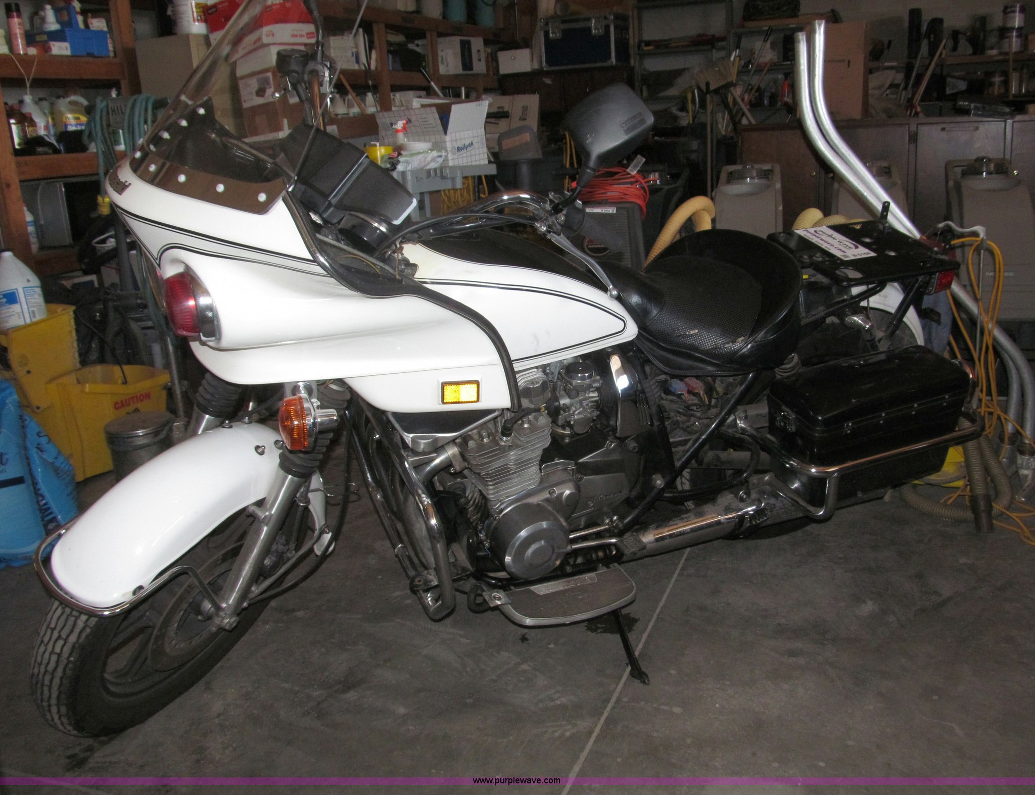 1996 Kawasaki 1000 motorcycle. 36,812 miles on odometer, 1,000 cc four cylinder DOHC gas engine, Five speed transmission, Fiberglass fairing with windshield and storage, Hi-way bars, Hard saddle bags with bracket, Operator footboards, Lockable fuel tank, Dual chrome exhaust, Chain drive, Disk brakes Front dual hydraulics, Rear single disk, Dunlop MN90-18 M/G 65H front tires, Dunlop K327MG rear tire, 596 lbs curb weight, 90.2" overall length, 6.3" ground clearance, Clutch needs work, Police options disconnected. JKAKZCP29TB513970. Shipping quotes available. X-Tra-Kleen Inc.. 238 S 19th St. Lincoln, NE 68510