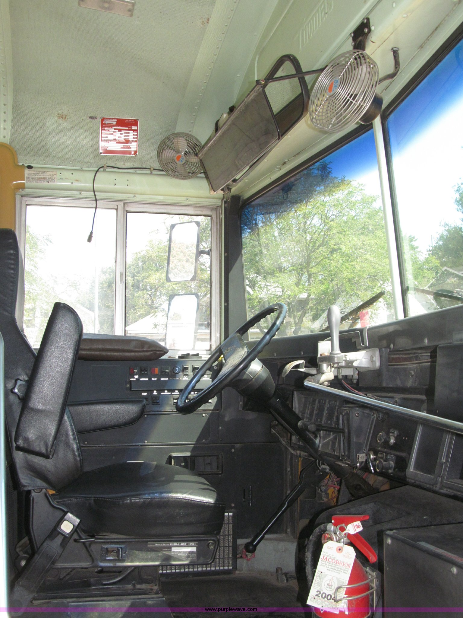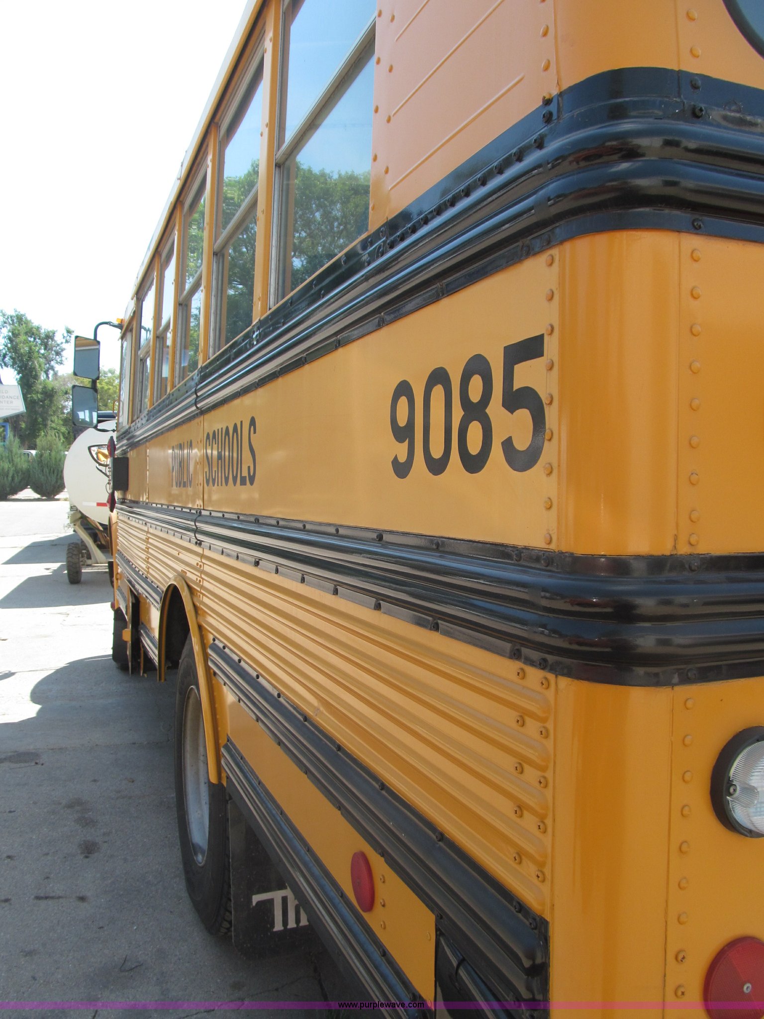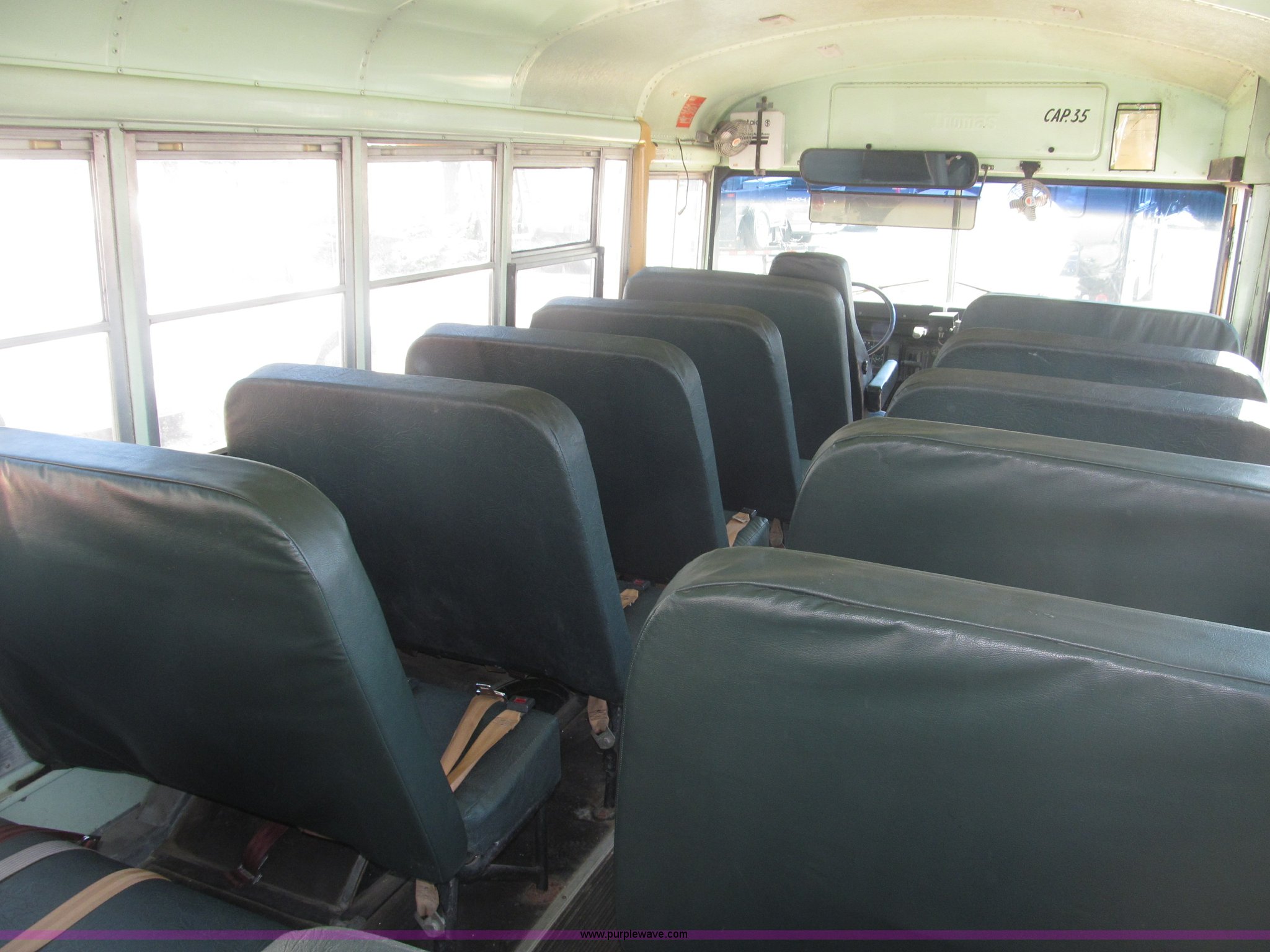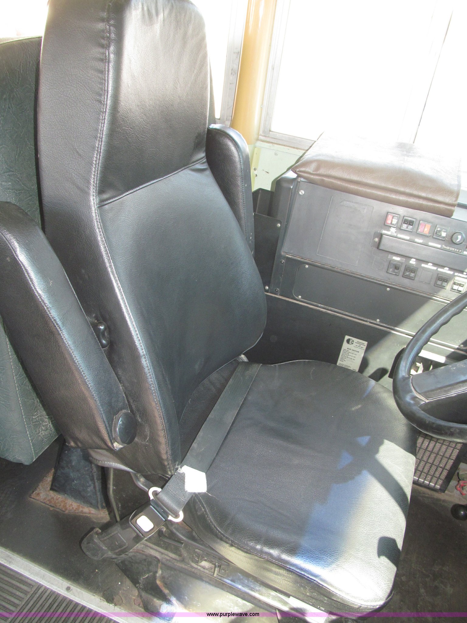Purple Wave is selling a used Bus in Nebraska. This item is a 1990 International 3800 Thomas Built school bus with the following: 143,692 miles on odometer, 8,686 hours on meter, 35 passenger, International six cylinder diesel engine, Automatic transmission, Rear emergency exit, First aid kits, Captain driver seat, Throttle lock, Kidde ABC Fire extinguisher, Seat belts, 10R22.5 tires, GVWR 25,500 lbs, FAWR 8,000 lbs, RAWR 17,500 lbs, Body ID 88705-57120-C-1800S, Interior/exterior cosmetic damage, EIN 9085