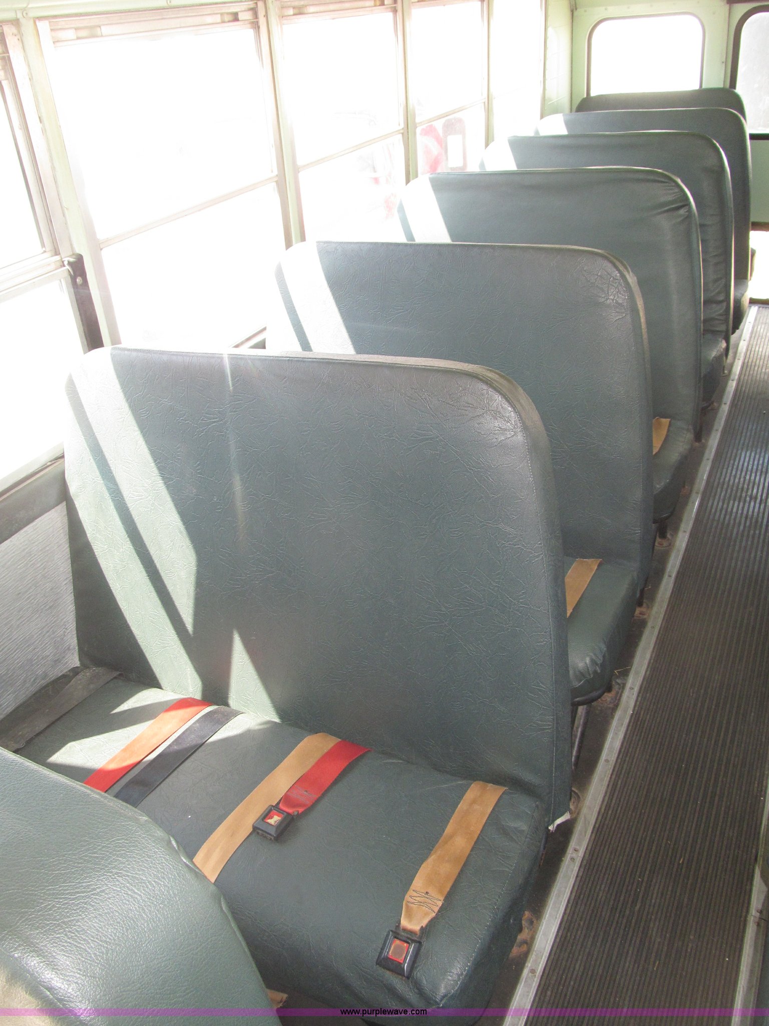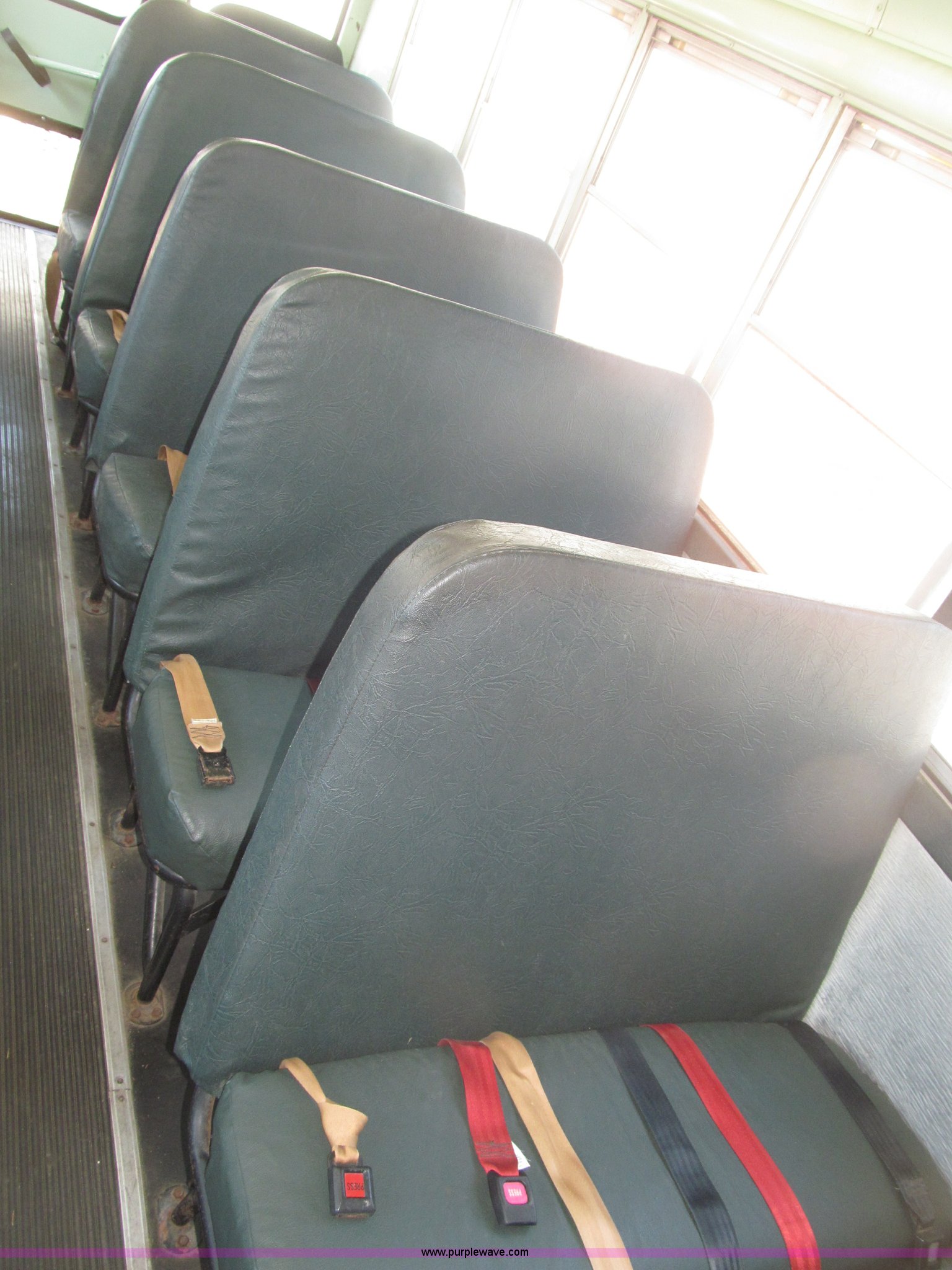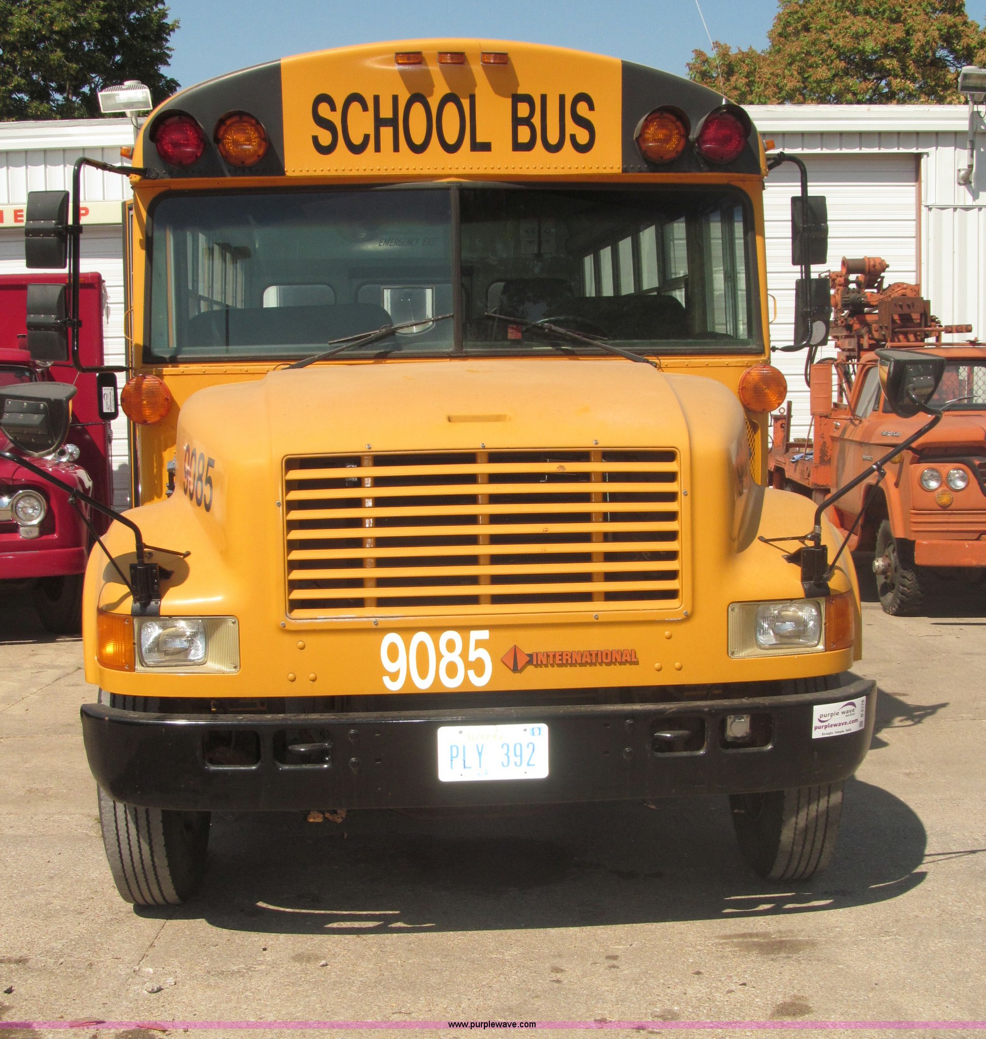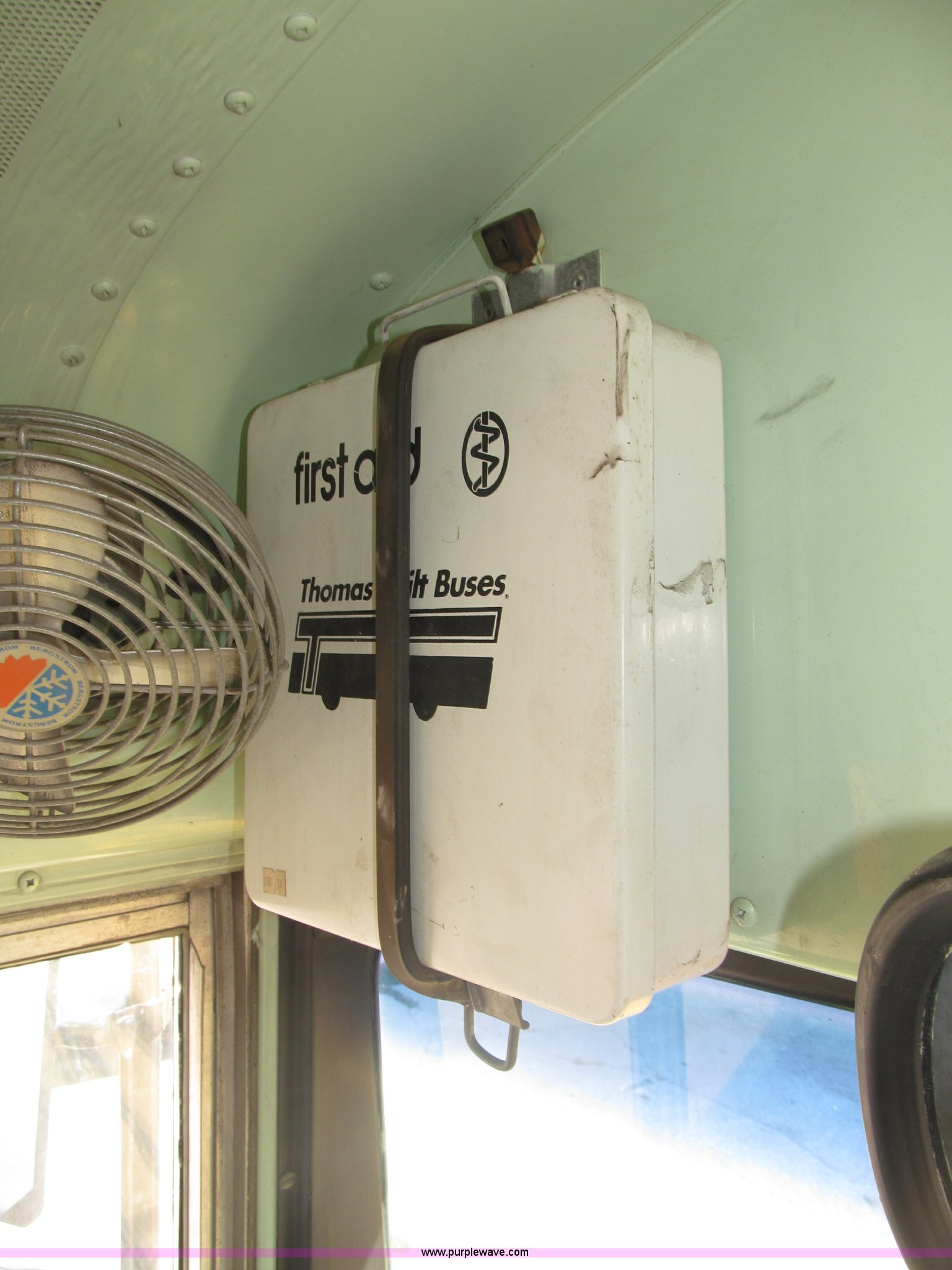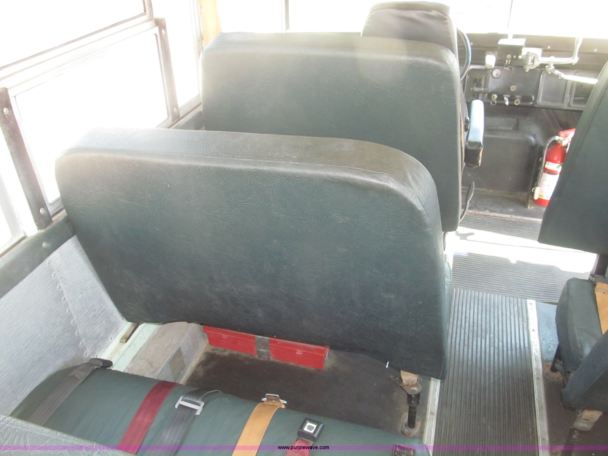 Purple Wave is selling a used Bus in Nebraska. This item is a 1990 International 3800 Thomas Built school bus with the following: 143,692 miles on odometer, 8,686 hours on meter, 35 passenger, International six cylinder diesel engine, Automatic transmission, Rear emergency exit, First aid kits, Captain driver seat, Throttle lock, Kidde ABC Fire extinguisher, Seat belts, 10R22.5 tires, GVWR 25,500 lbs, FAWR 8,000 lbs, RAWR 17,500 lbs, Body ID 88705-57120-C-1800S, Interior/exterior cosmetic damage, EIN 9085