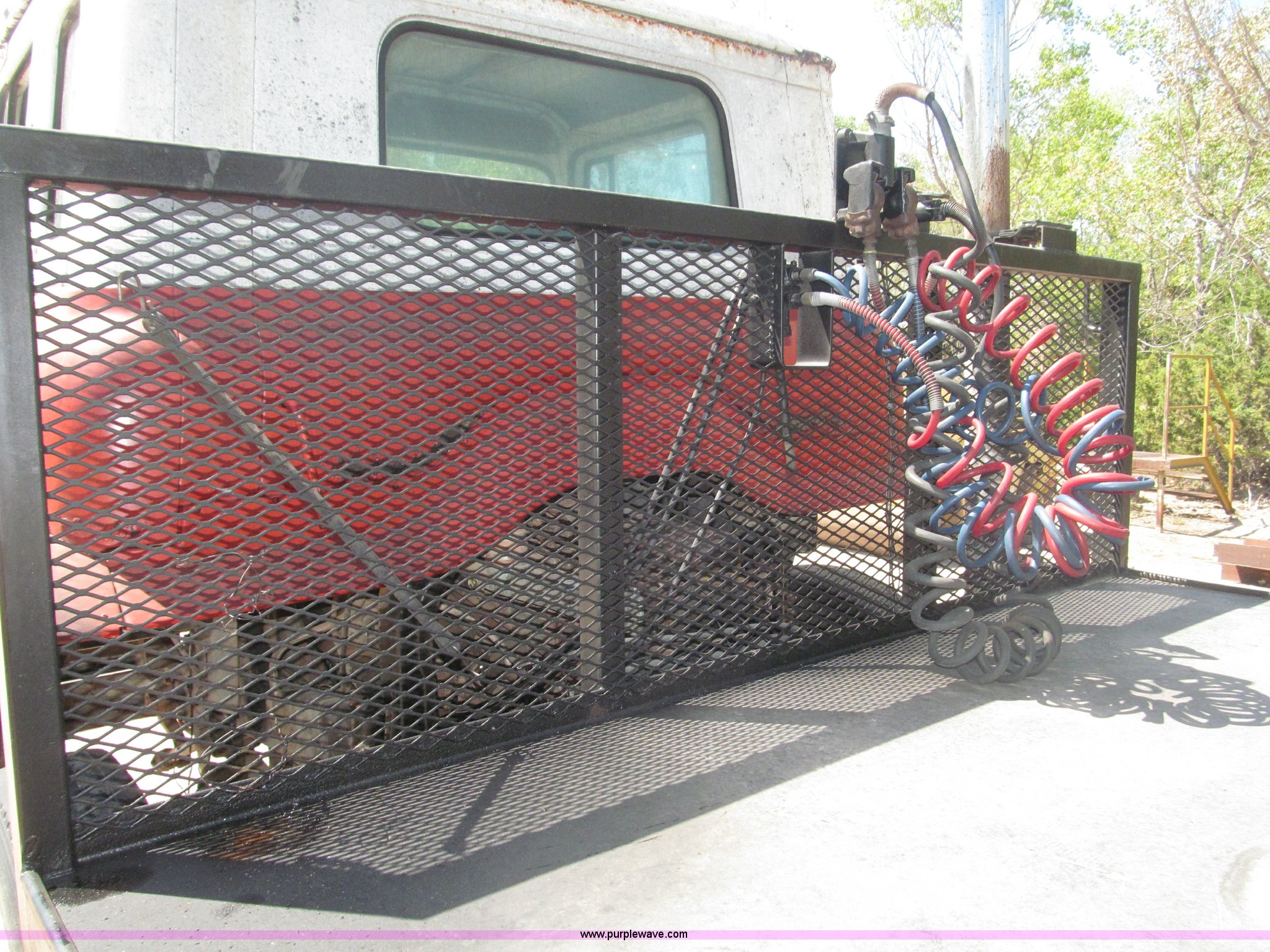 Purple Wave is selling a used Truck Chassis in Nebraska. This item is a 1978 International CargoStar flatbed truck with the following: 249,140 miles on odometer, Model CO1850B, International six cylinder turbo diesel engine, Fuller Road Ranger five speed manual transmission with Hi-Low, Model RT610, AM radio, Throttle lock, Motorola two-way radio, 128"L x 95.5"W flatbed, 30"H headache rack, Fifth wheel hitch, Gladhand wiring connectors, Air suspension, Electric brake load controller, Front tow hooks, (2) 50 gallon fuel tanks, Single rear exhaust stack, Air brakes, 2 5/16" adjustable rear hitch, 167" wheelbase, 22.5" tires, one rear dual is 24.5", 22,850 lbs. base operating weight, Windshield cracked, EIN 11