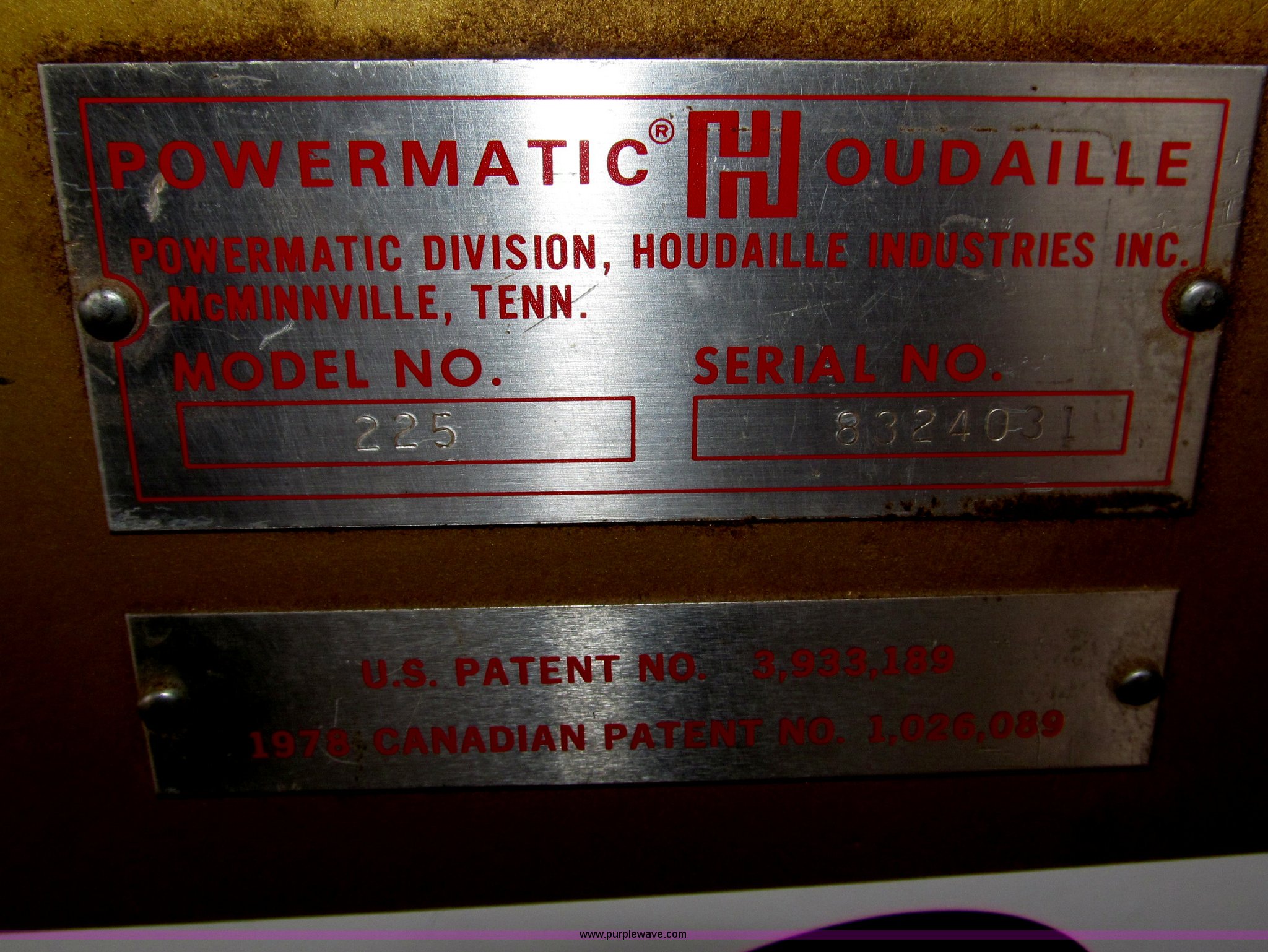 Take a look at this used Houdaille Powermatic 225 wood planer being sold on August 29th, 2012 in the SOLD! Wednesday August 29 Midwest Auction. Take a look at all of the item information below or take a look at similar auctions for Shop Tools.