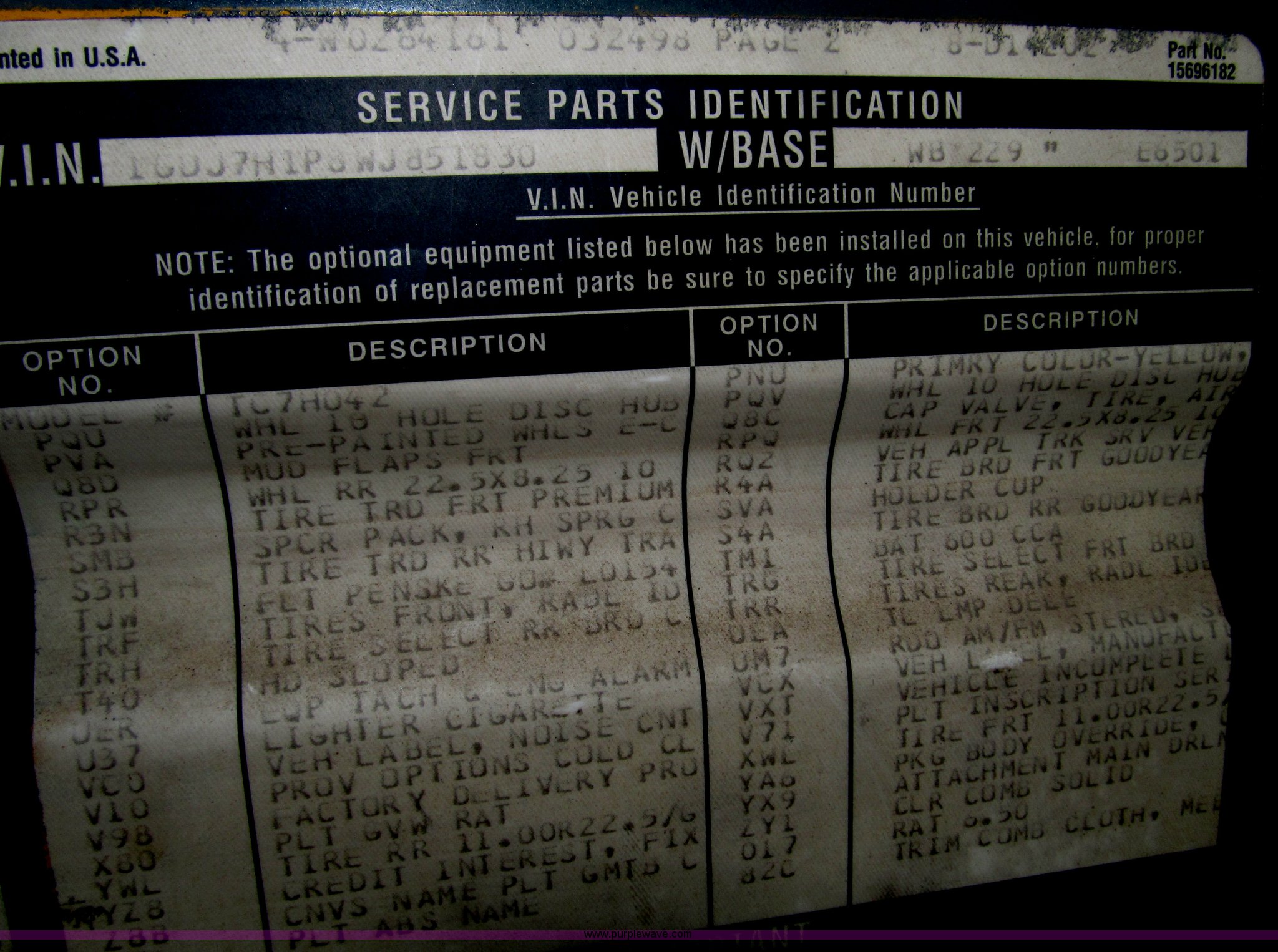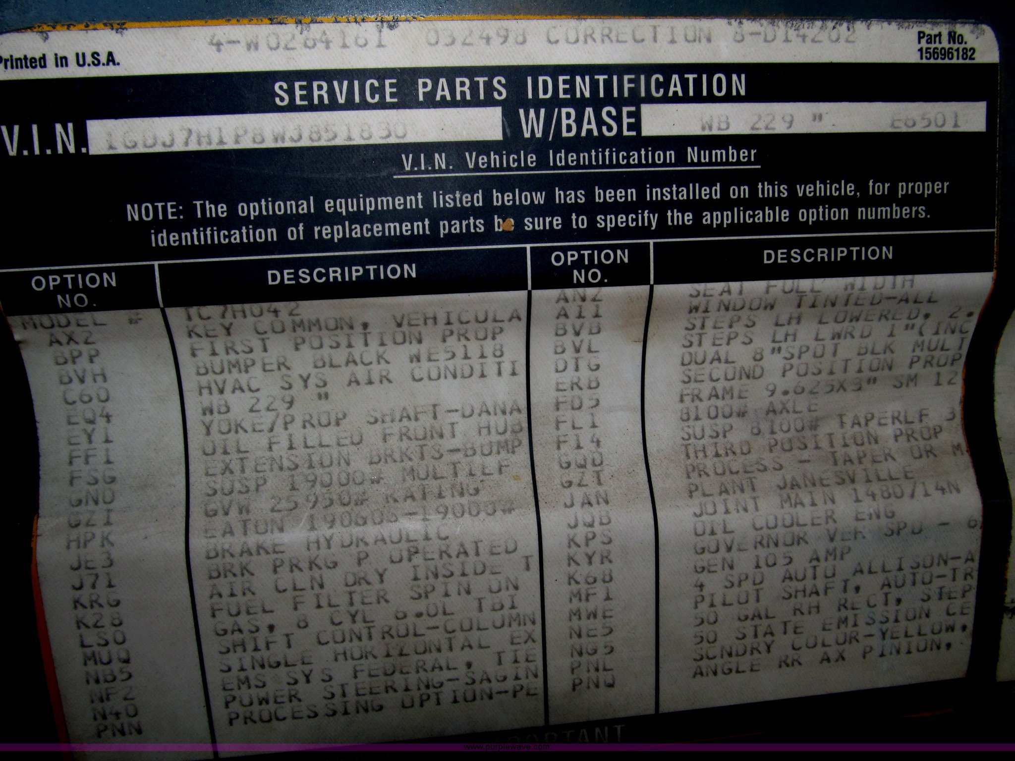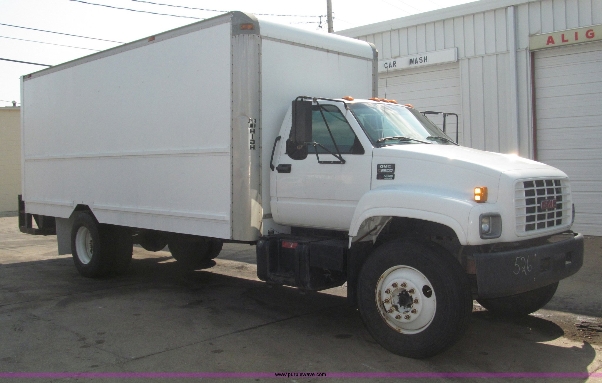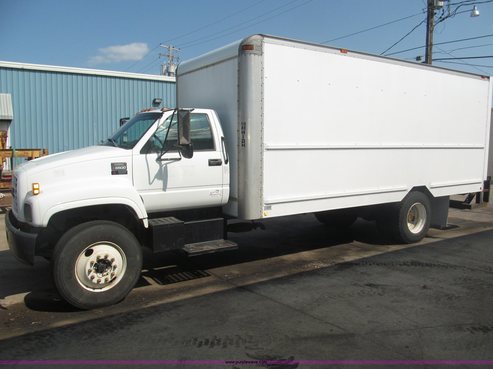 Purple Wave is selling a used Box Truck in Nebraska. This item is a 1998 GMC C6500 box truck with the following: 143,017 miles on odometer, Miles may vary, 6.0L V8 gas engine, Allison automatic transmission, AC and heat, AM/FM, Manual windows and locks, Cloth interior, (2) traction plate entry steps, Hydromax brake booster, 50 gallon fuel tank, 7'10.5" x 20'4" I.D. box, 3/4" x 3" side board lathe rails, Whiting overhead rear door, Wood flooring, Hole in floor, Maxon 2,500 lb rear hydraulic lift gate, Model 72-25LM5, Serial 02999030, Champion 850cc amp battery, 60 minute automatic shutoff cargo dome light, 11" rear step, 229" wheelbase, Goodyear 11R22.5 tires, GVWR 25,950 lbs, FAWR 8,100 lbs, RAWR 19,000 lbs, Annual inspection completed December 2011, Contents not included, Interior/exterior cosmetic damage, Rust