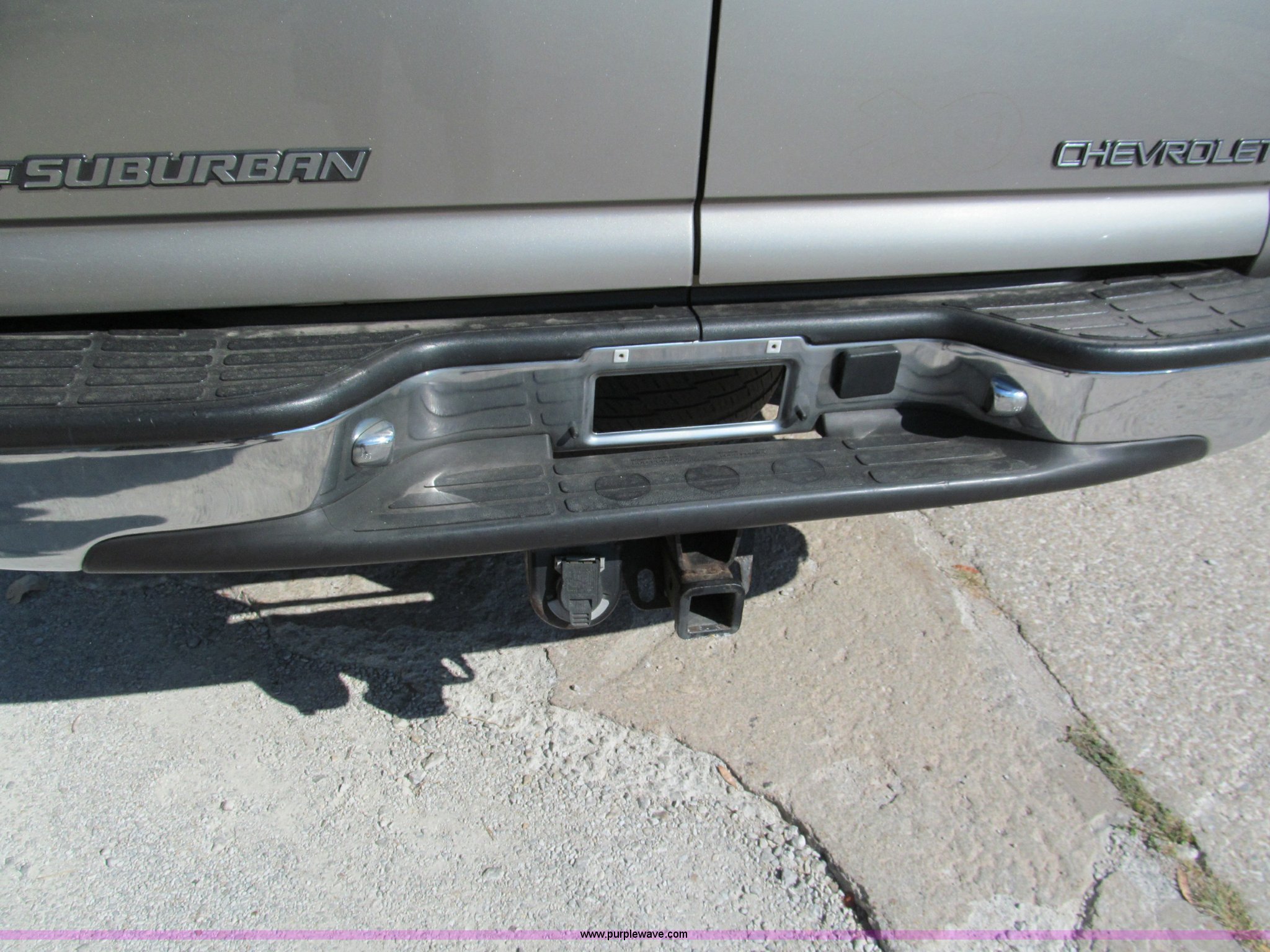 Purple Wave is selling a used Passenger Vehicle in Missouri. This item is a 2001 Chevrolet Suburban LS SUV with the following: 158,444 actual miles, 5.3L V8 SFI gas engine, Automatic transmission, Four wheel drive, Tow package, AC and heat, Rear air, Tilt, Cruise, Power windows, locks, mirrors, and seats, Tinted windows, On-star, Third row seating, Cloth interior, Luggage rack, Running boards, Receiver hitch, Trailer wiring, Aluminum wheels, 265/70R16 tires, Service engine soon light on, Left rear window inoperable, Body rust, Radio missing