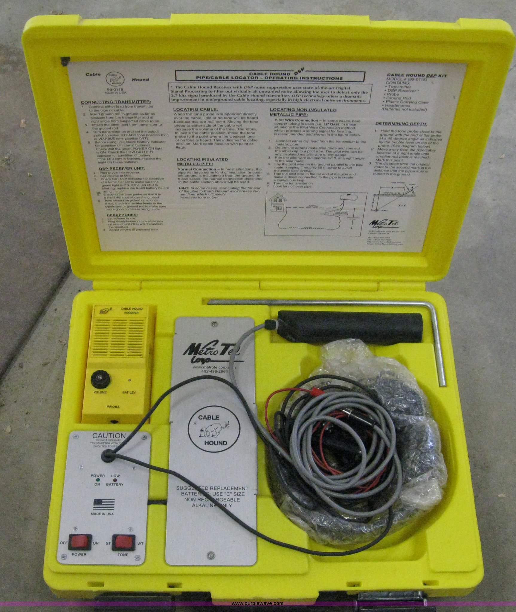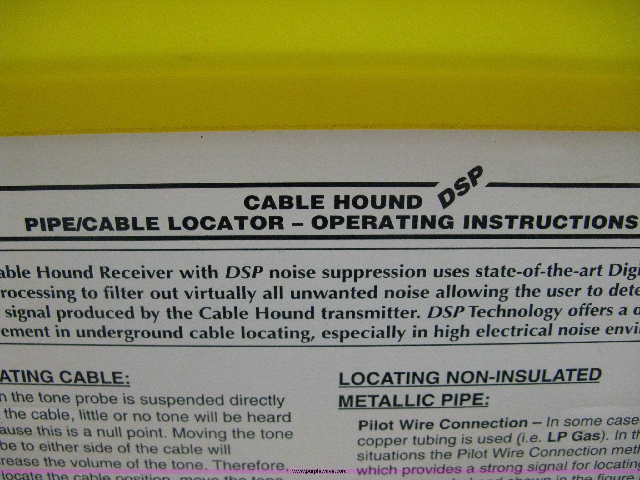 Purple Wave is selling a used Tools in Kansas. This item is a Cable Hound DSP cable and pipe locator with the following: Model 99-0118, Digital processing
