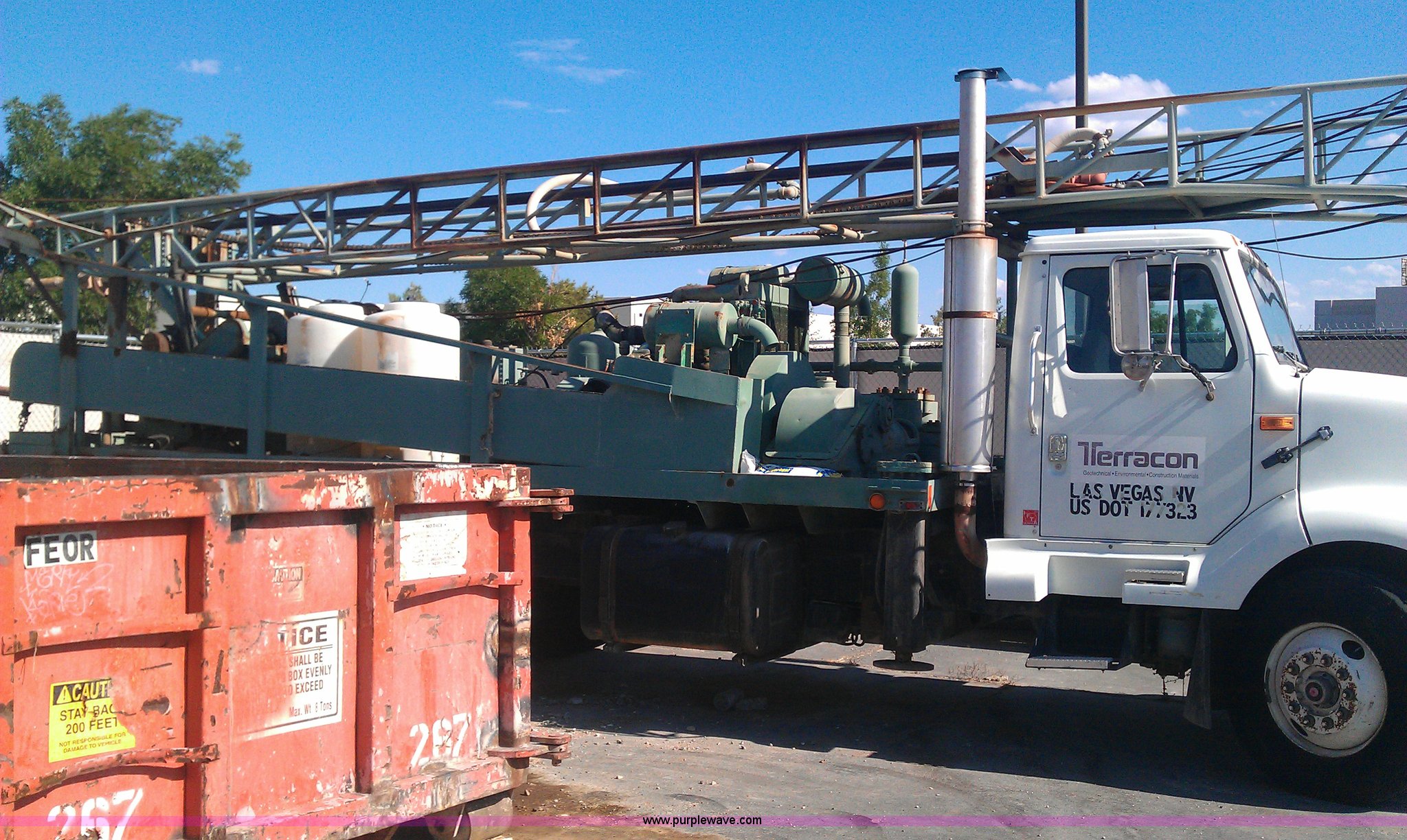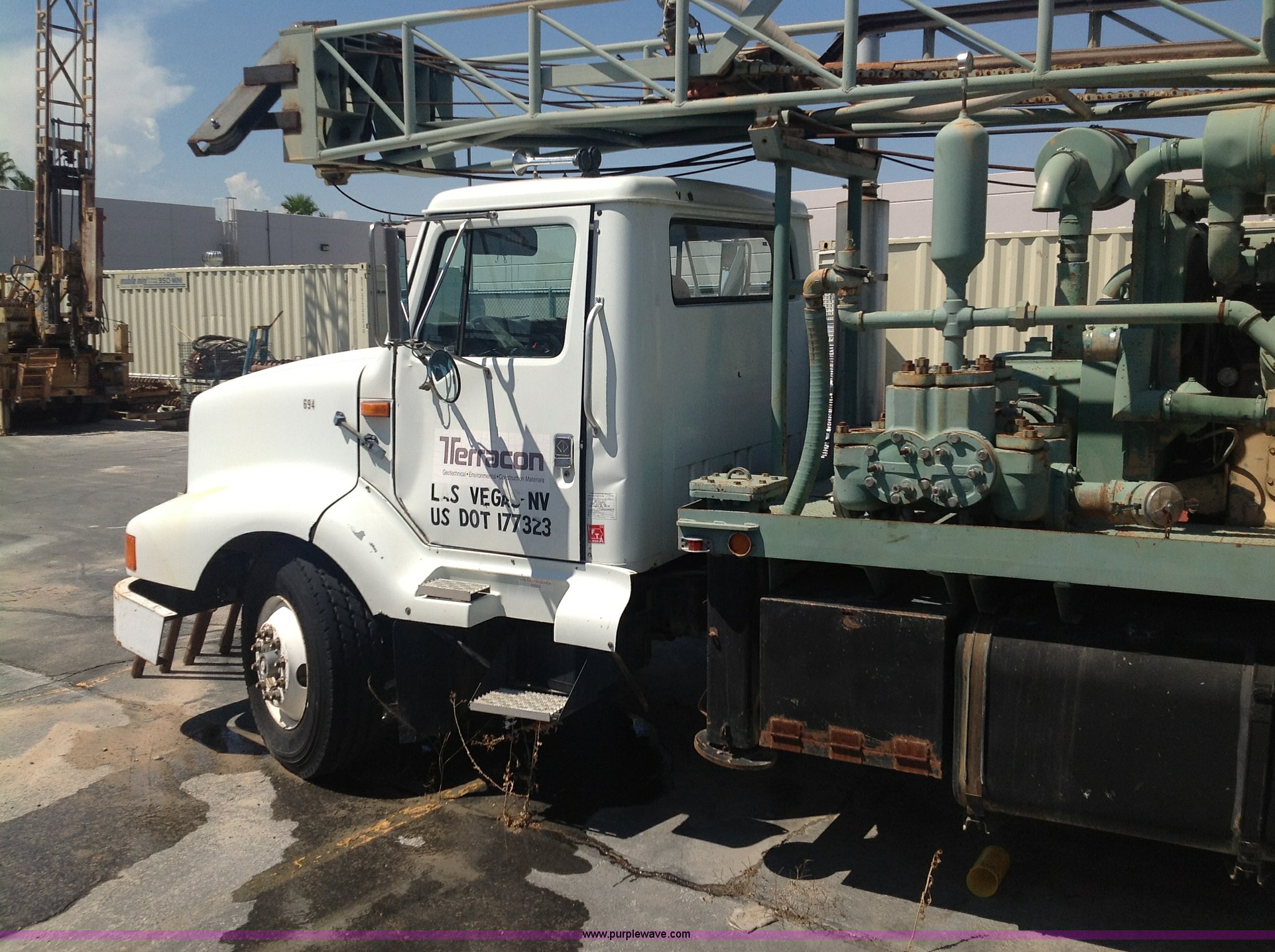 1991 International Navistar 8300 drill rig truck. 320,831 miles on odometer, Cummins L10 10.0L L6 diesel engine 270 HP, 1968 Gardner Denver 1000 drill rig, 5x6 Gardner Denver mud pump, Gardner Denver 7.5" retractable table 5" insert included, 23' Kelly 2 3/8" IF thread, Leroi SDS 256 dual stage compressor, Two cylinder Bean pump water injection, Hydraulic pull down, (4) leveling jacks, Breakout wrenches , Mechanical clutches , Tandem axle. 1HSHKA5R4MH383742. Shipping quotes available. Terracon Consultants, Inc.. 750 Pilot Rd, Suite F. Las Vegas, NV 89119